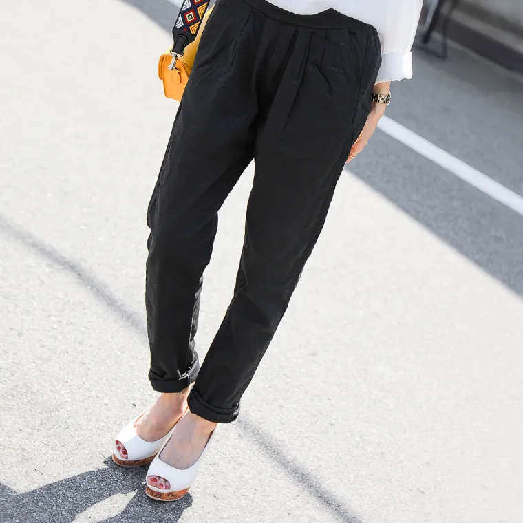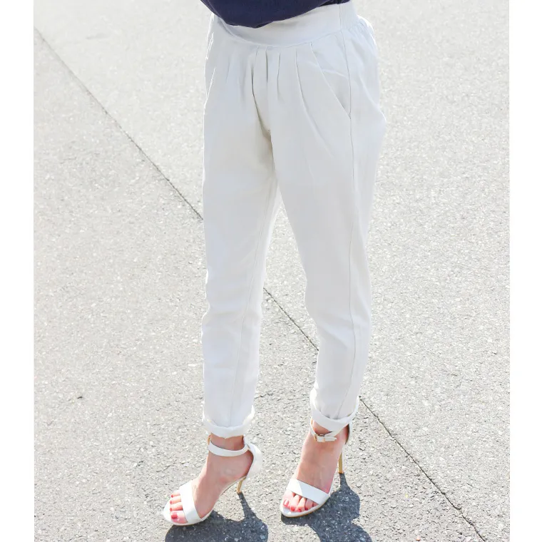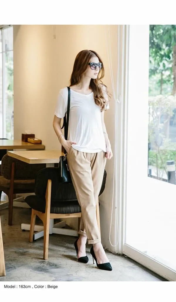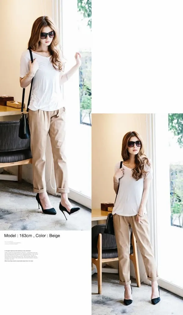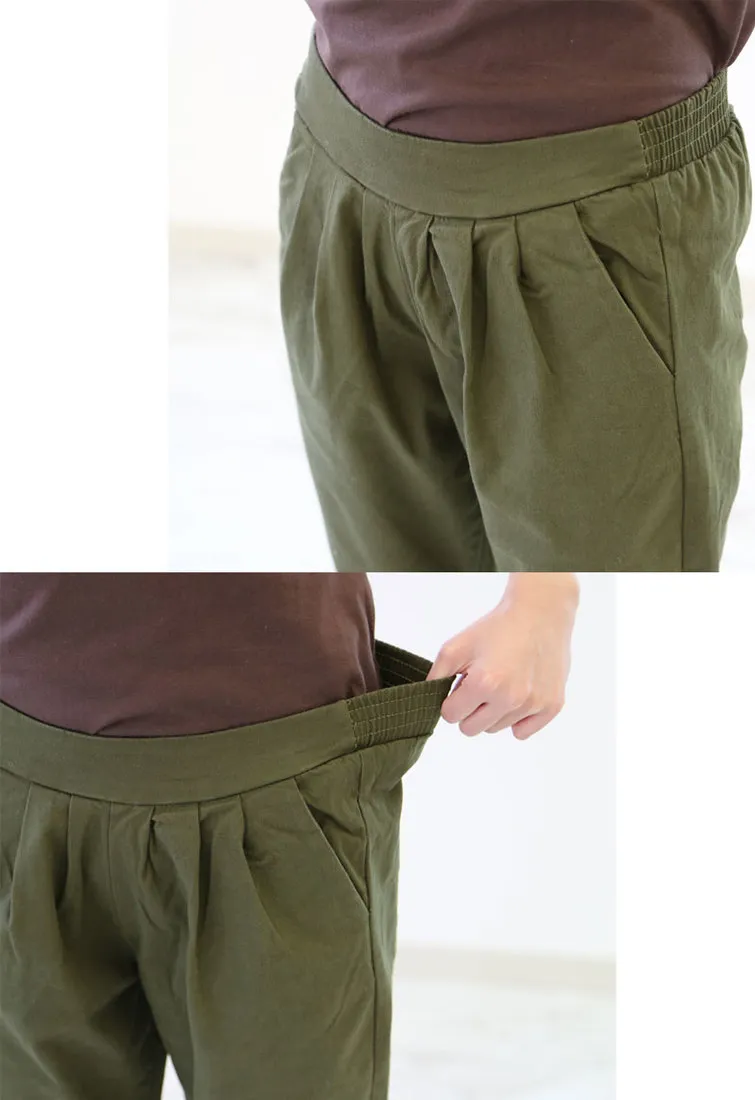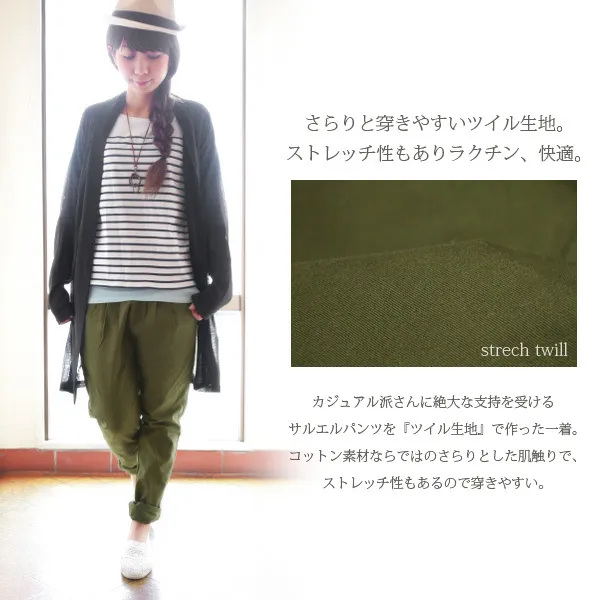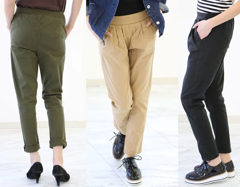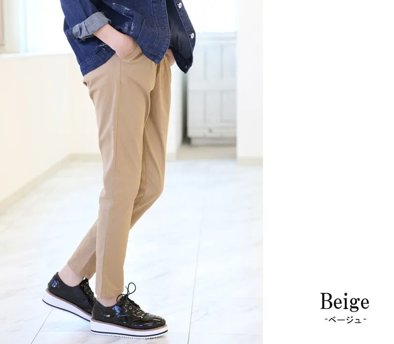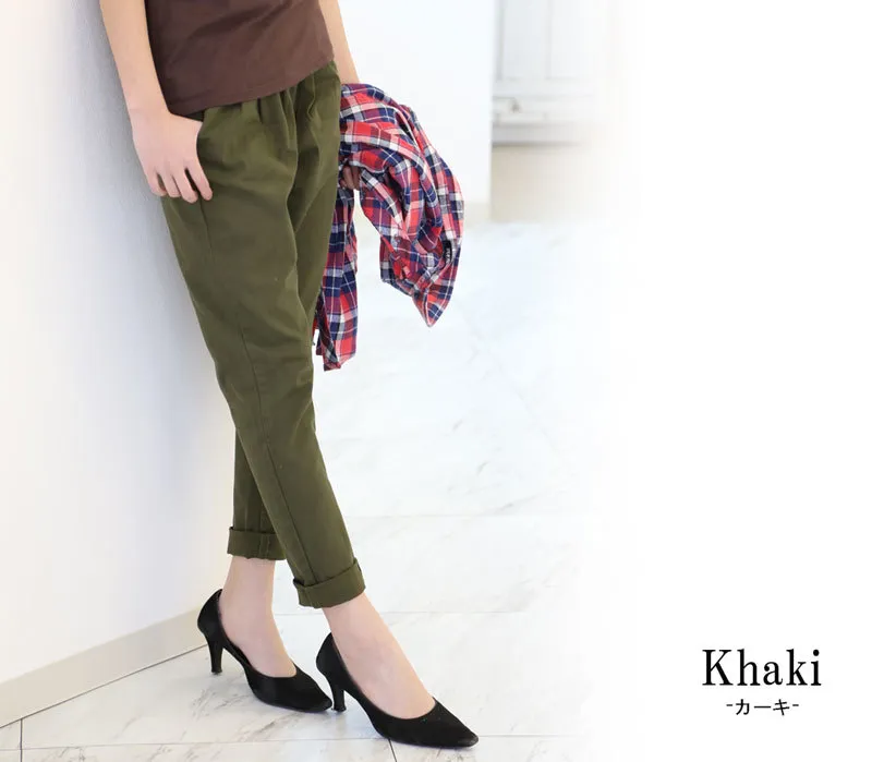 <再入荷>彈力超好穿~腰部打折休閒卡其褲
