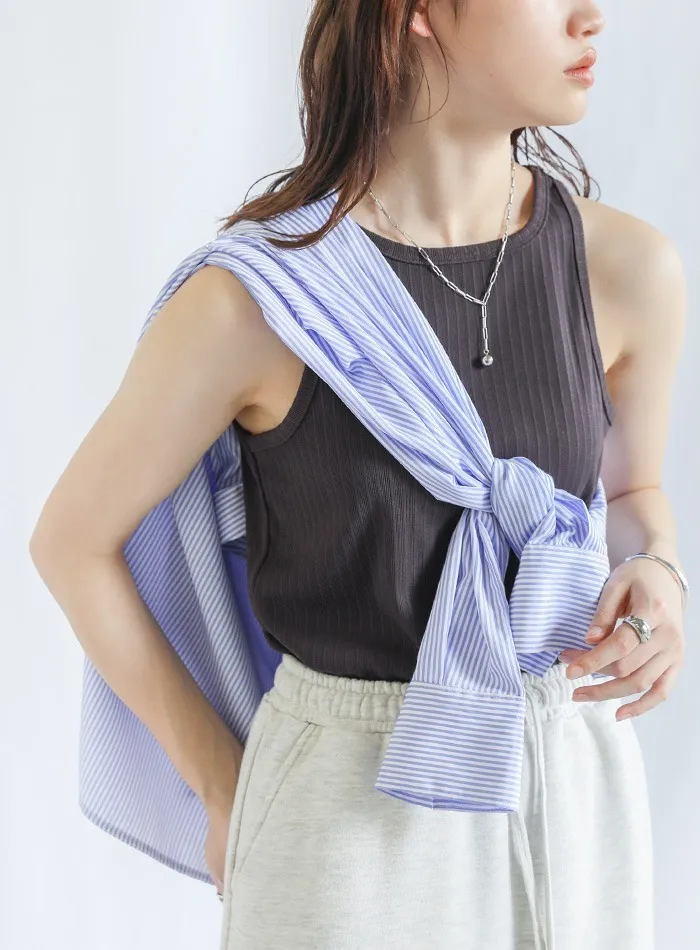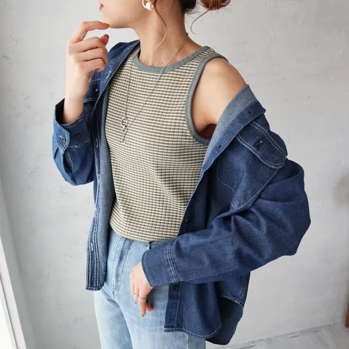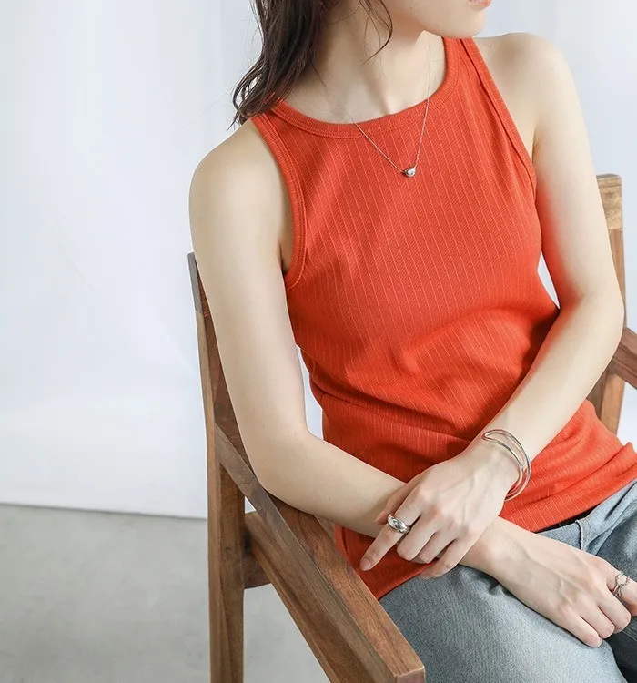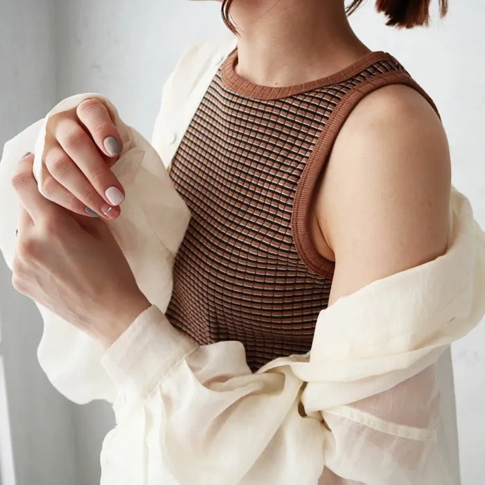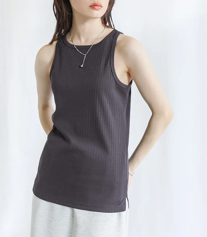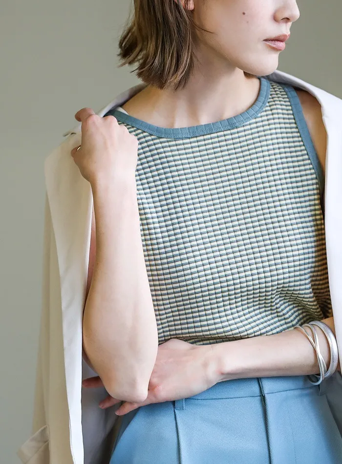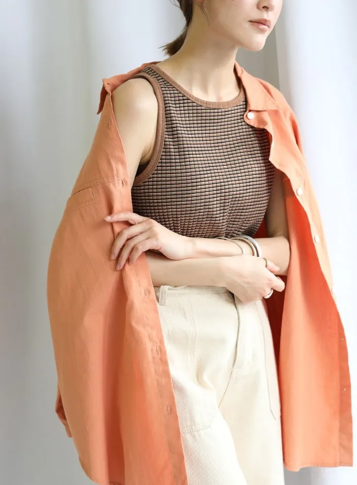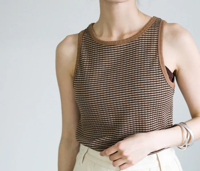 休閒運動感削肩超舒服彈性穿搭必備素色/格紋紋路背心