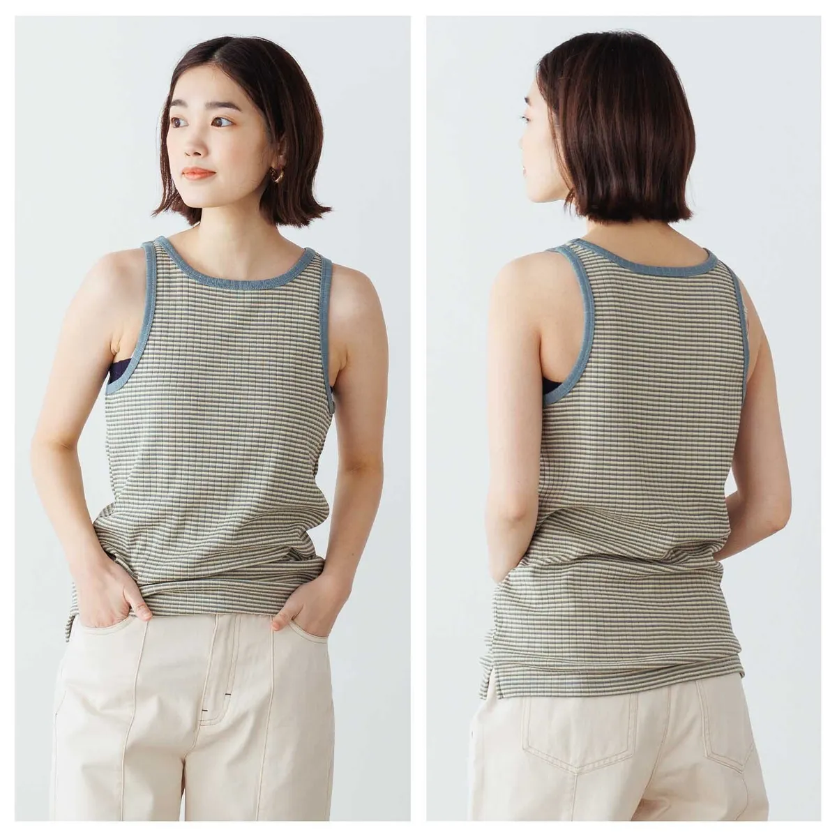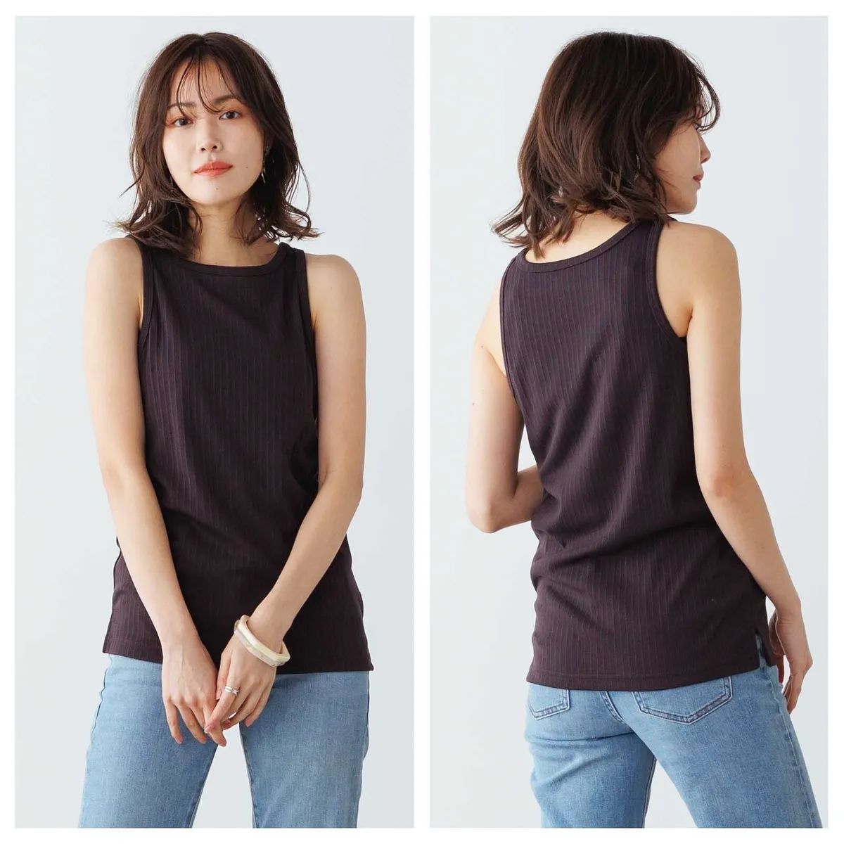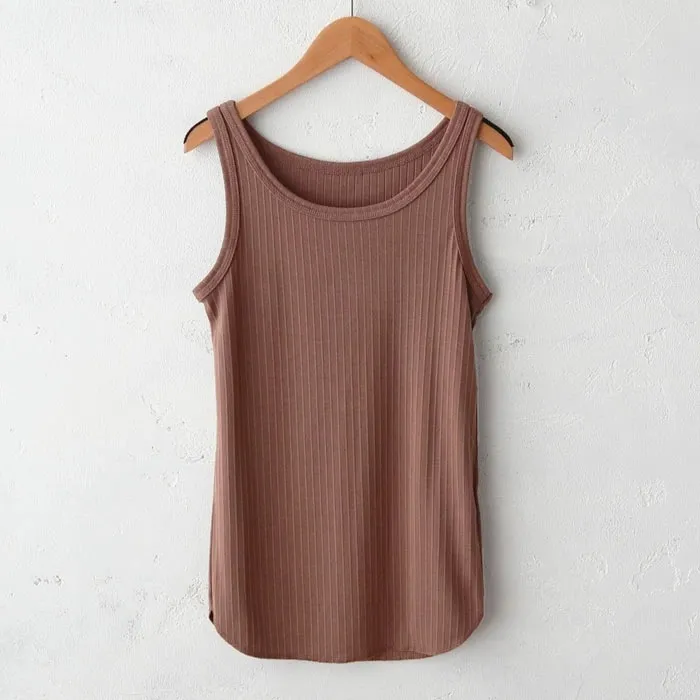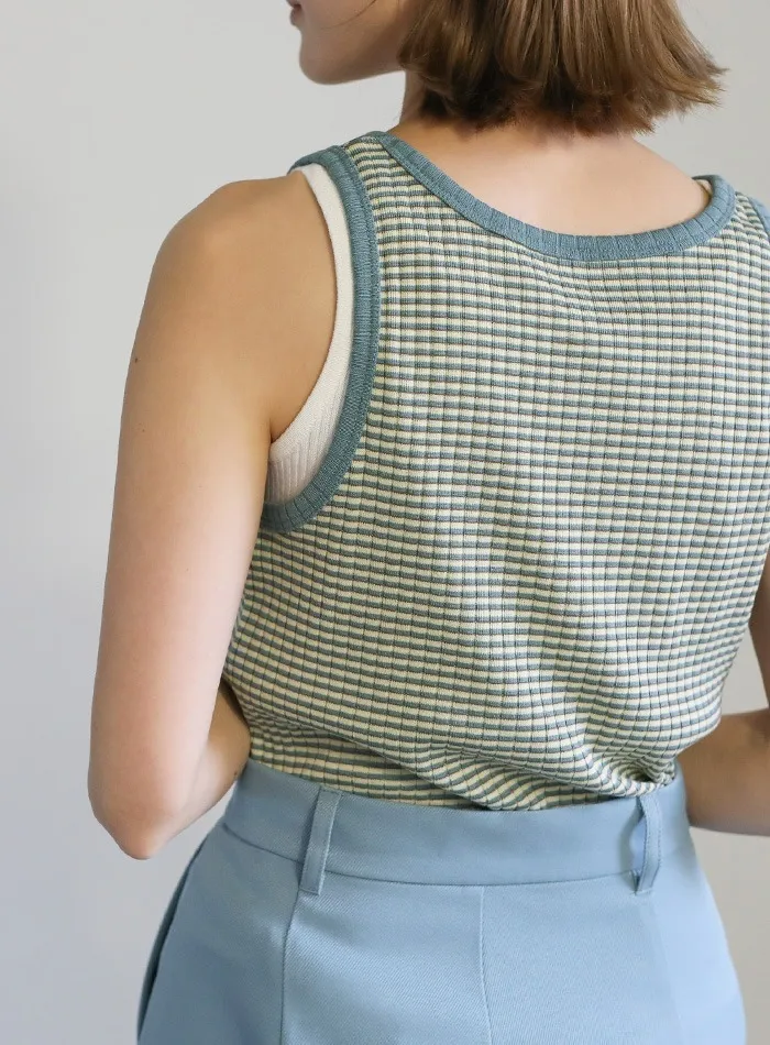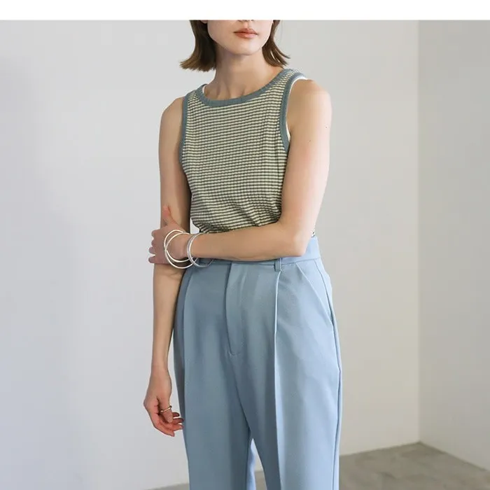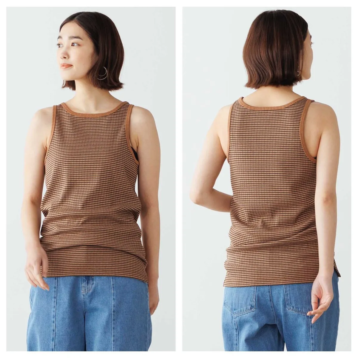 休閒運動感削肩超舒服彈性穿搭必備素色/格紋紋路背心