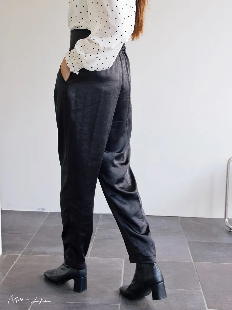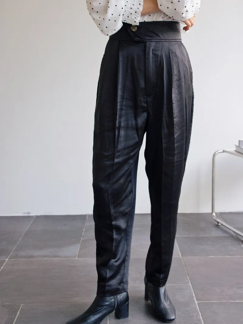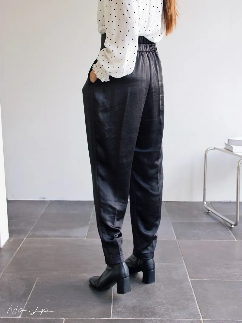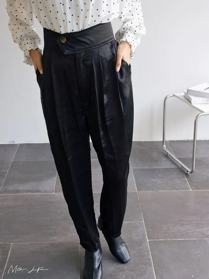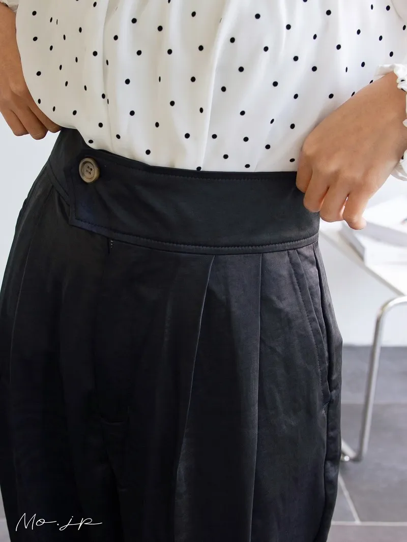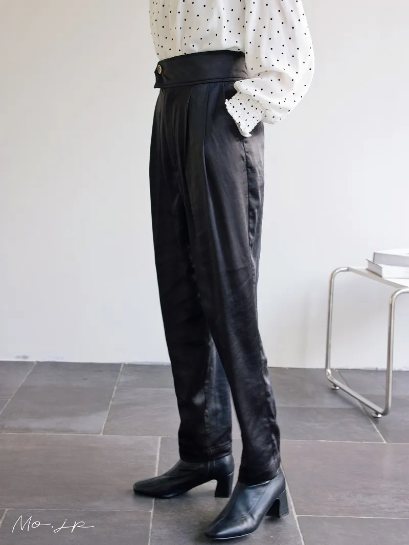 SALE~小華麗光澤感腰封造型錐形工作褲