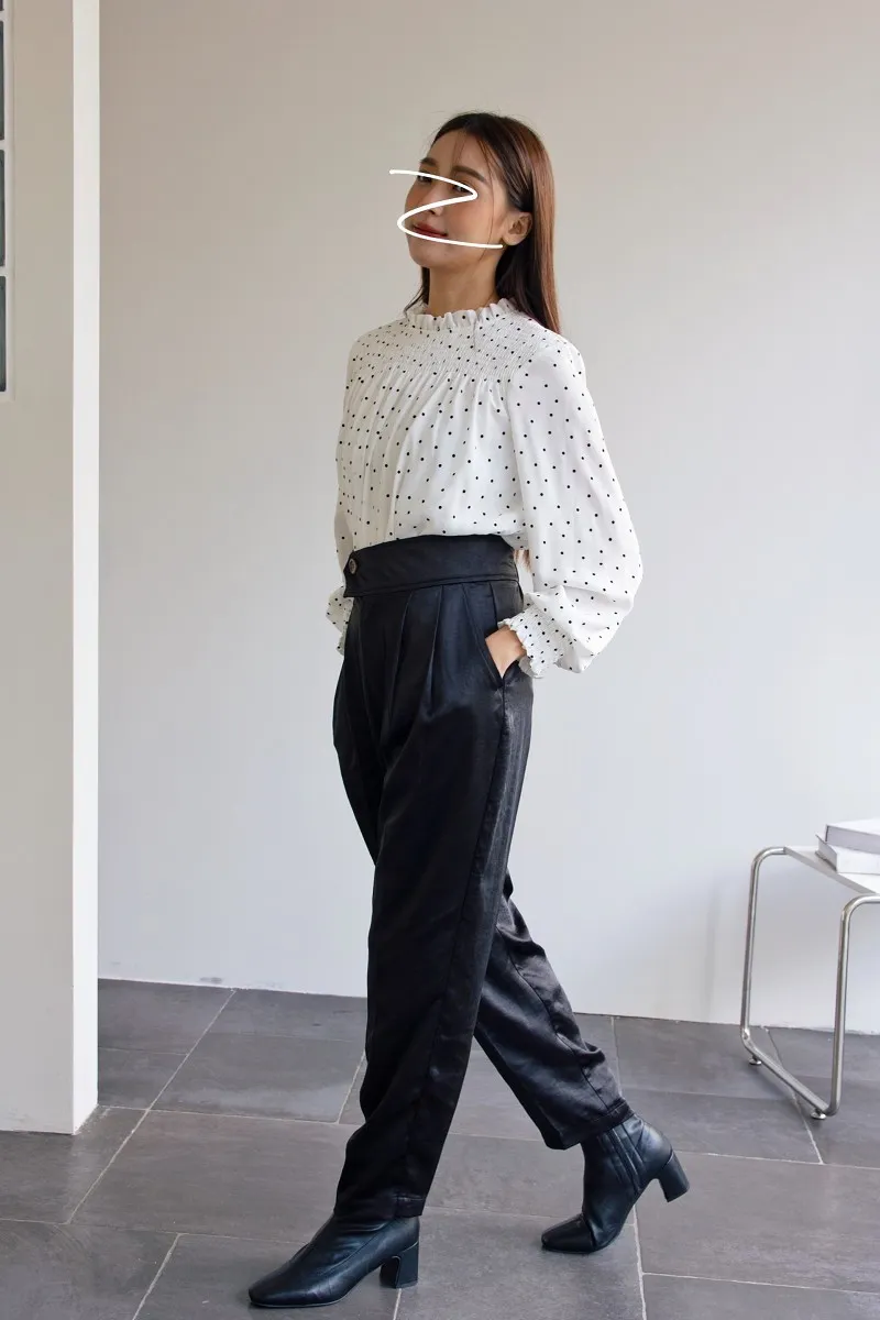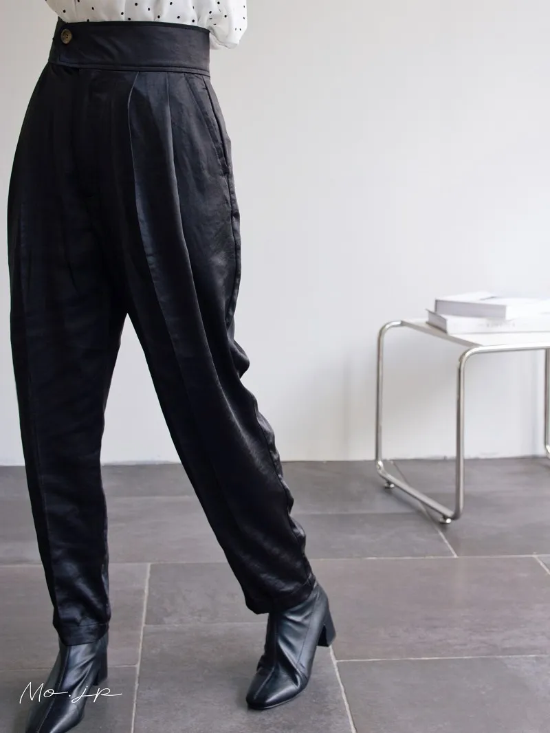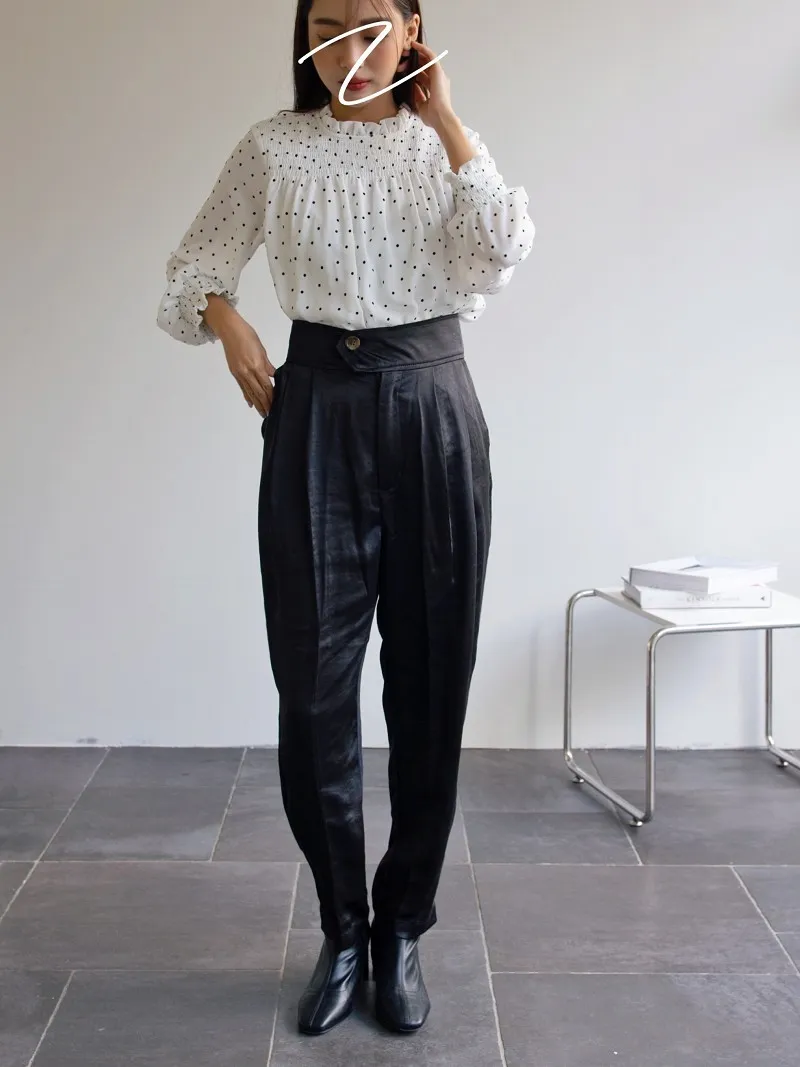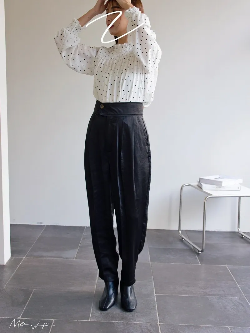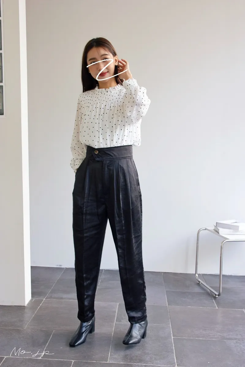 SALE~小華麗光澤感腰封造型錐形工作褲