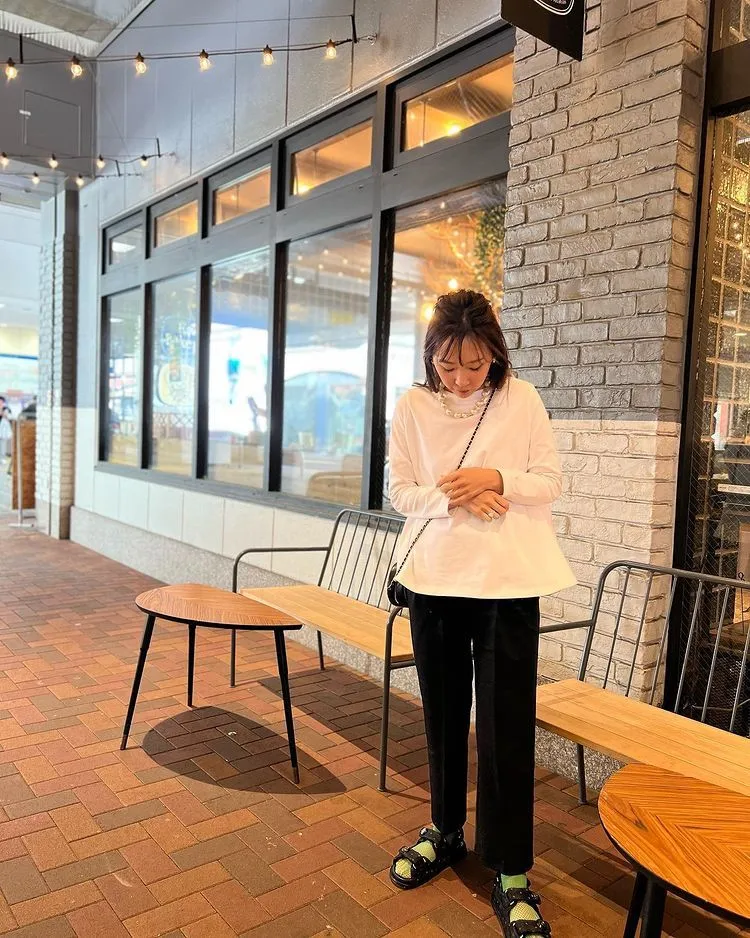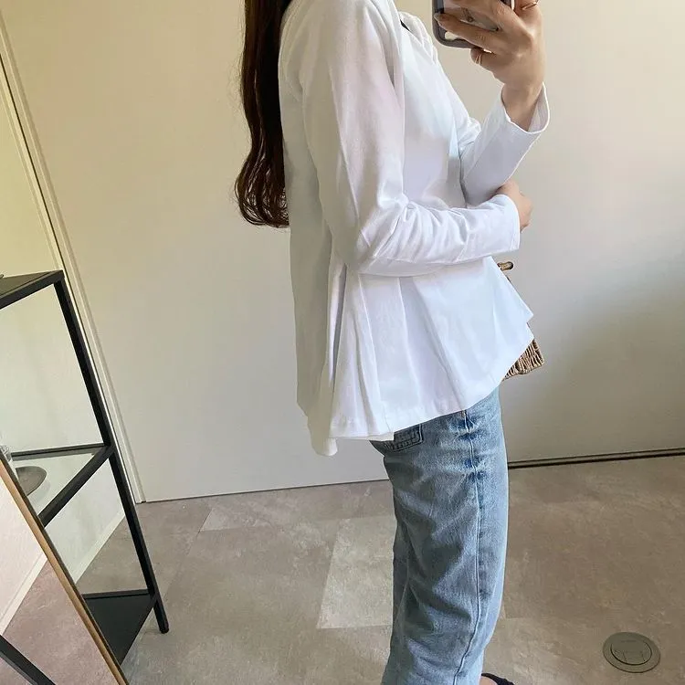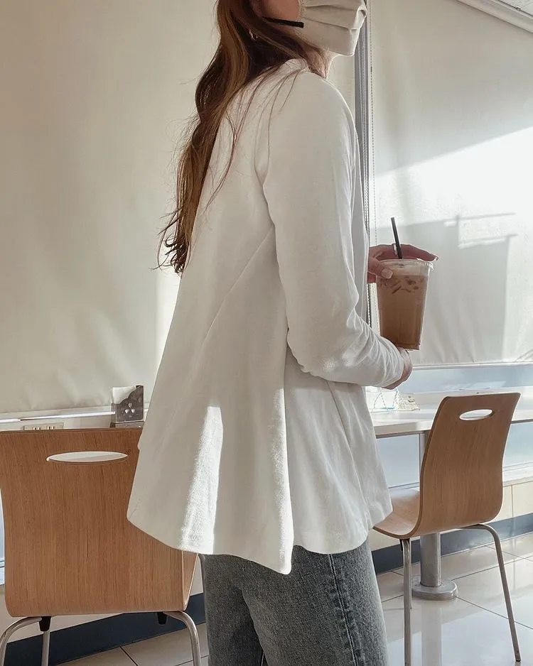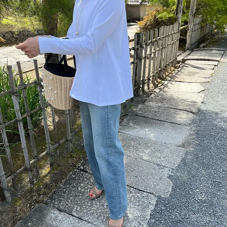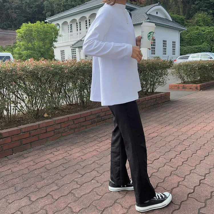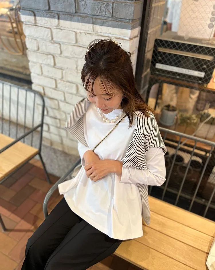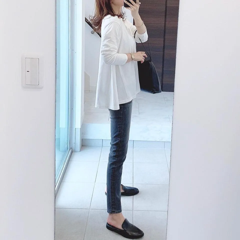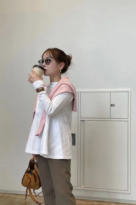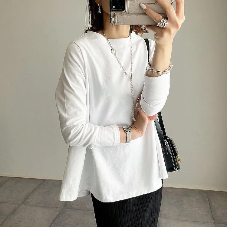 嘟嘟好版型小幫推薦款夏天賣過短袖款喔~爆炸好評沒想到~專櫃發售秋冬款了~太棒了!!一件很簡單又不簡單的白TEE!真的很推薦這款喔很不簡單的一件白TEE喔版型立體剪裁~穿起來弧度很美非常好看可以單穿就有特色~~很多日妞披毛衣~好看!!整體的下襬弧度很美面料很挺!可以單穿
