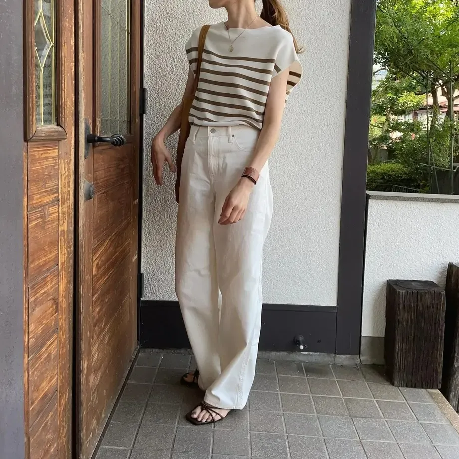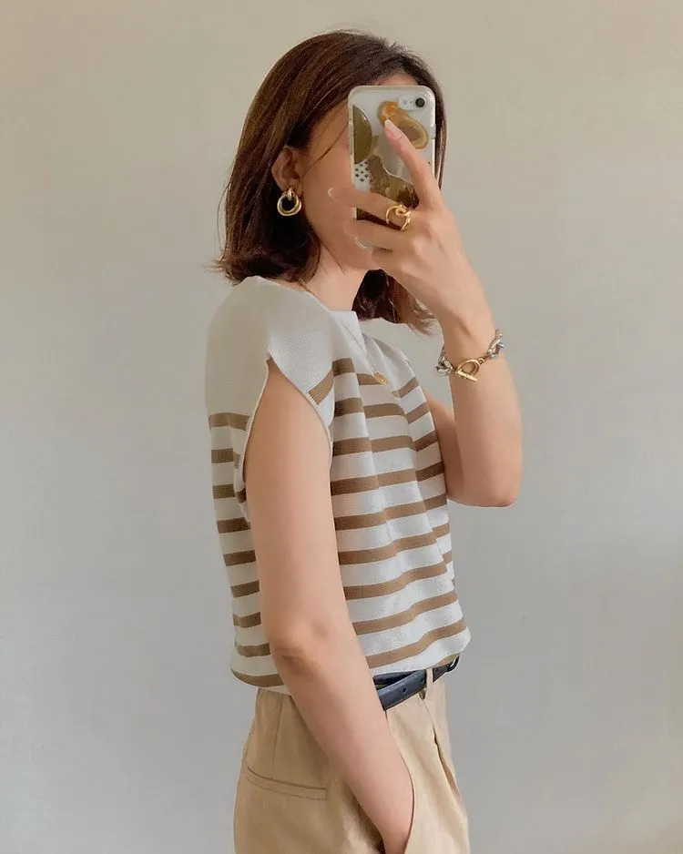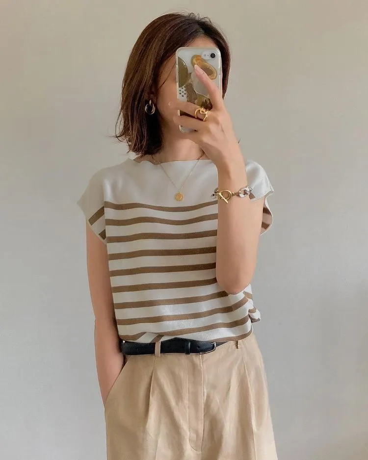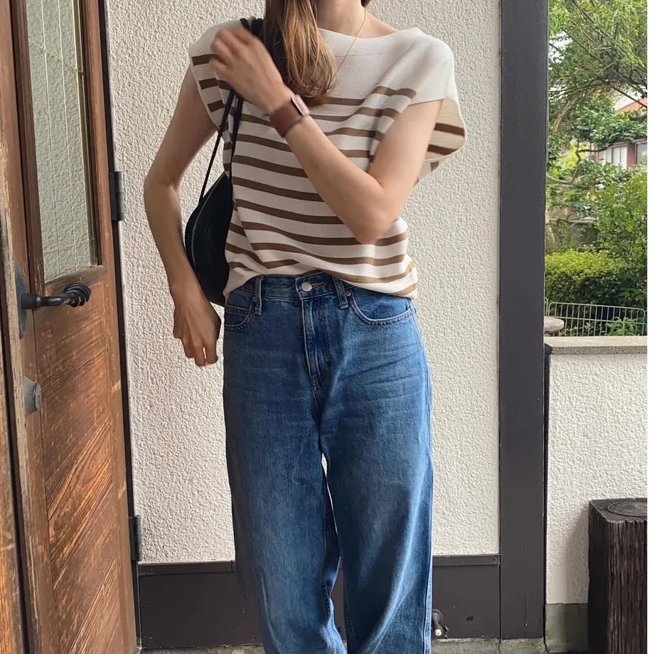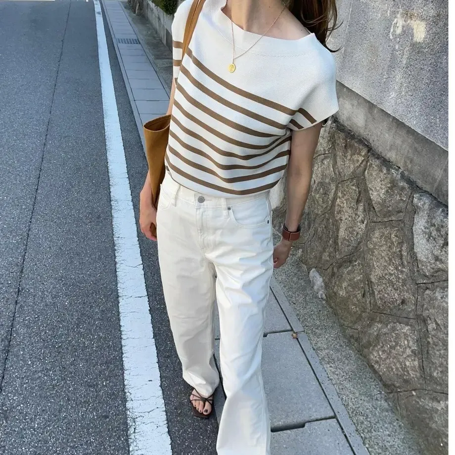 2025新尺寸!!這款真的很推薦包色~春夏真的好搭小幫強力推薦款喔夏天最好搭的針織衫來囉版型超級好看喔簡單的一字領~面料可以單穿涼涼又舒服2款~素面/條文顏色都非常非常好搭版型嘟嘟好~不會過寬~條文跟素面一併推薦喔有分M/L/XL這款小幫圖中穿素面摩卡L喔~長度比較OK