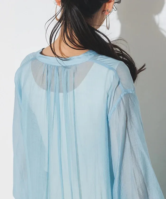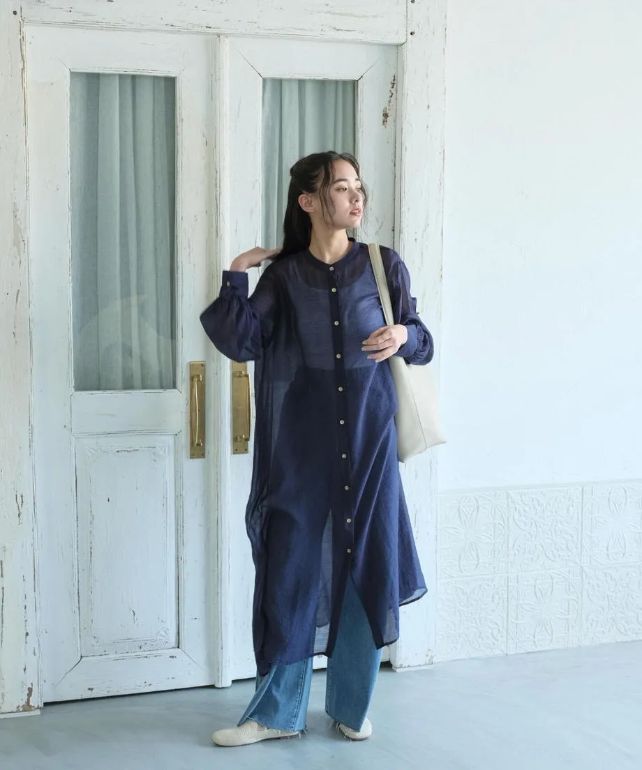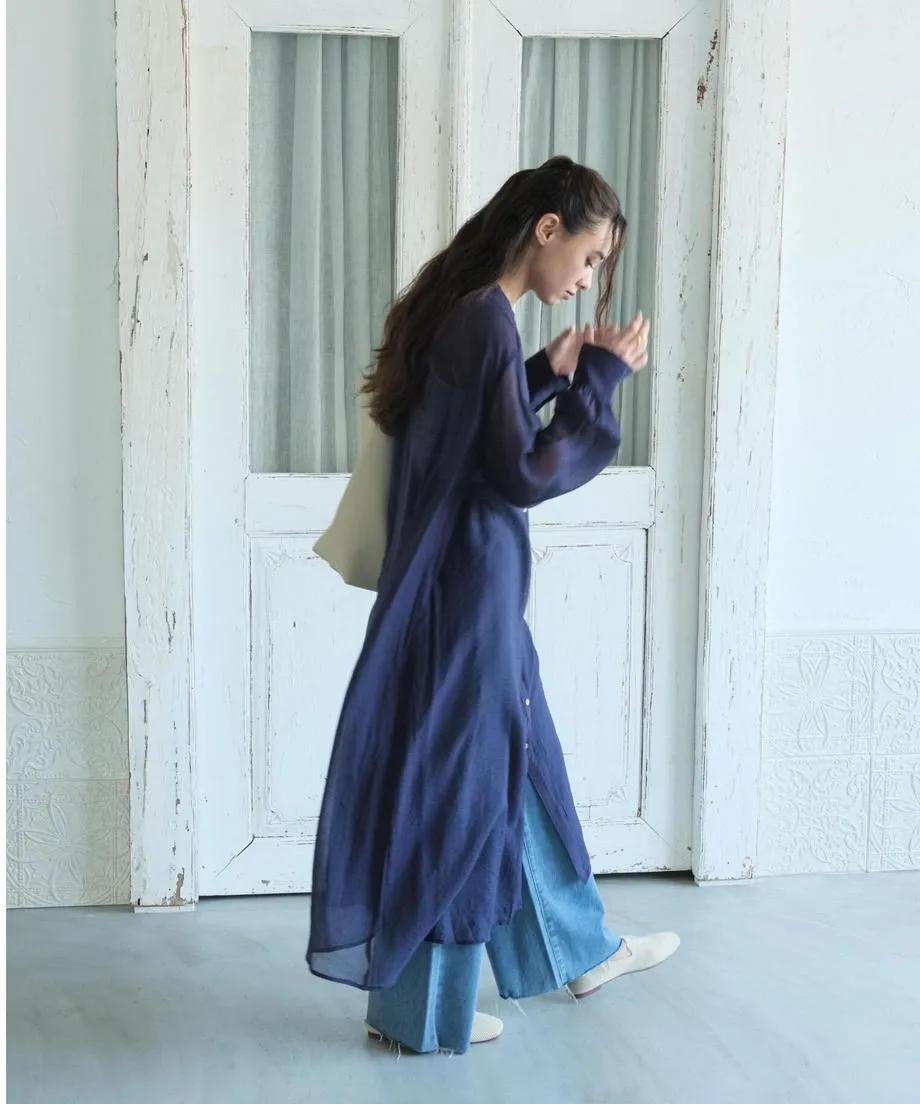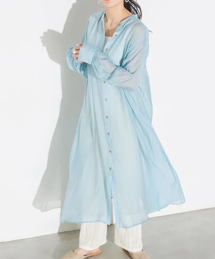 現貨深藍/水藍各一~開放優惠價格追加日幣8千多~專櫃精品再販!~高單價品牌真的很美~小幫自己有買襯衫跟洋裝喔<同款有襯衫~也超級推薦~本月還有新色>日幣高單價~非常美的微透單品面料整個輕柔+高質感素面~面料極好~單釦子就好出色~洋裝的釦子稍微小顆~比較低調喔一件可以正式可以休閒的單品小幫自己很喜歡這種高質感面料搭配休閒西裝褲或者寬庫覺得搭起來好美這款面料很薄~不是那種雪紡~是很透氣的螺縈面料穿到8.9月正夏天~完全沒問題喔2色直接當罩衫也很美