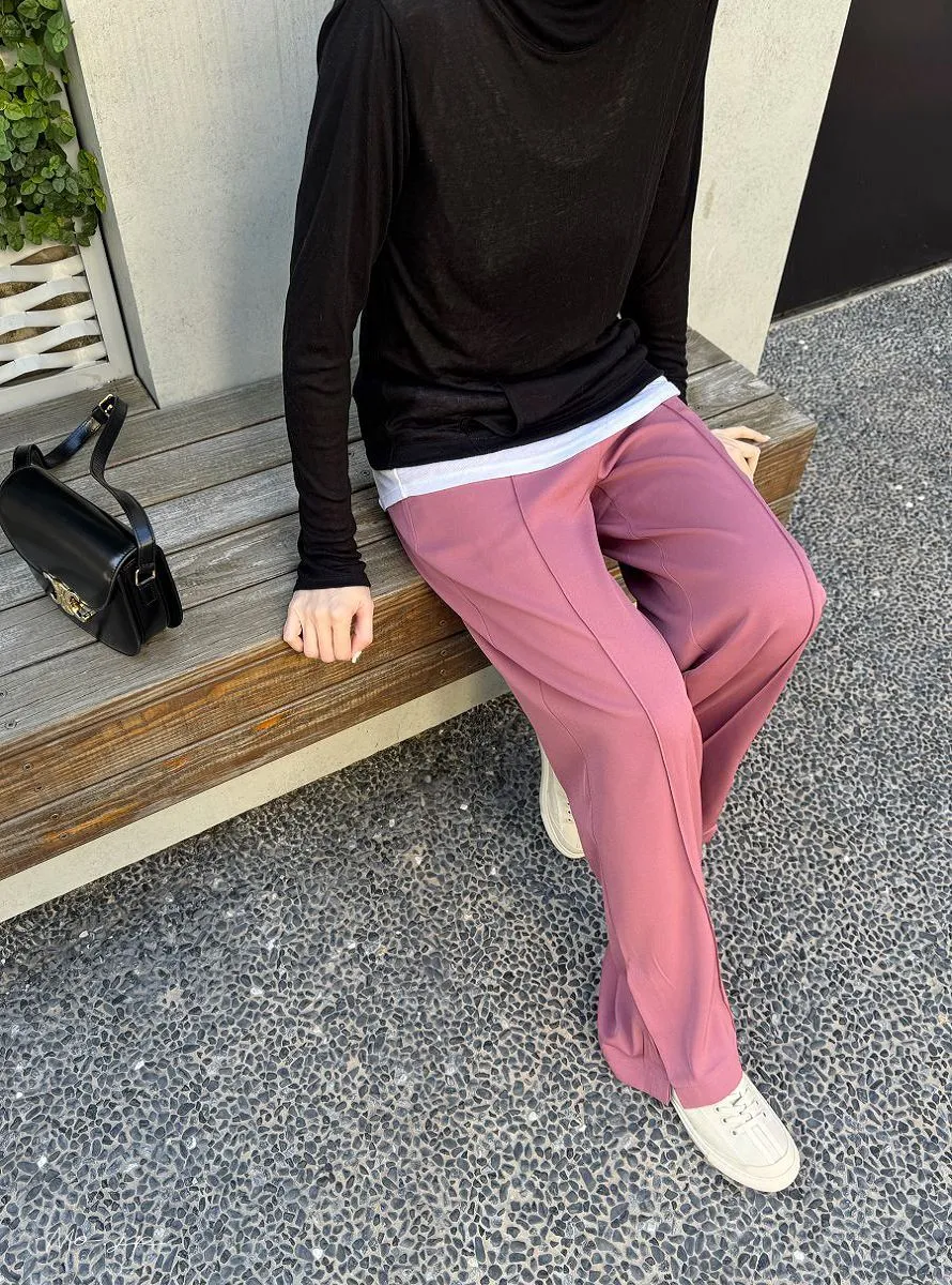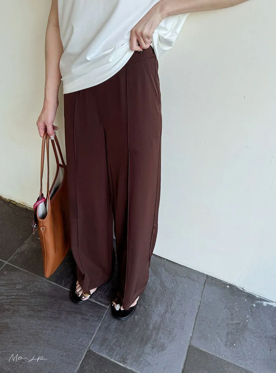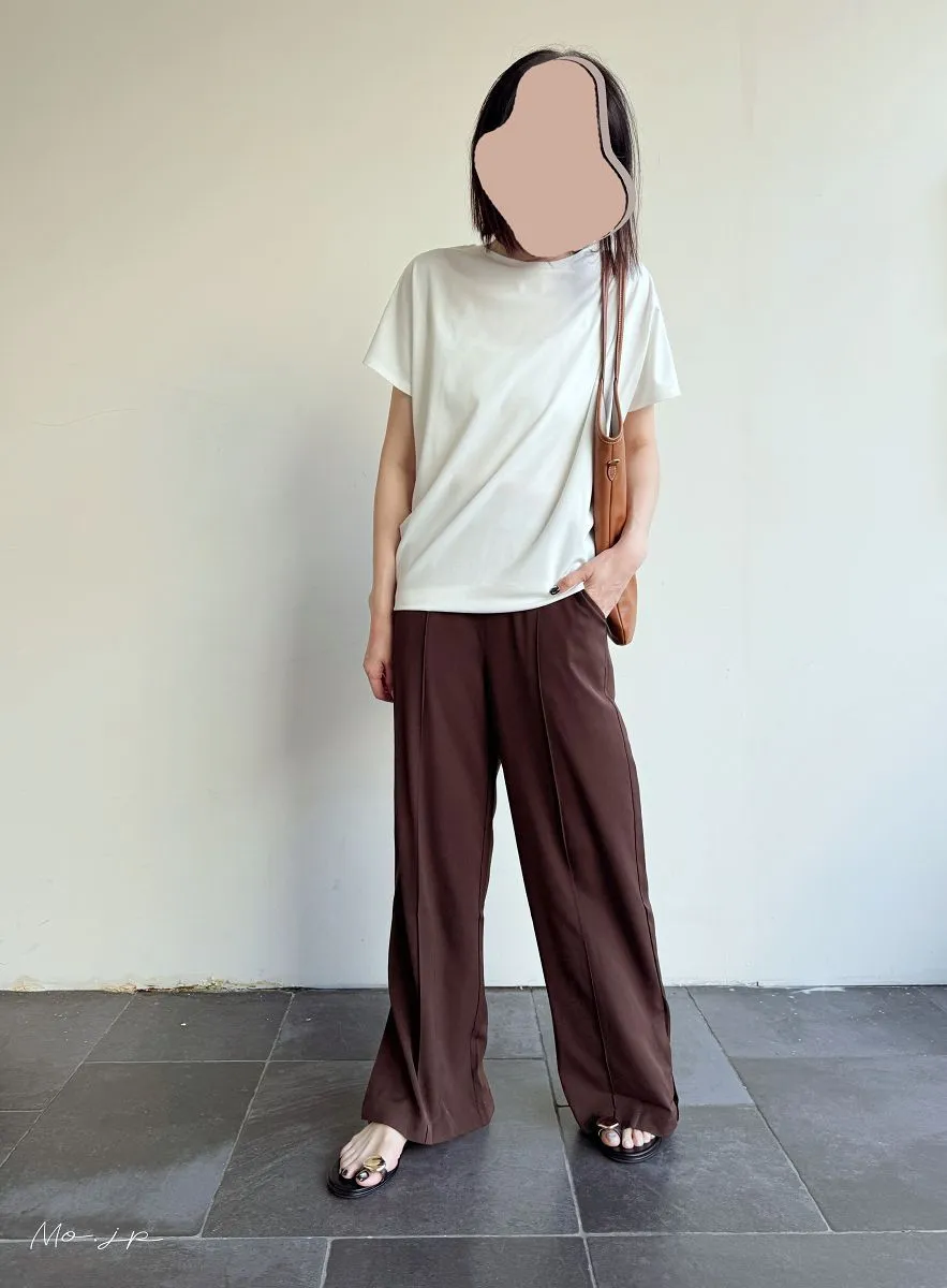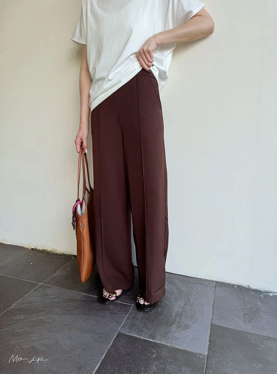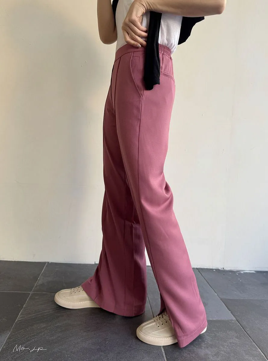超級好看的光澤西裝寬褲~腰部鬆緊有夠舒服