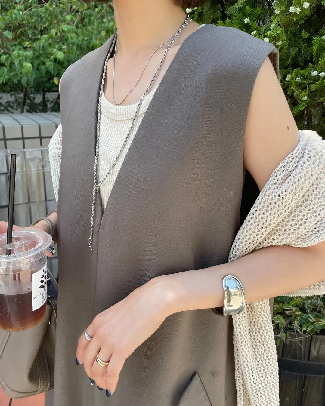 這件作品具有優雅的氣息,與俐落和休閒的造型很相配。
