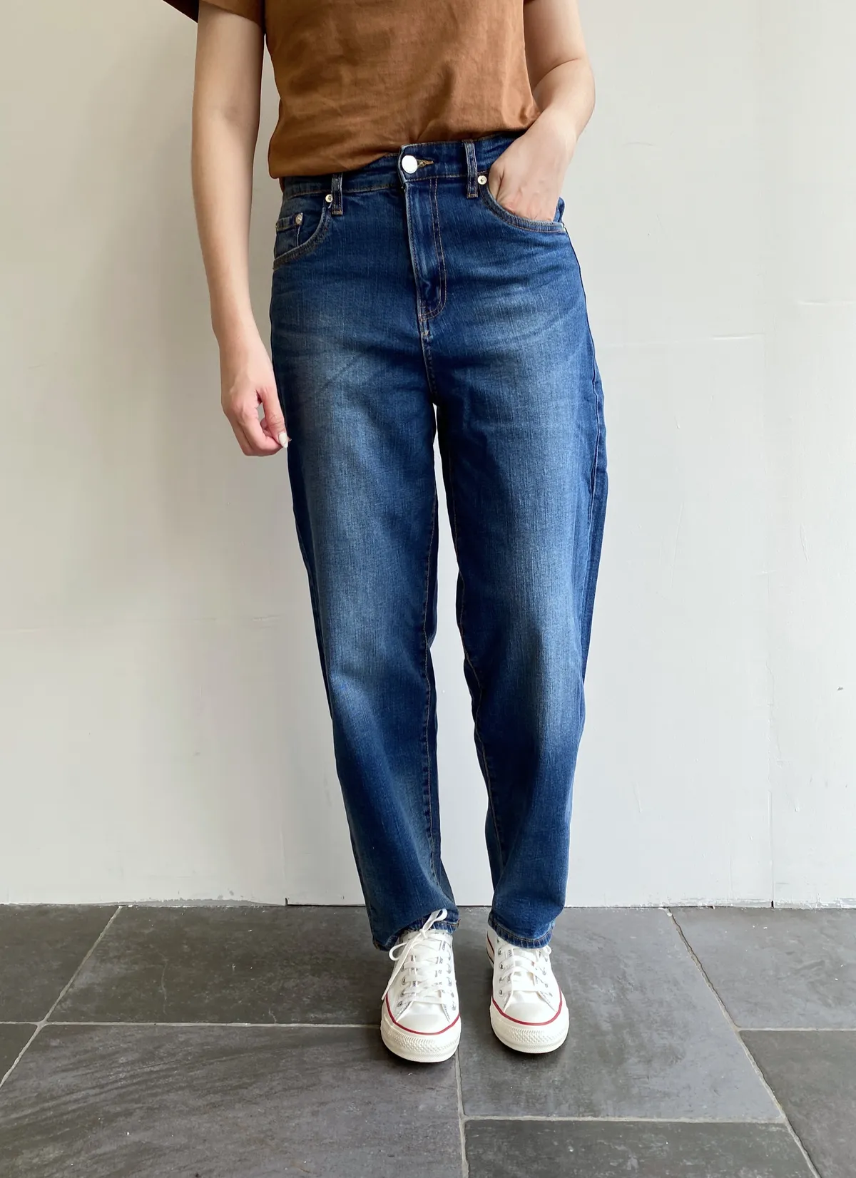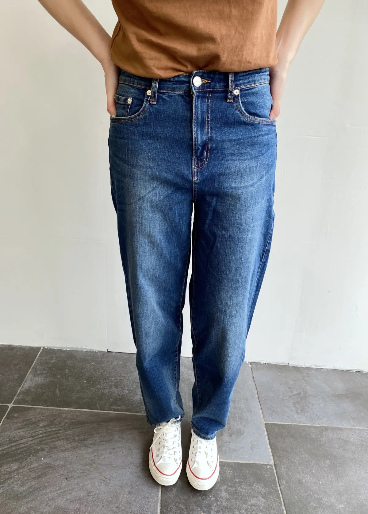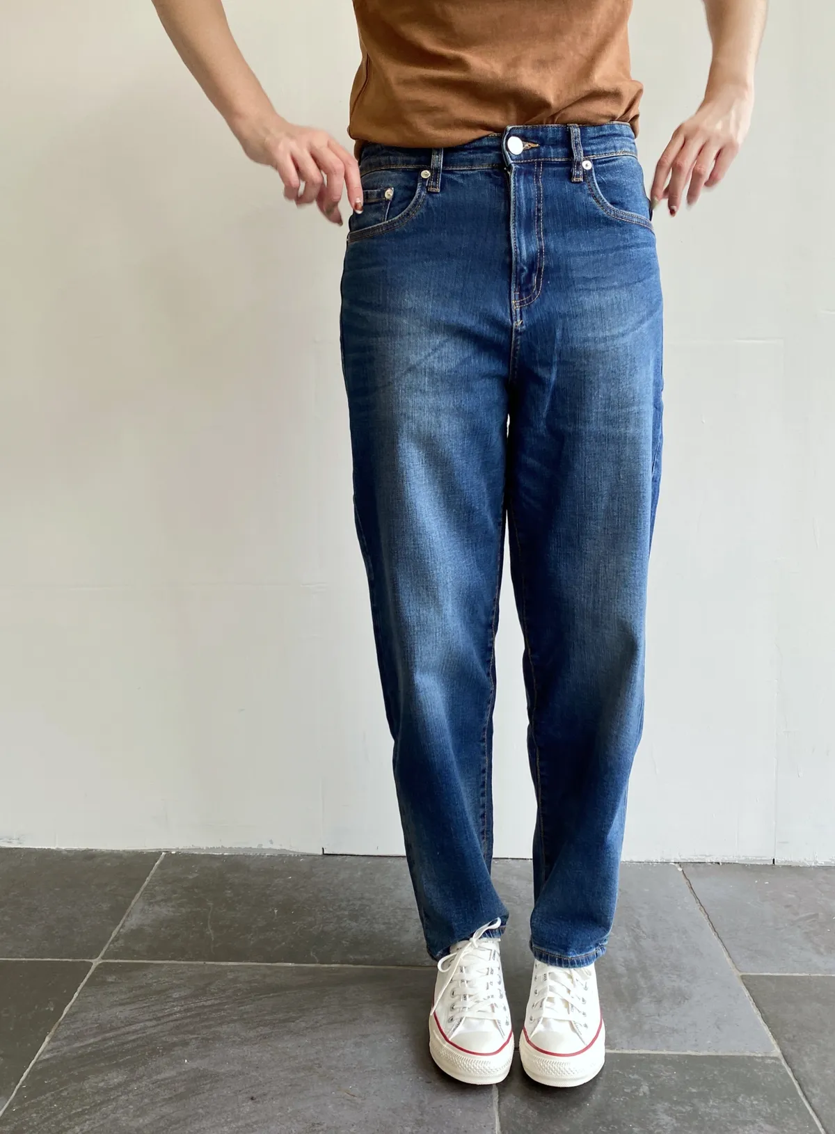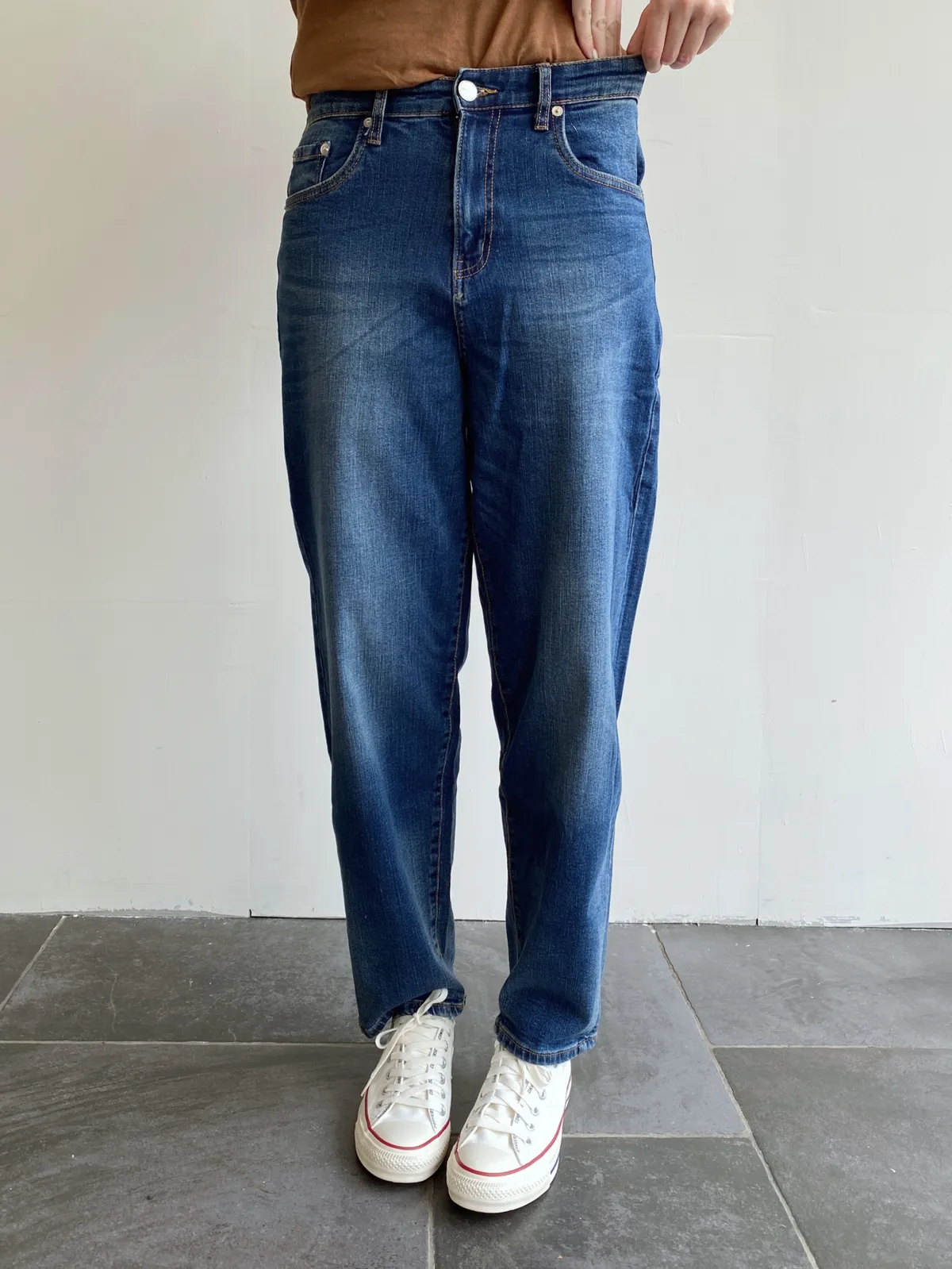 深藍-沒有刷色~小幫穿L~鬆度偏鬆~腰穿起來服貼但感覺是鬆的~臀跟腿都是比較鬆一點點~空間蠻大的