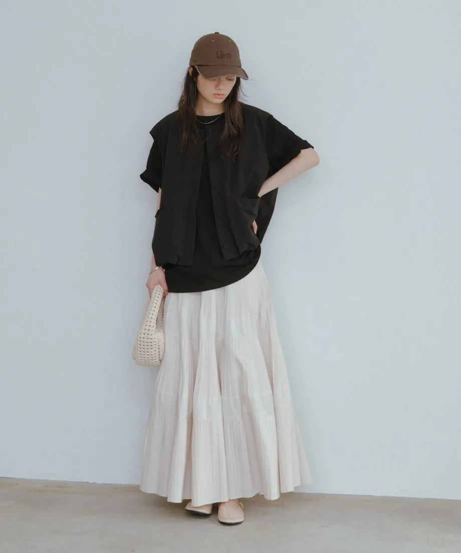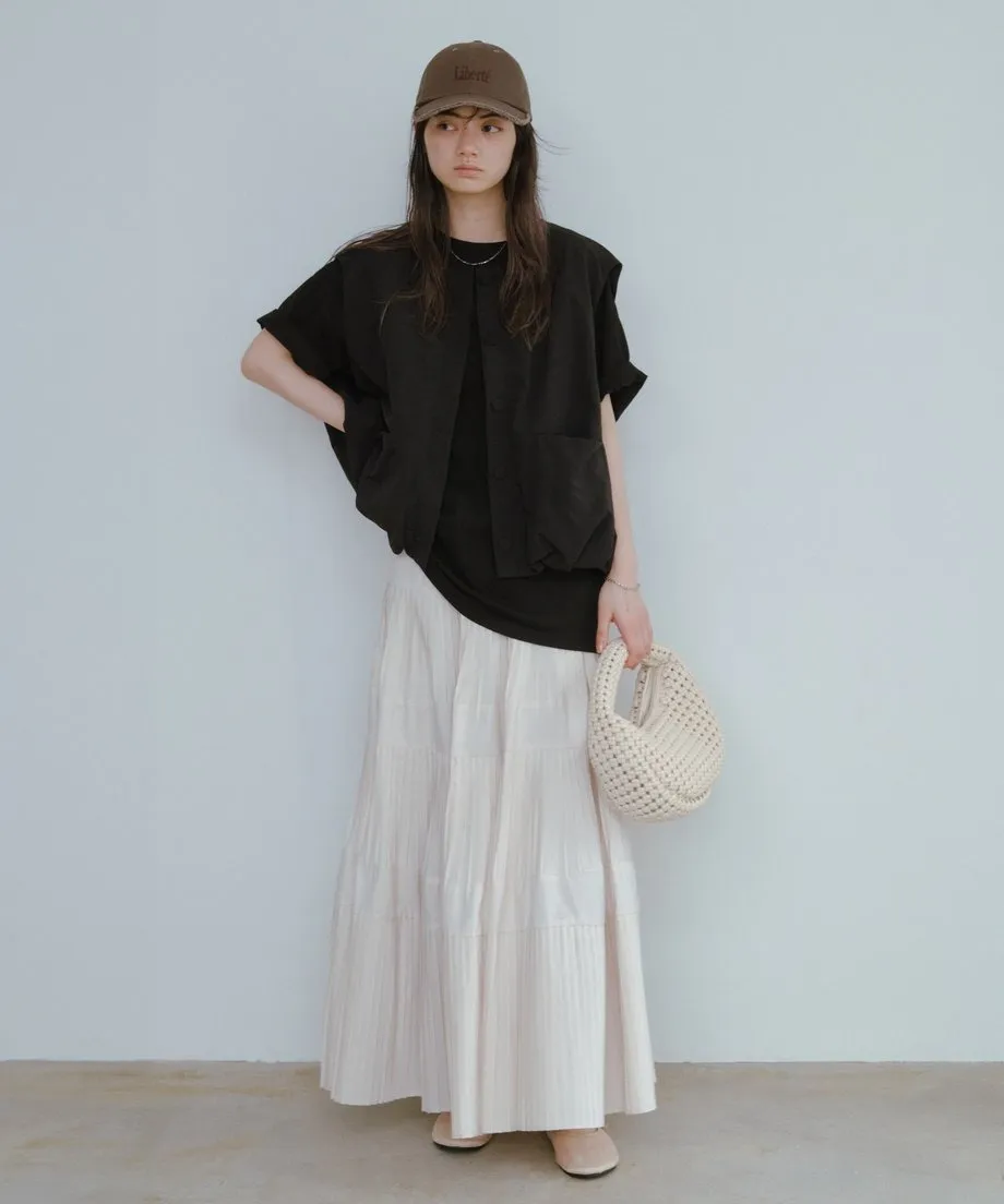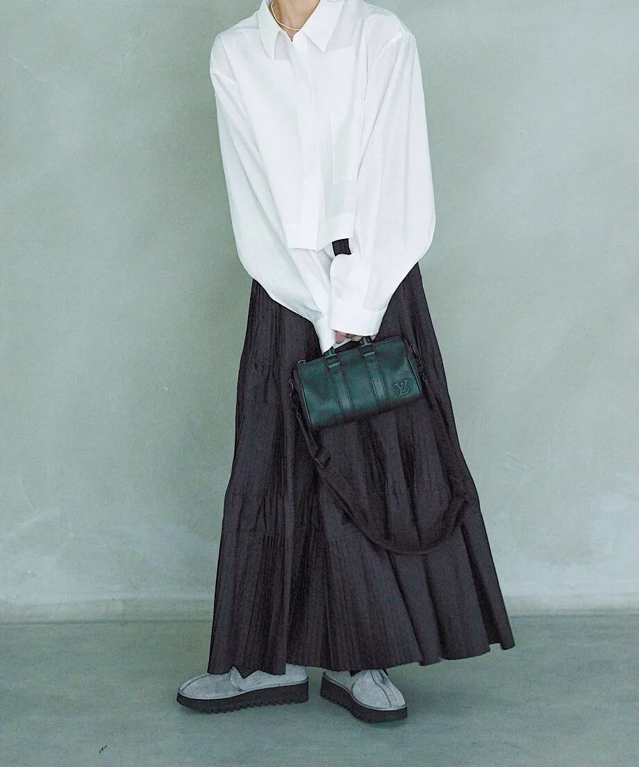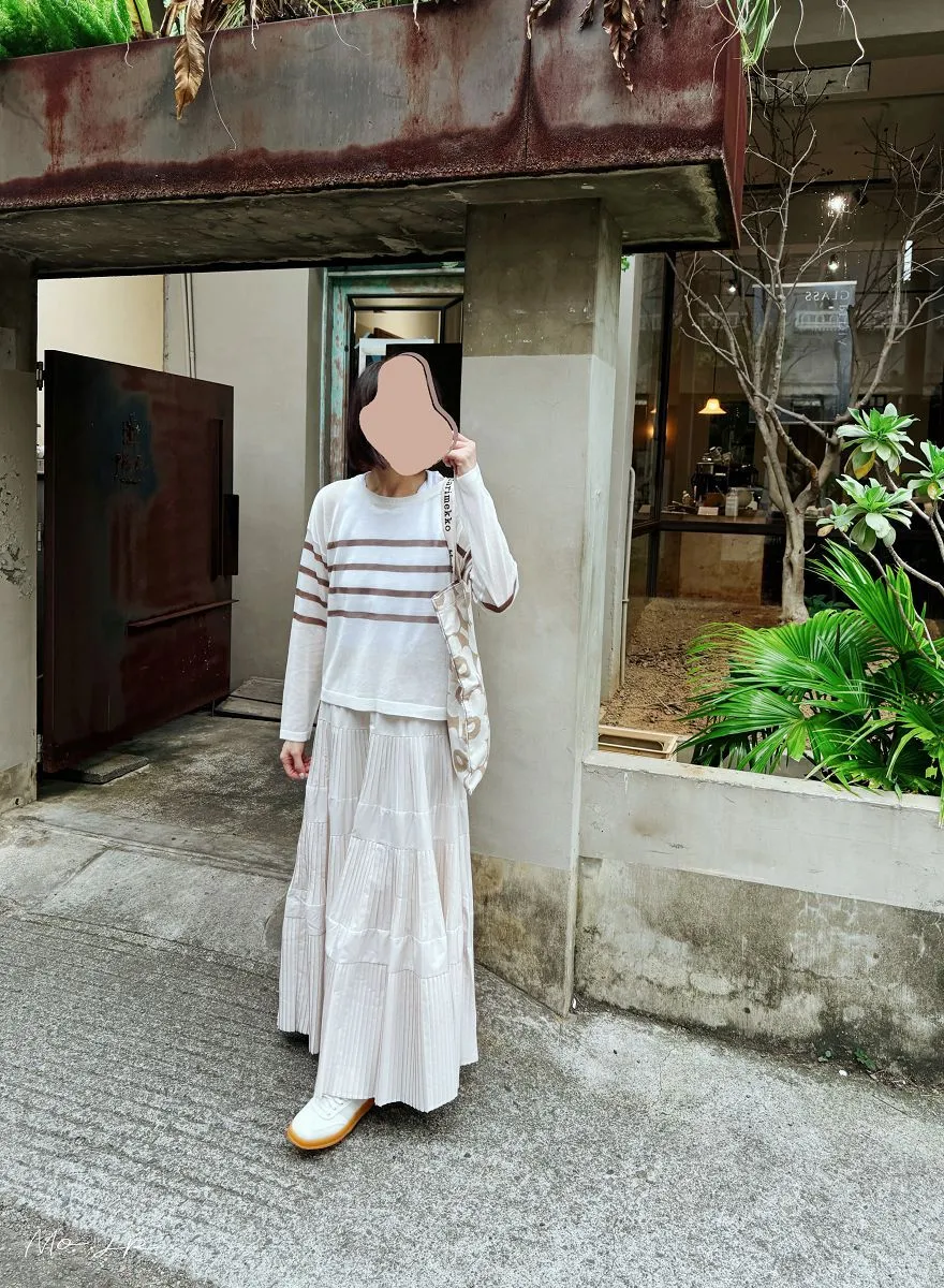 腰部鬆緊~A LINE~面料又是很有質感的襯衫料~