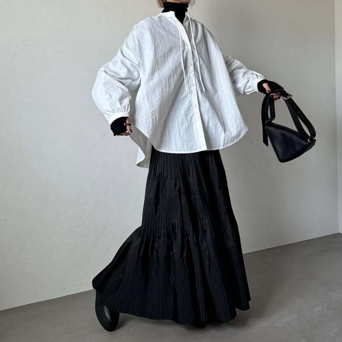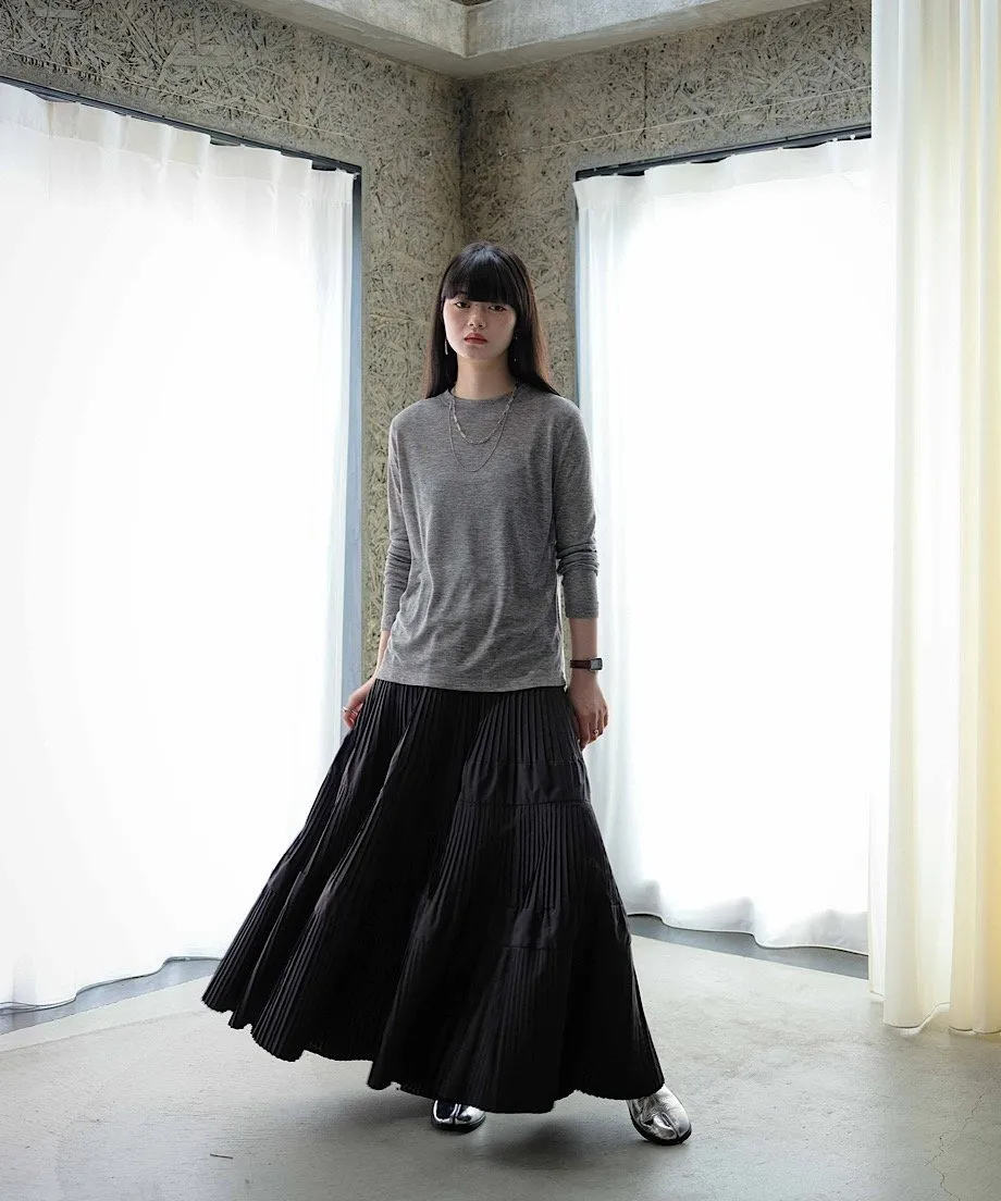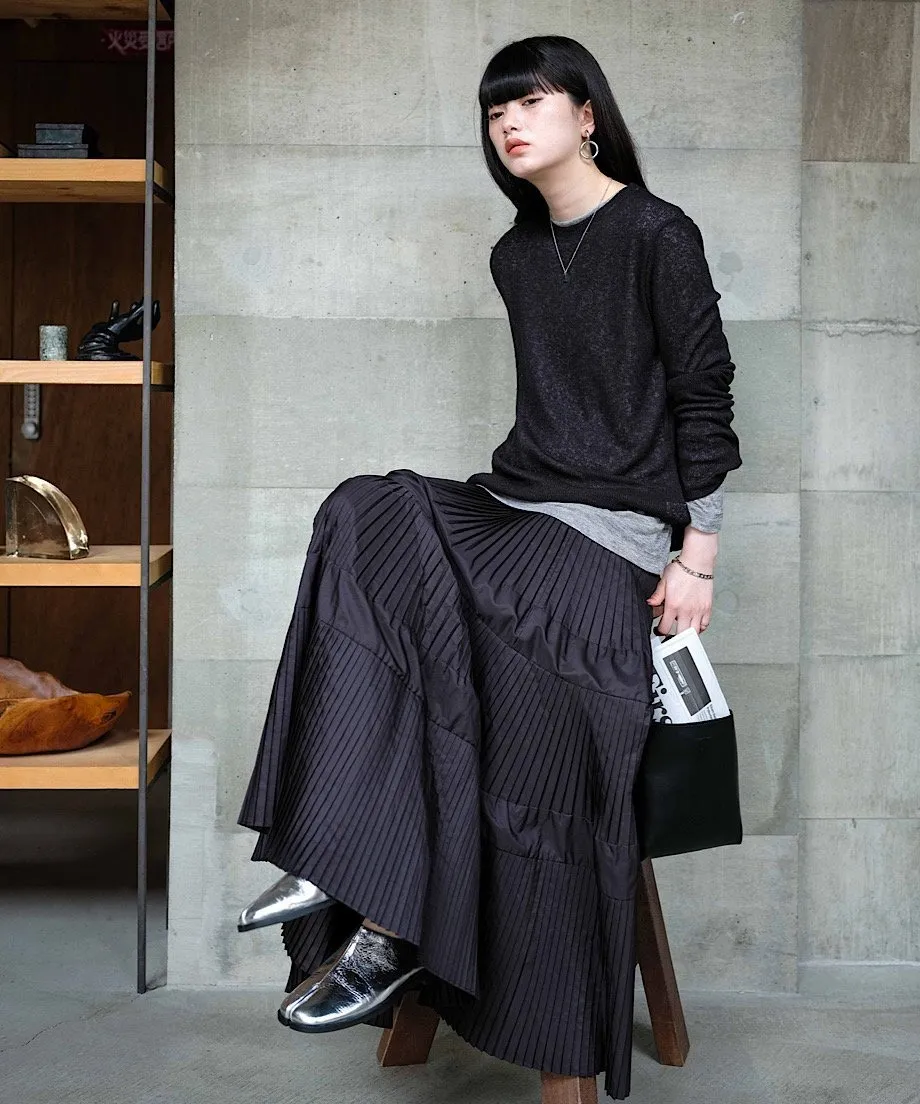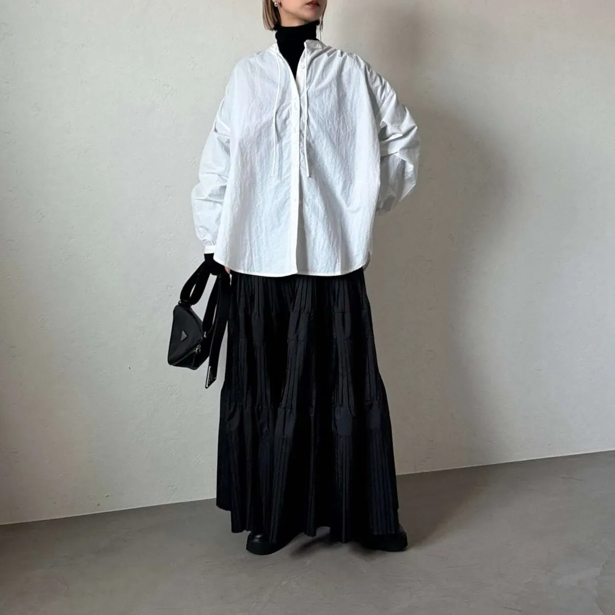 腰部鬆緊~A LINE~面料又是很有質感的襯衫料~