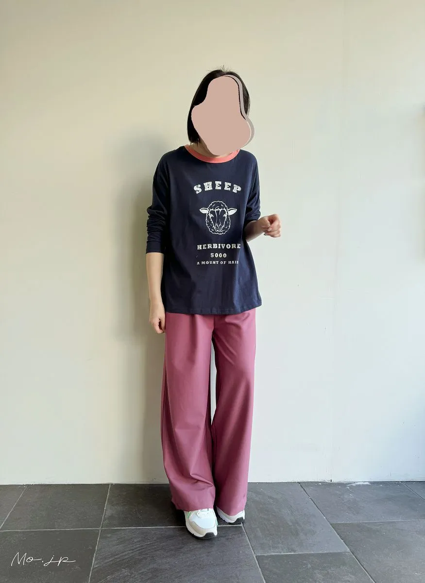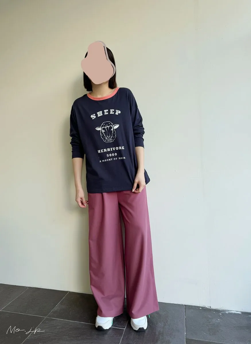小幫圖中梅粉穿L號喔~長度比較長~寬褲也稍稍寬~很舒服~