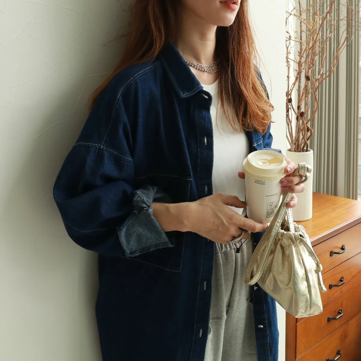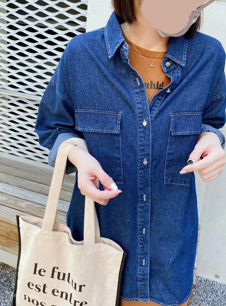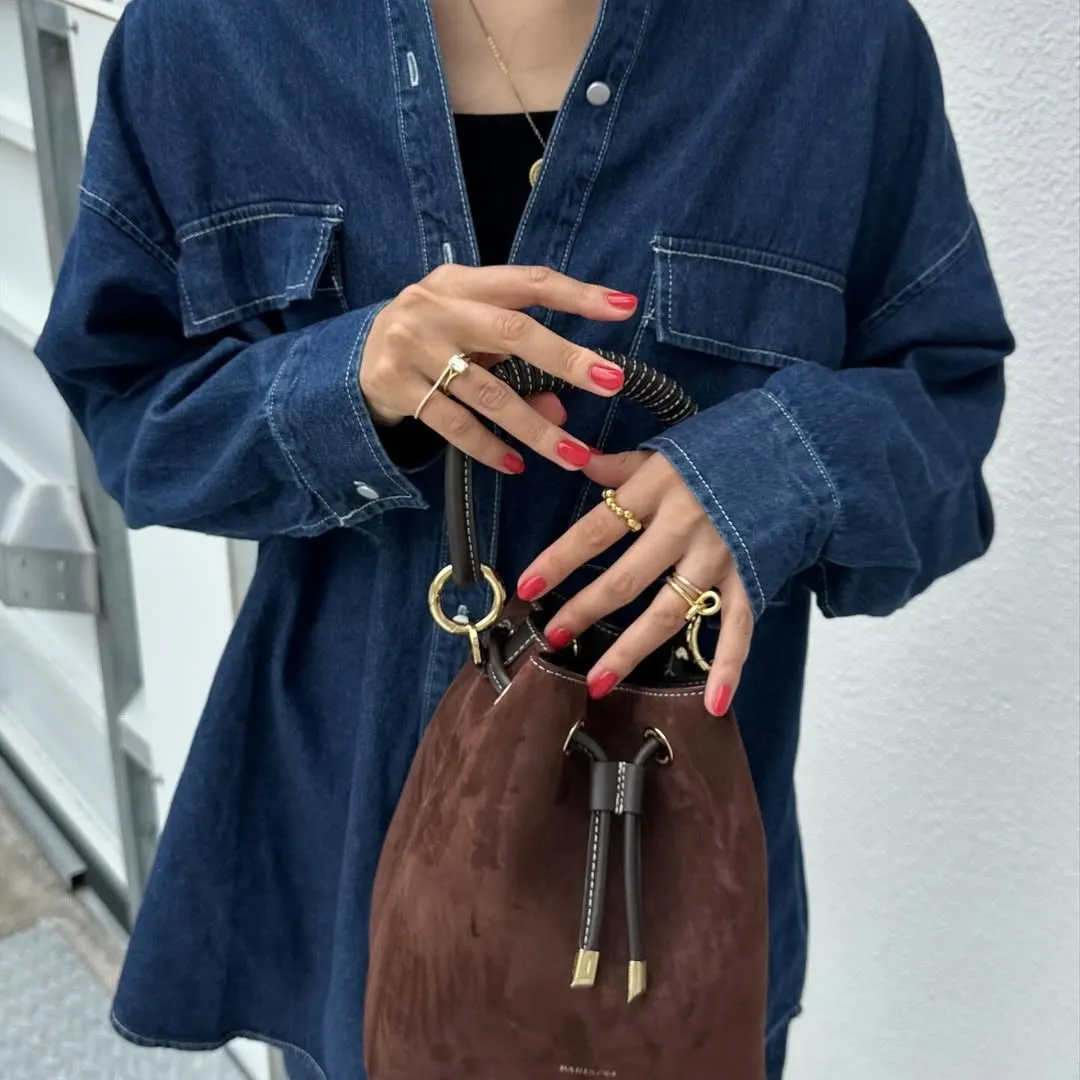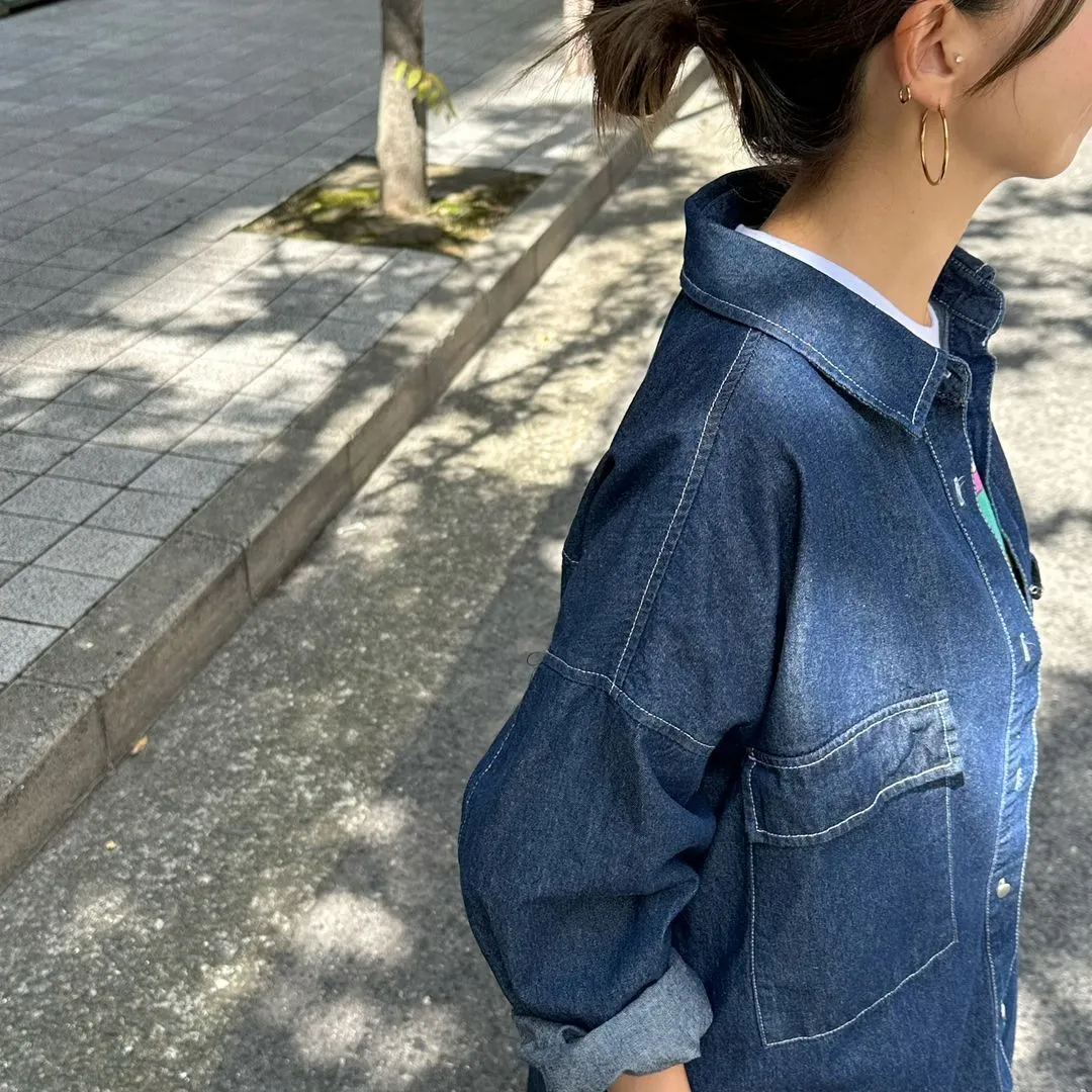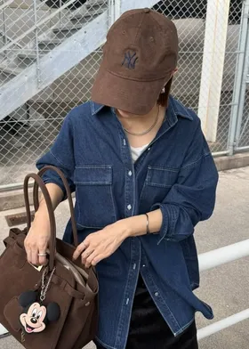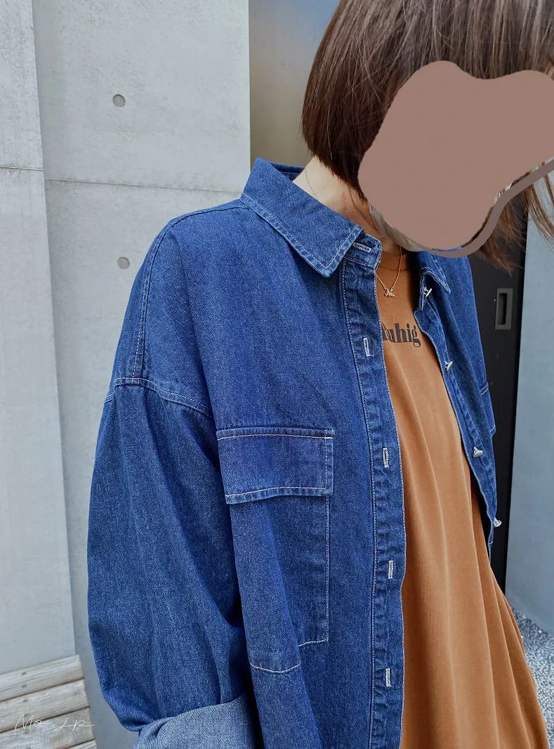 胸前掀蓋的大口袋的設計~搭配圓圓的小銀釦點綴~
