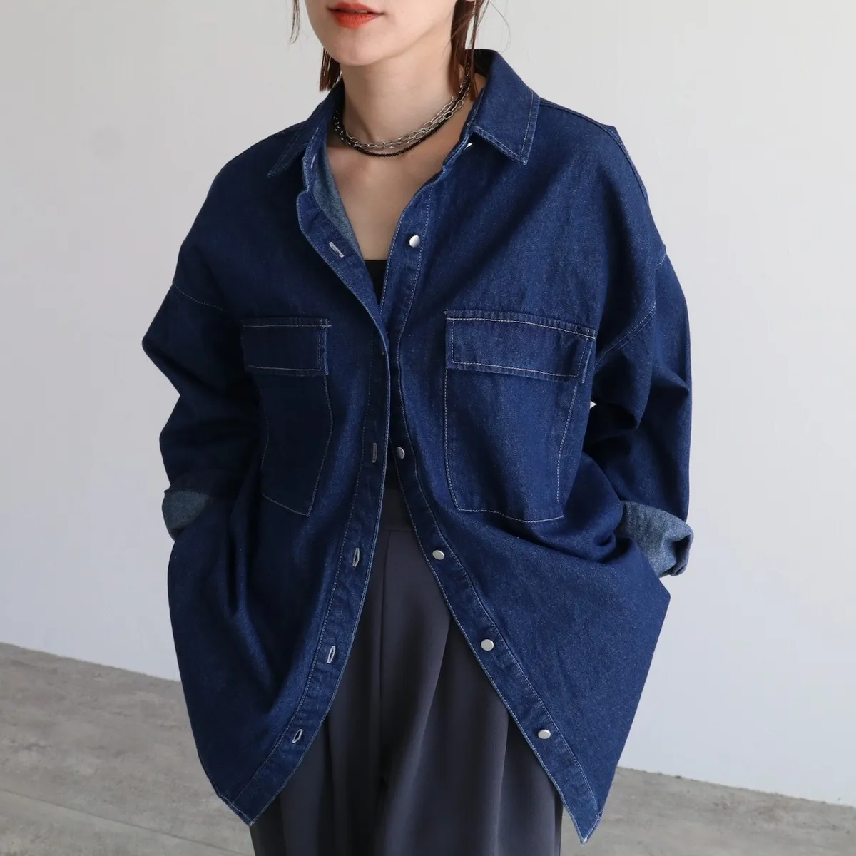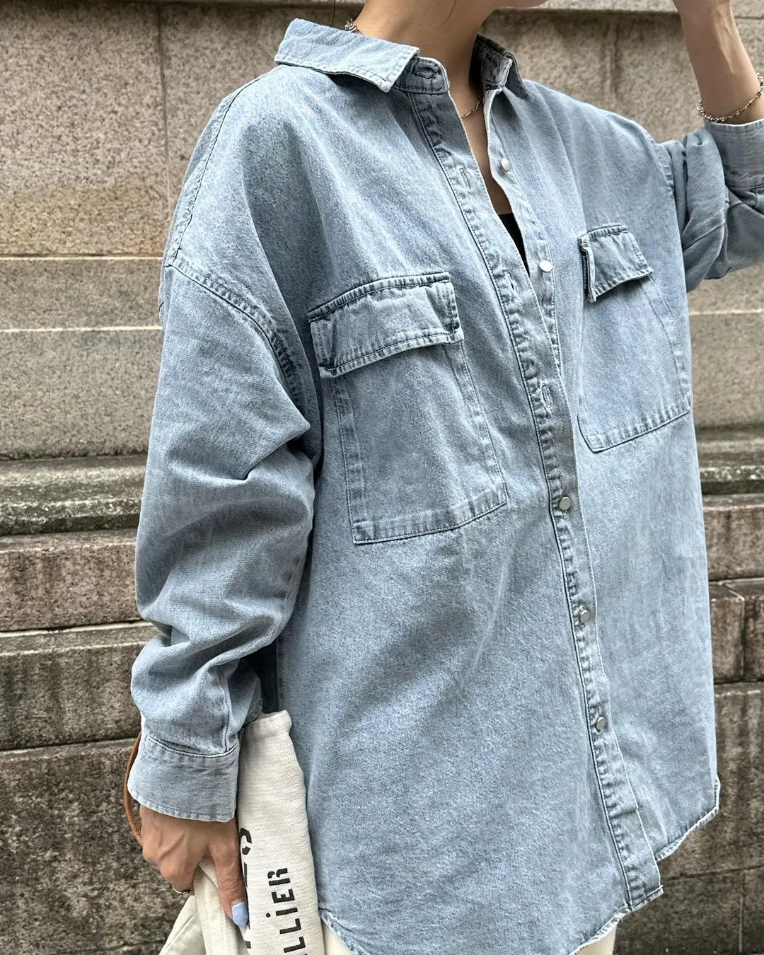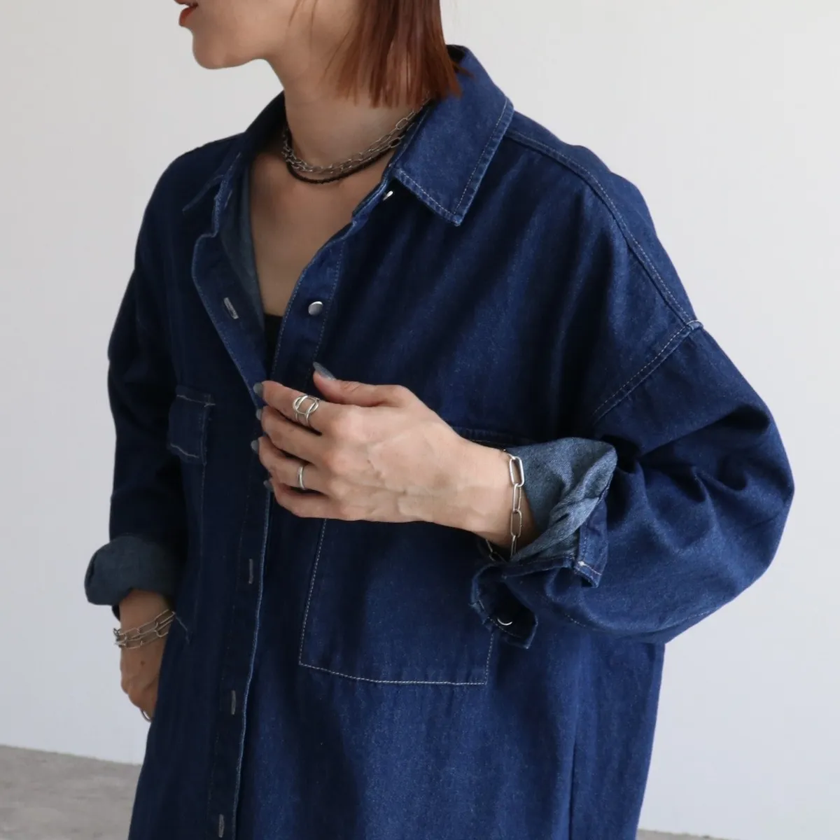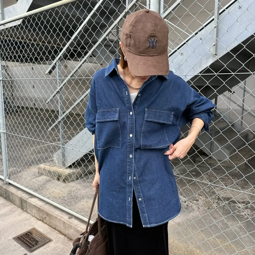 胸前掀蓋的大口袋的設計~搭配圓圓的小銀釦點綴~