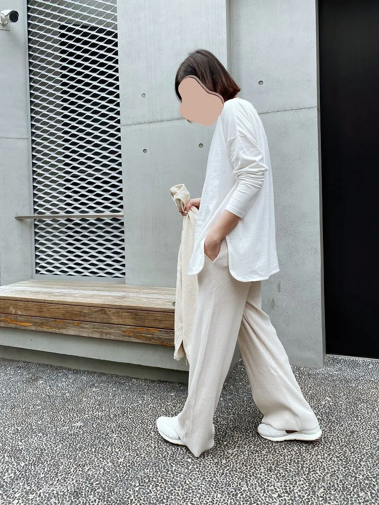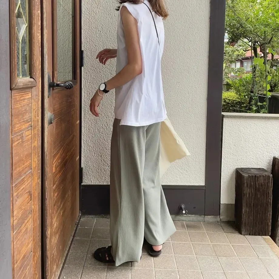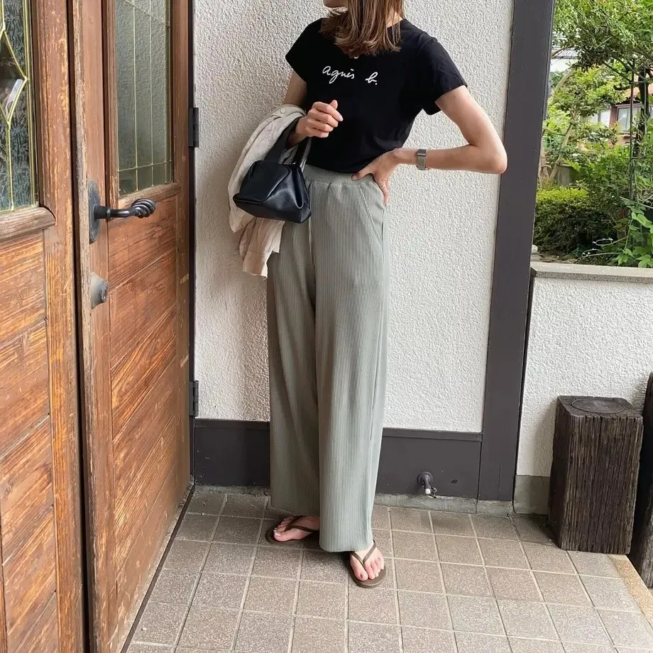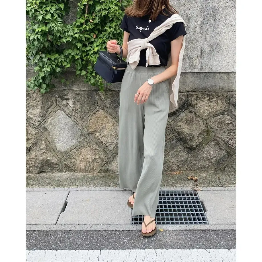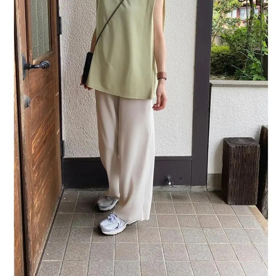 今年也很流行壓紋休閒寬褲~