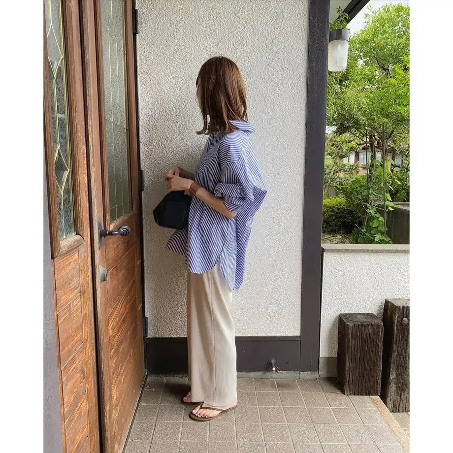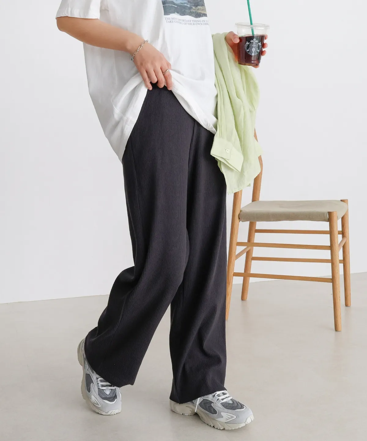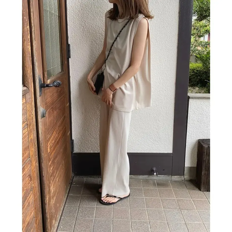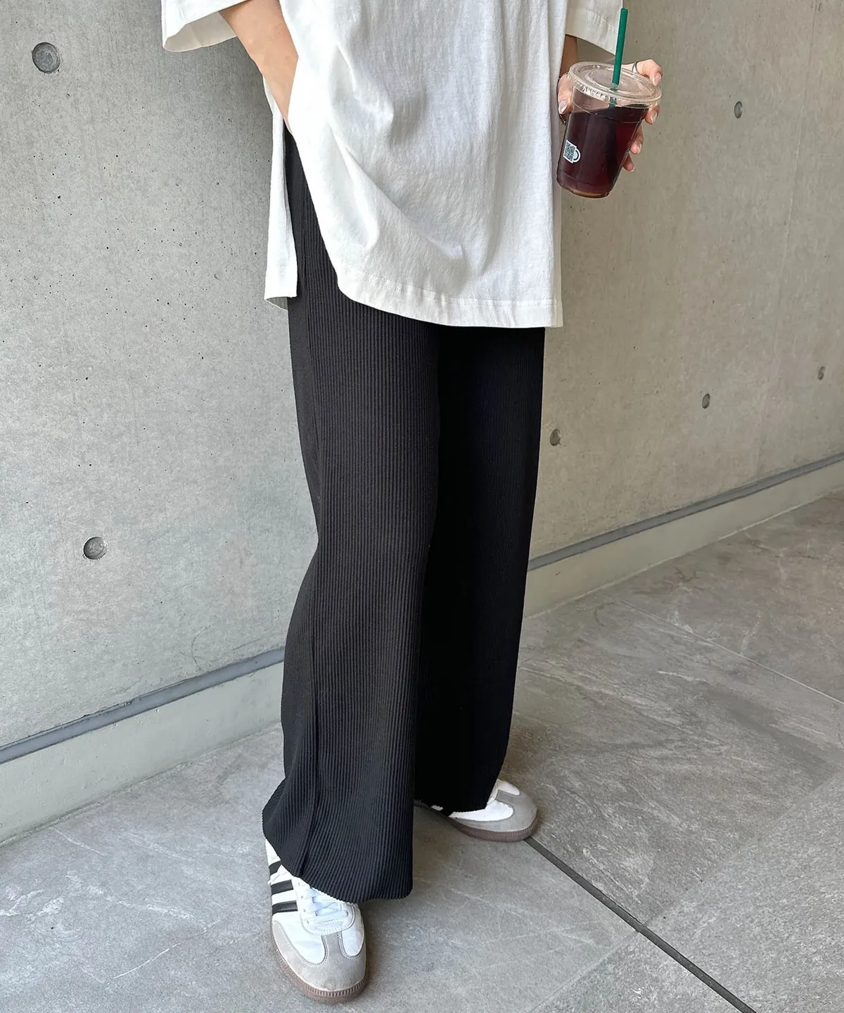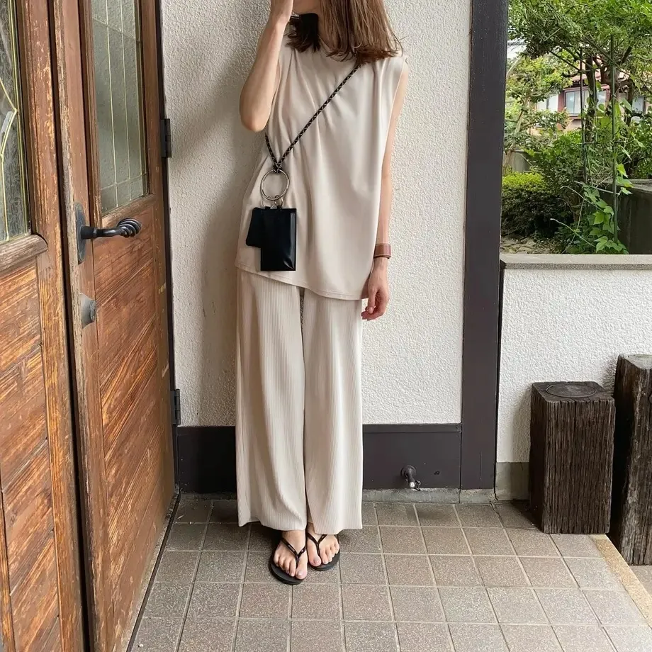今年也很流行壓紋休閒寬褲~