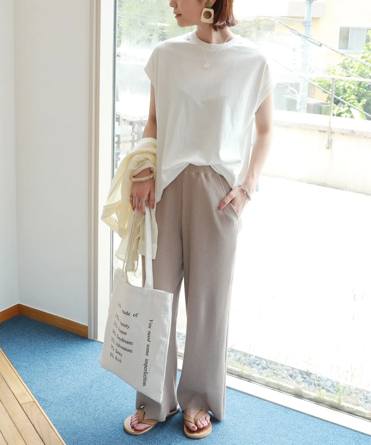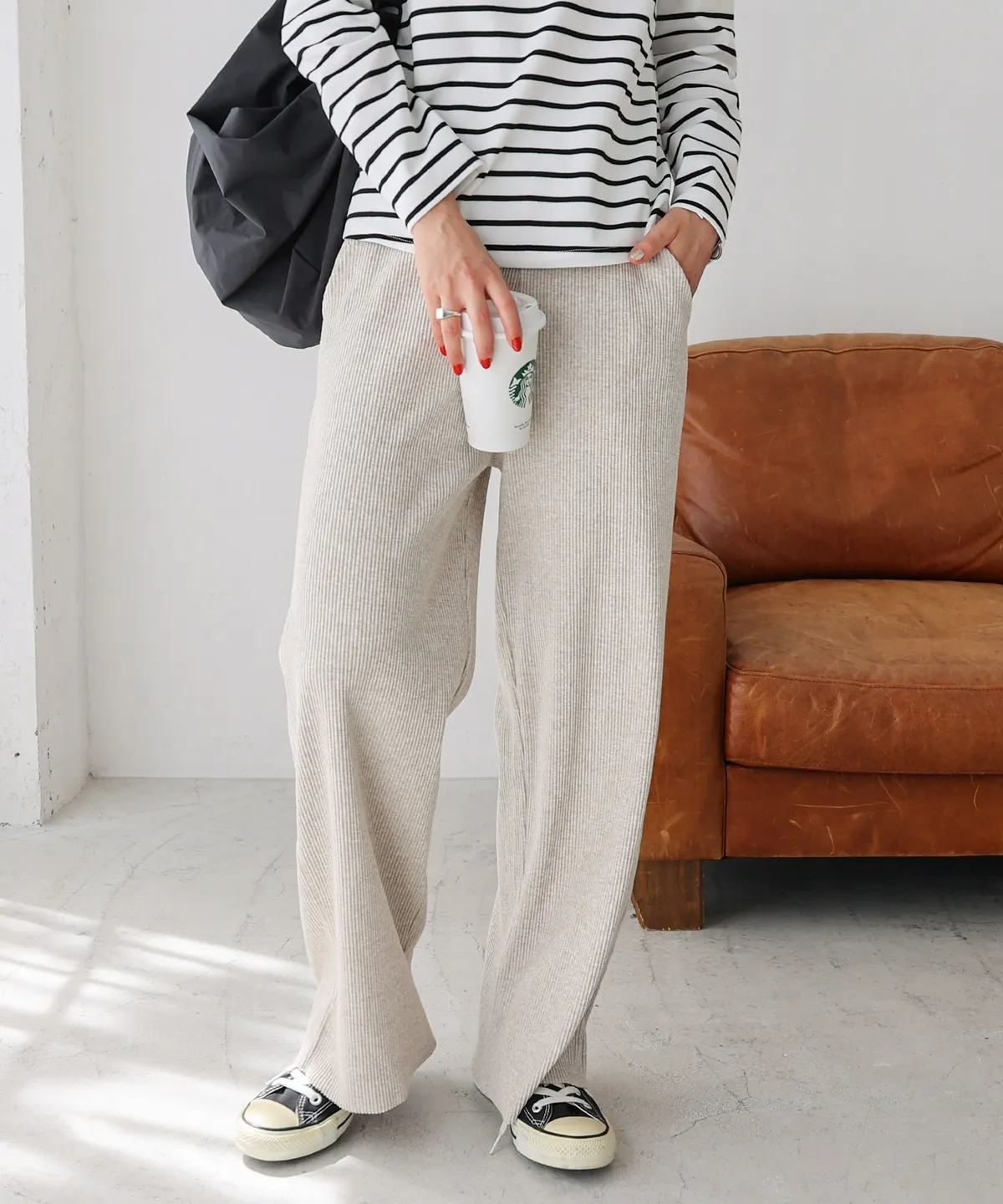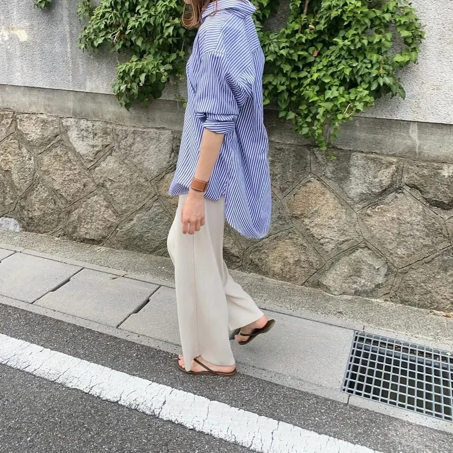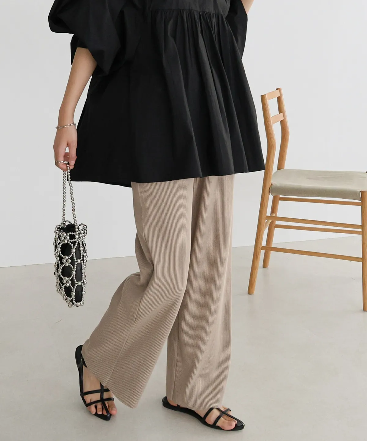 今年也很流行壓紋休閒寬褲~