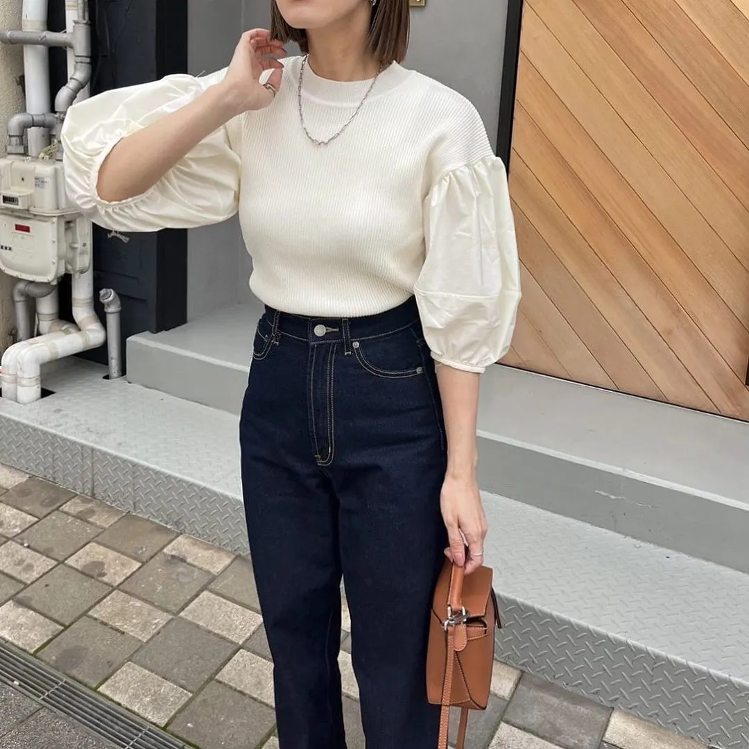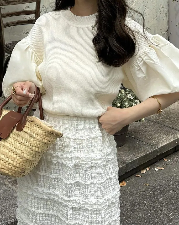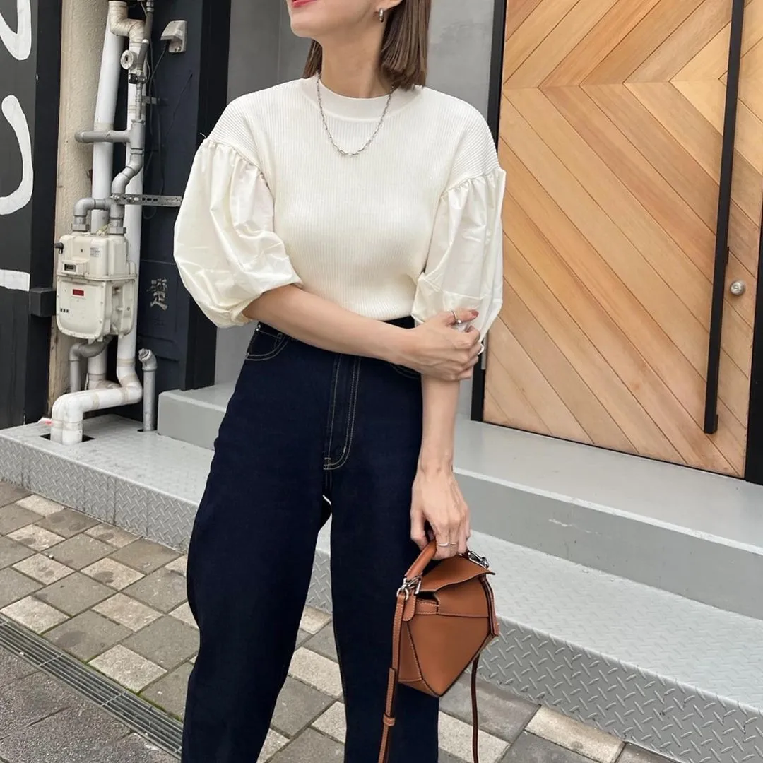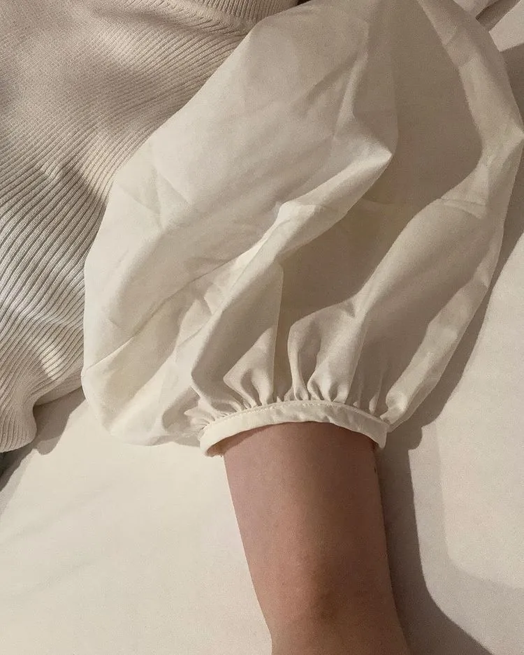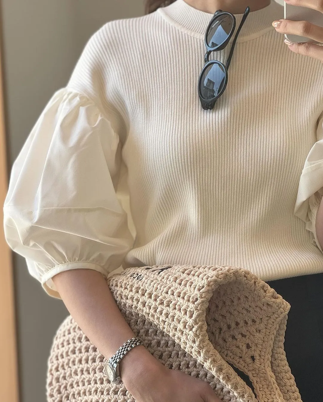 面料是夏日針織拼接襯衫砰砰袖<正夏天~戶外~會太熱喔!冷氣房OK喔>