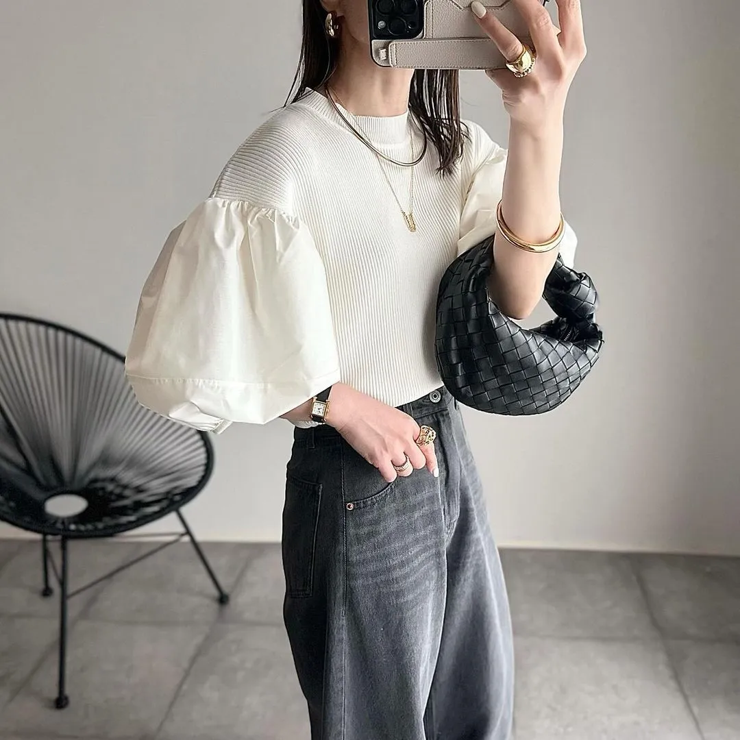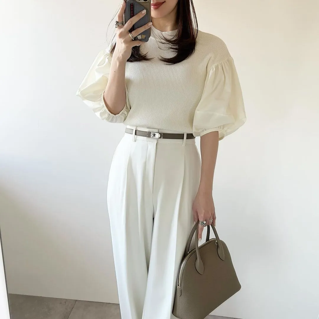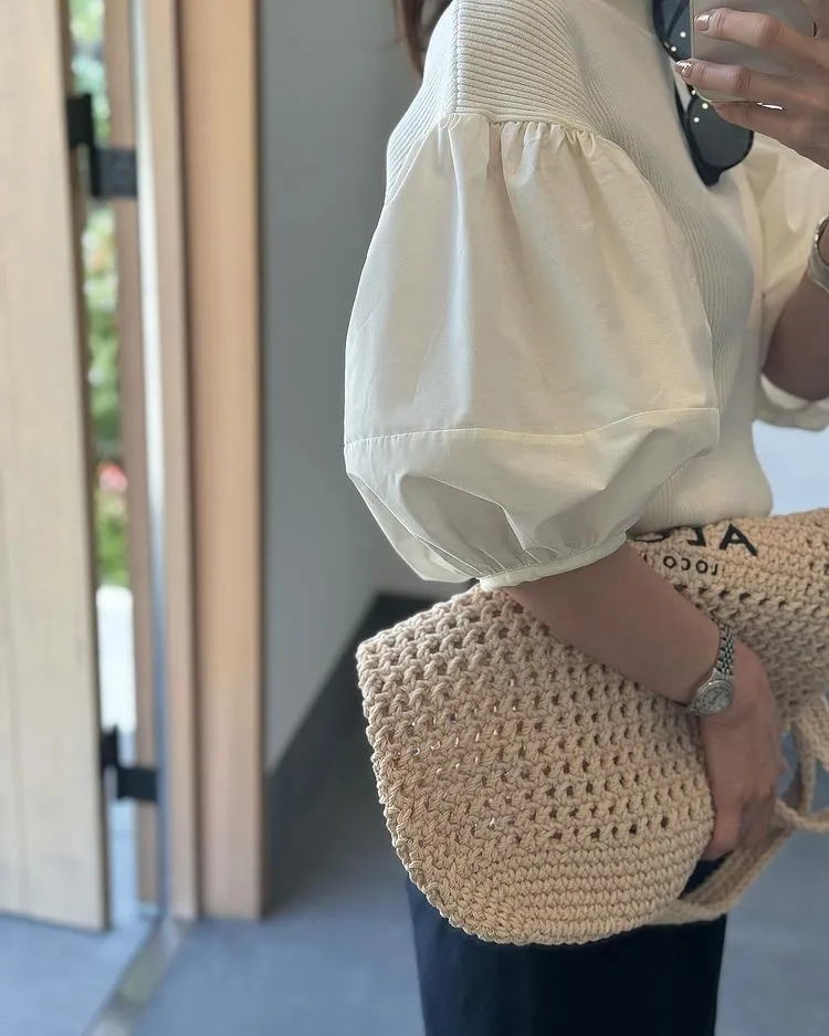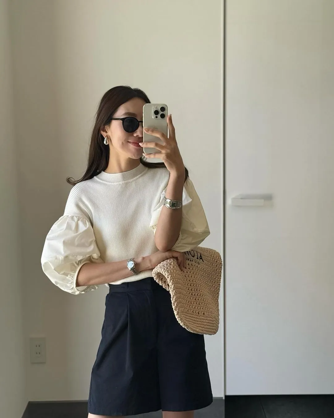 面料是夏日針織拼接襯衫砰砰袖<正夏天~戶外~會太熱喔!冷氣房OK喔>
