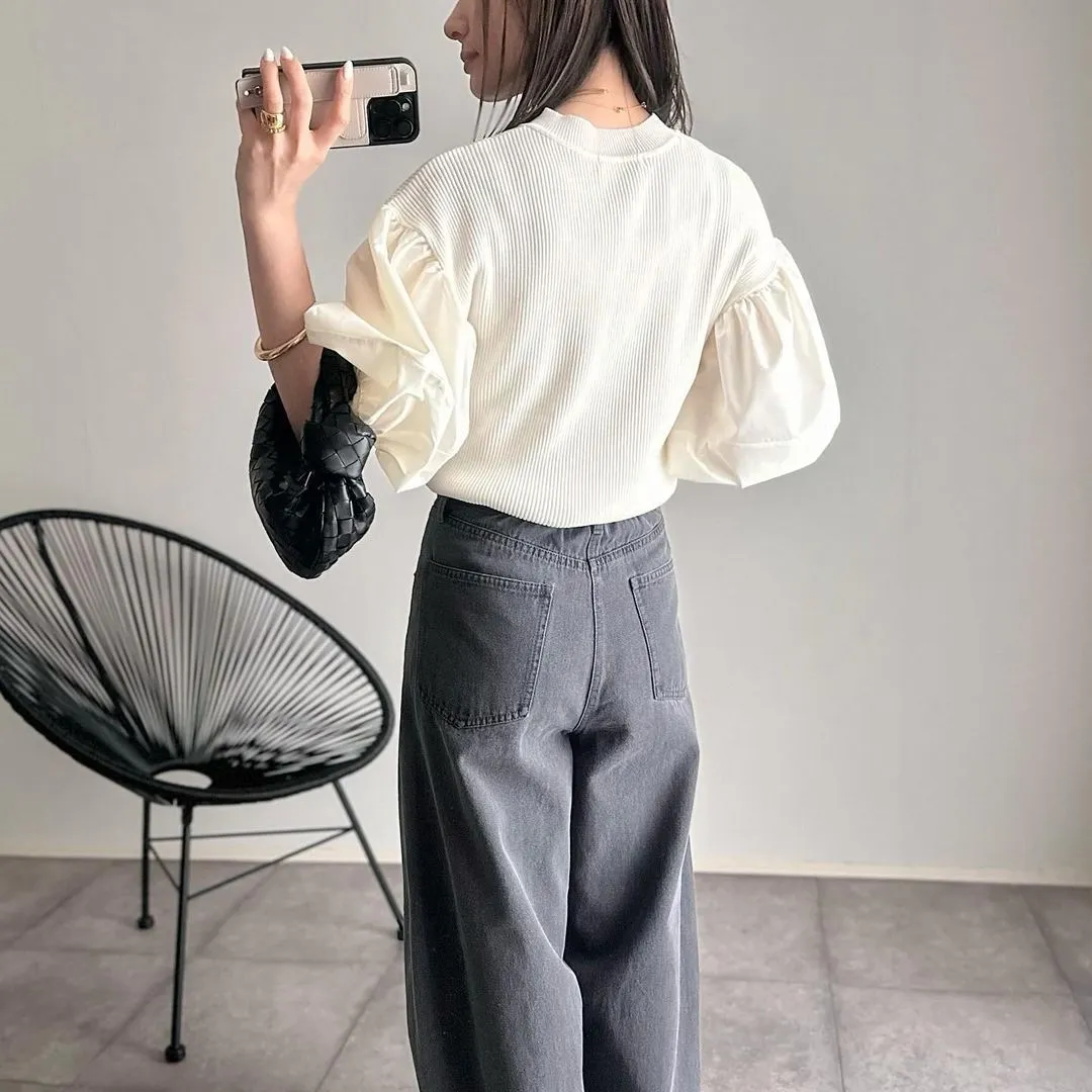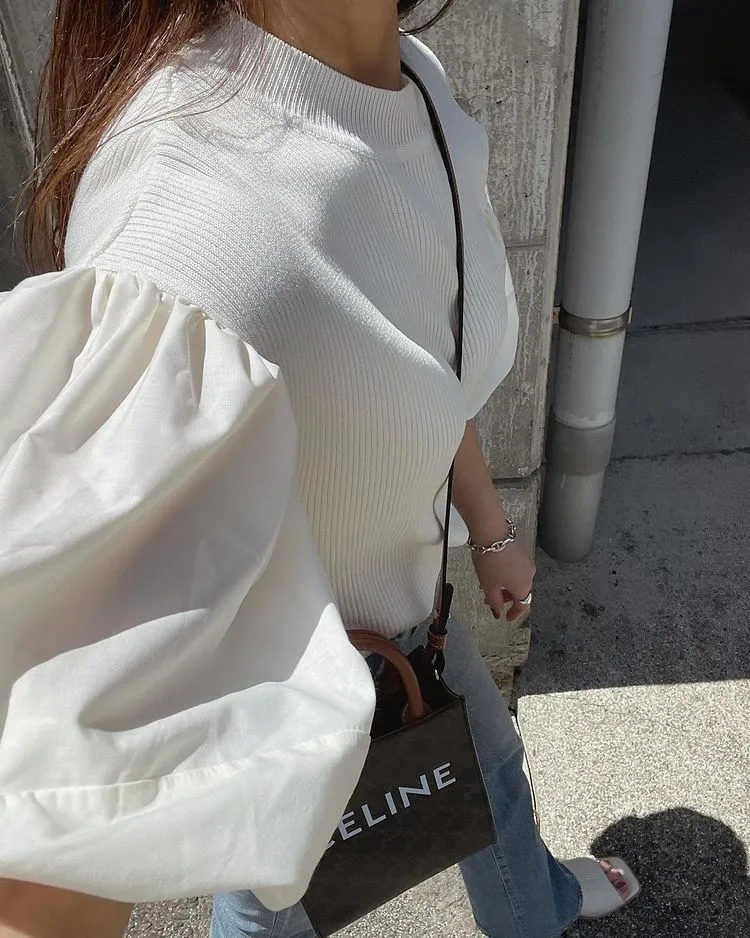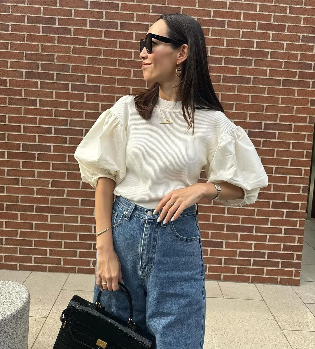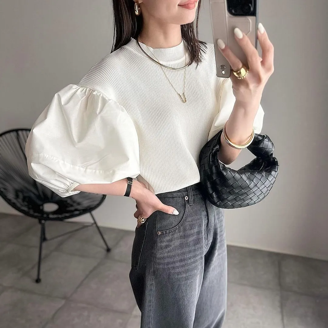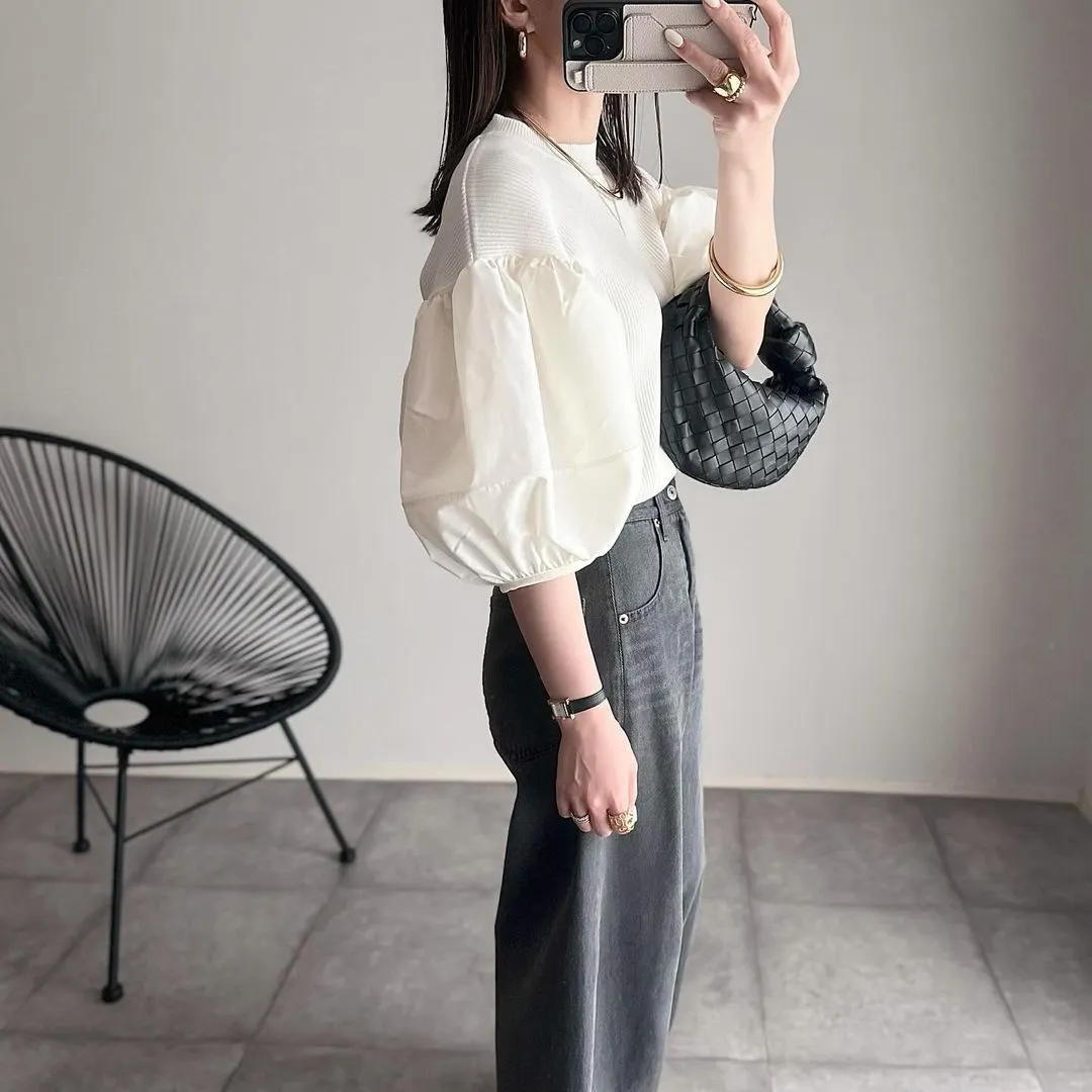 面料是夏日針織拼接襯衫砰砰袖<正夏天~戶外~會太熱喔!冷氣房OK喔>