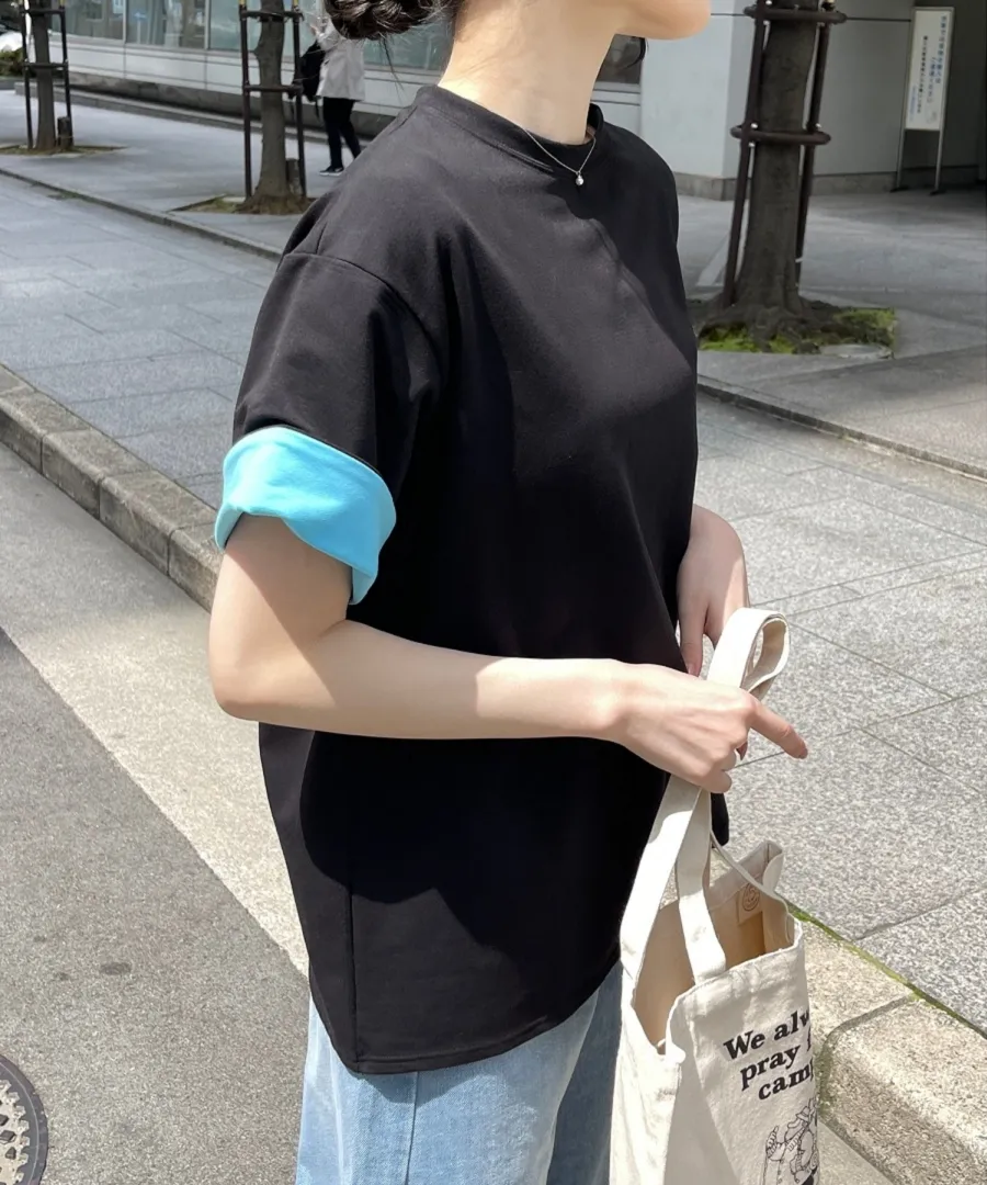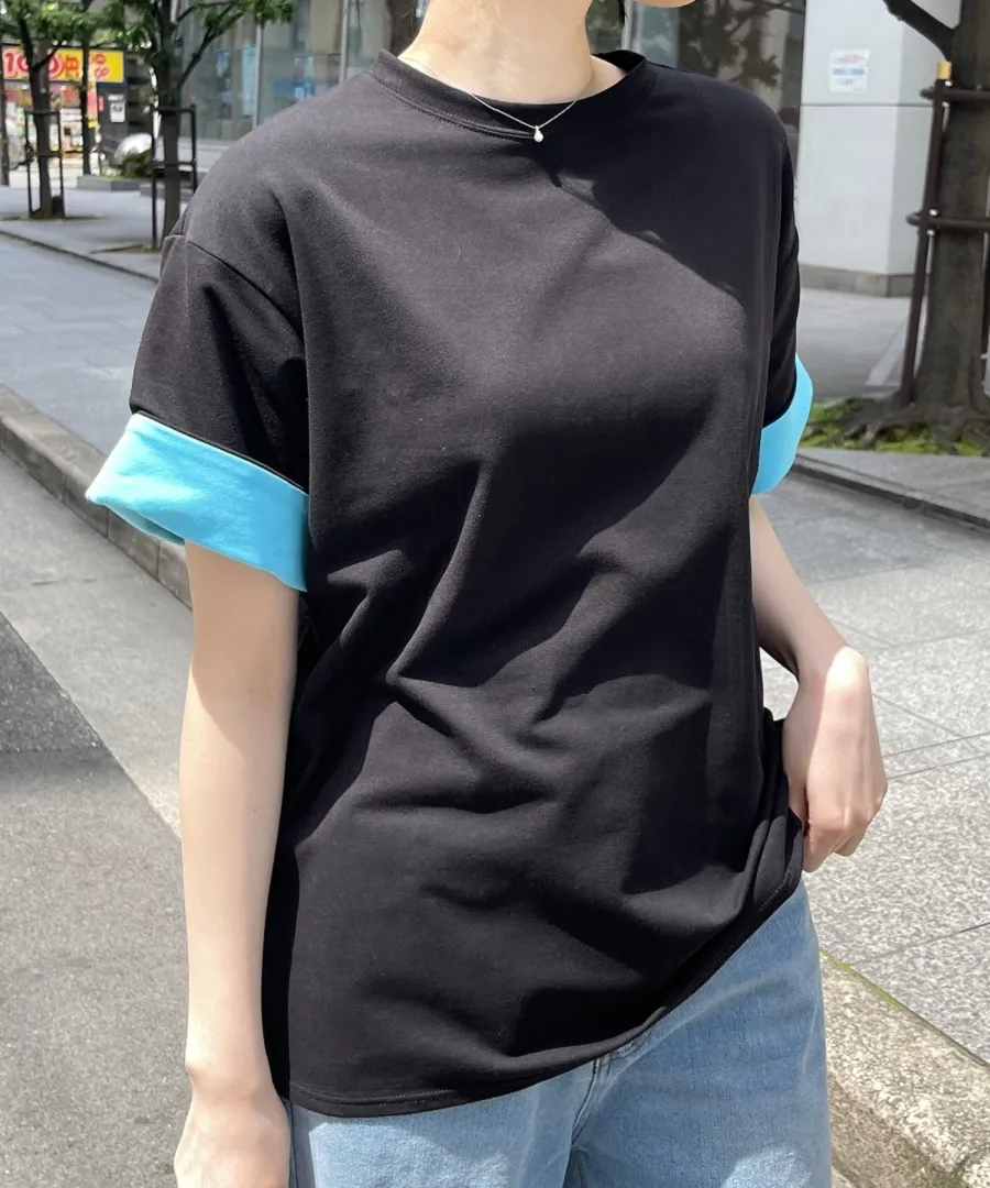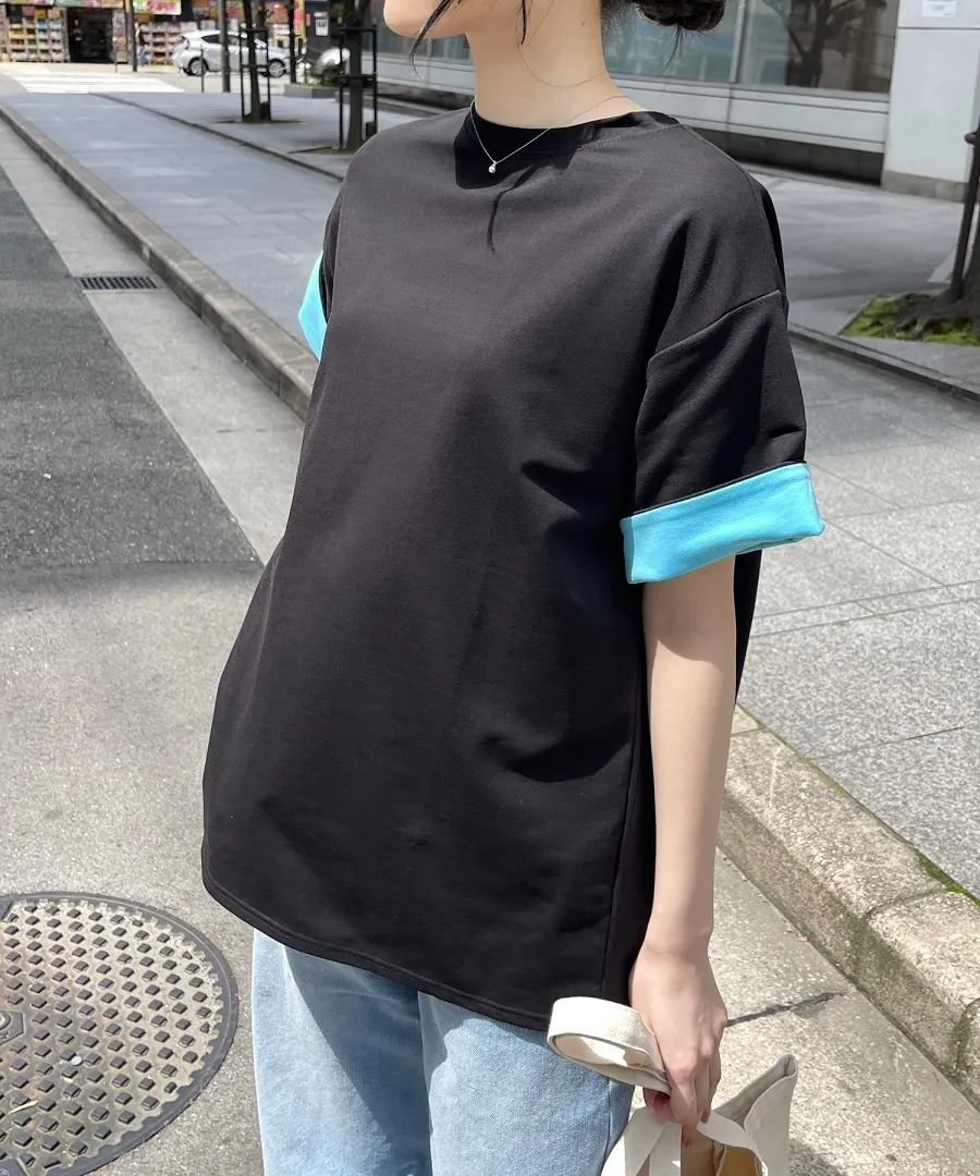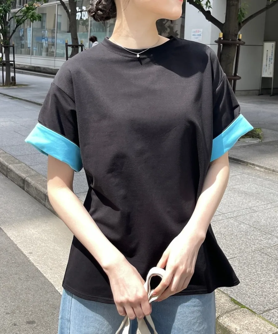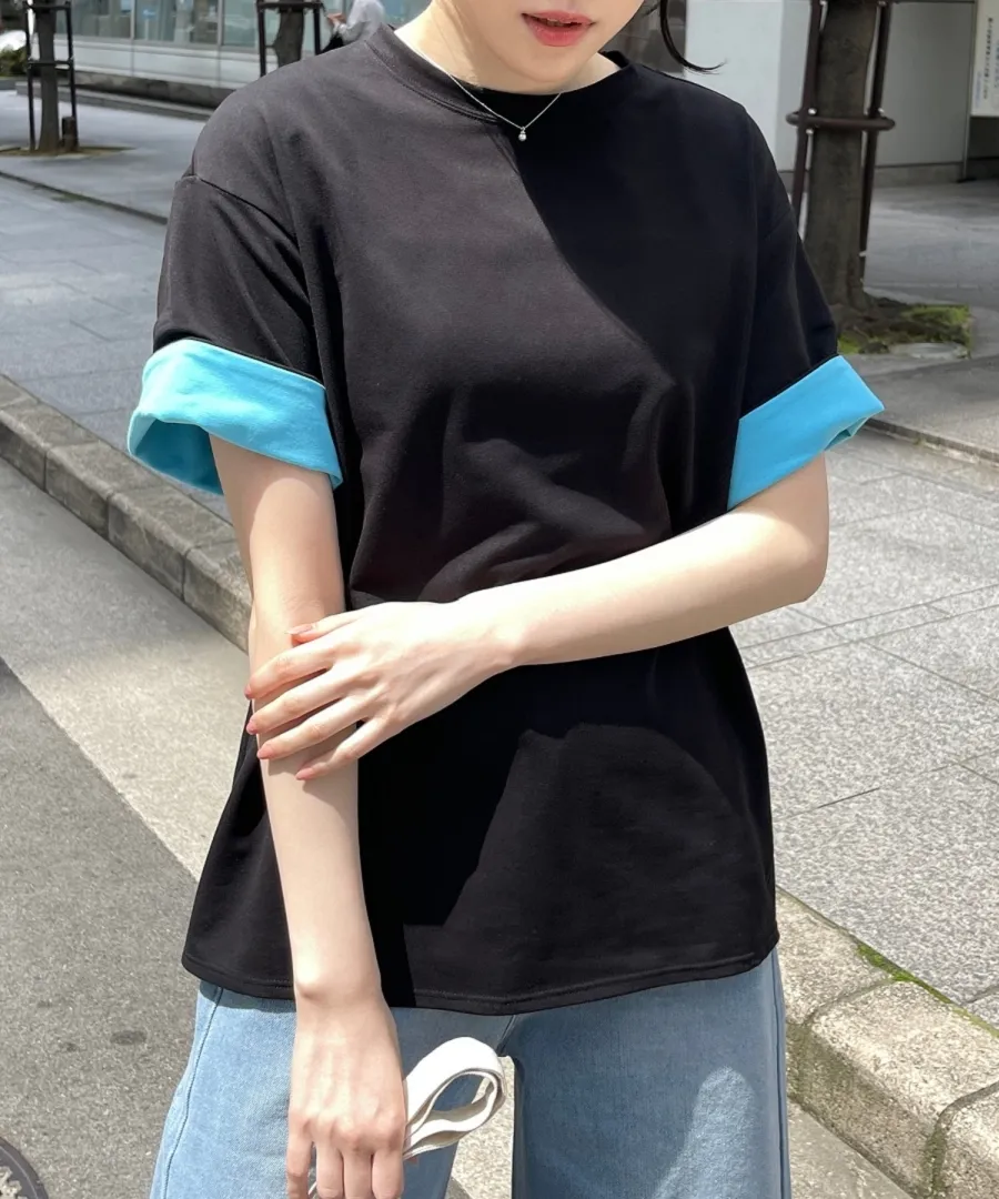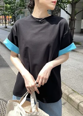 特!袖子反褶配色棉T