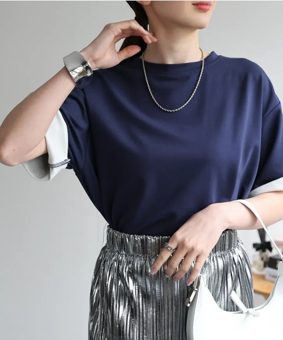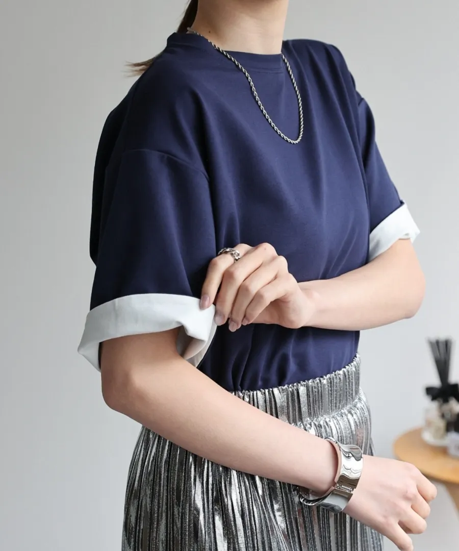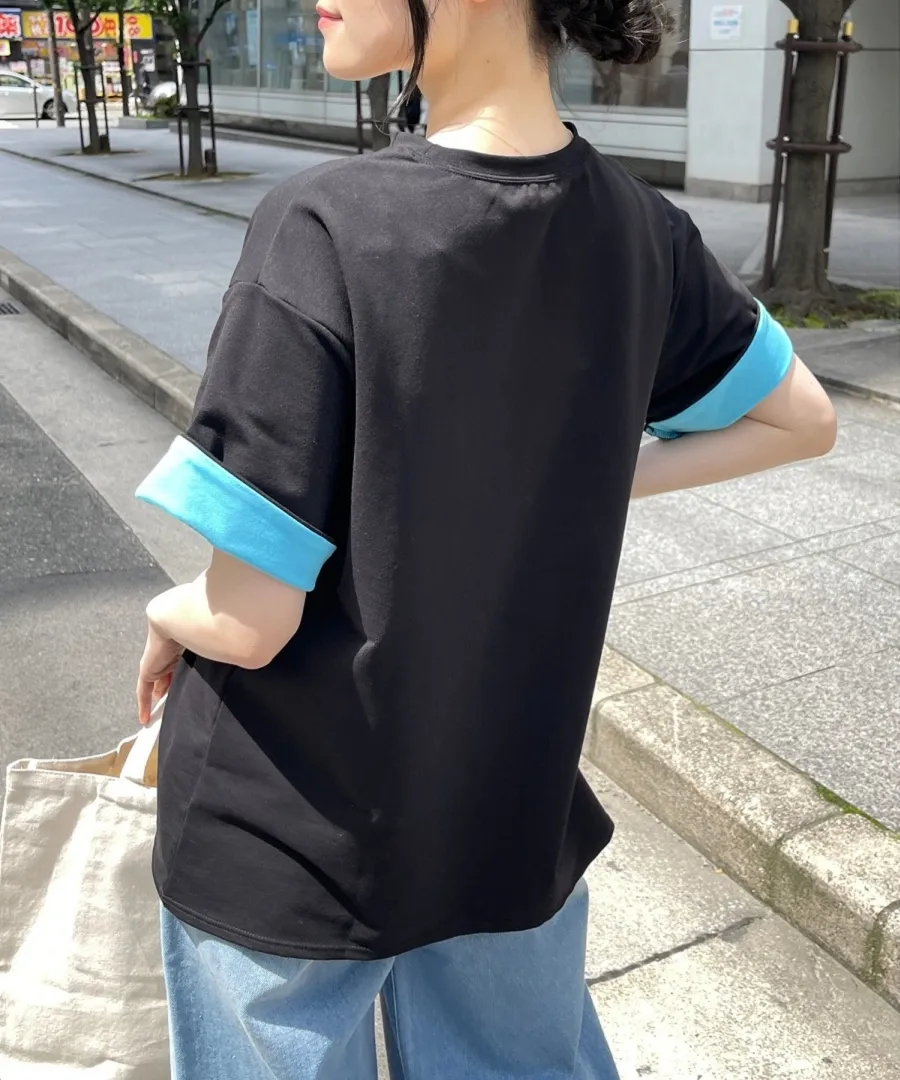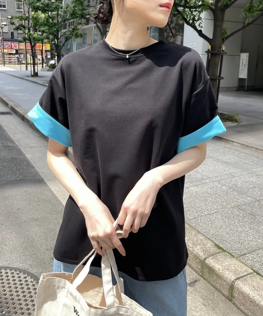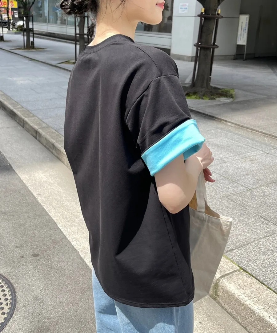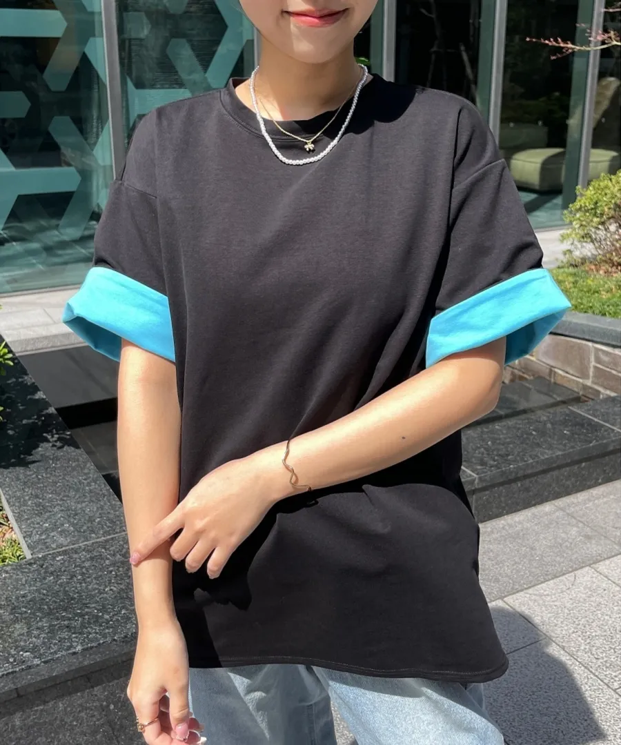 特!袖子反褶配色棉T