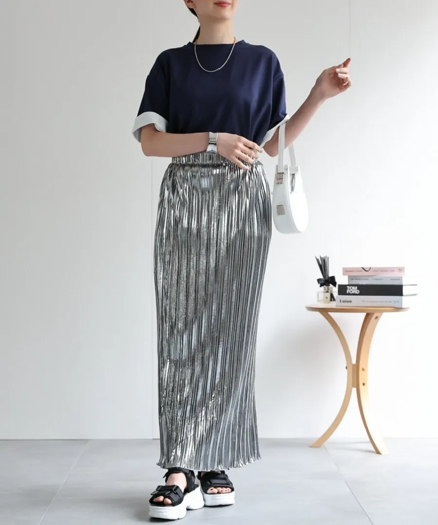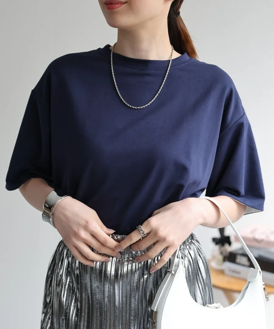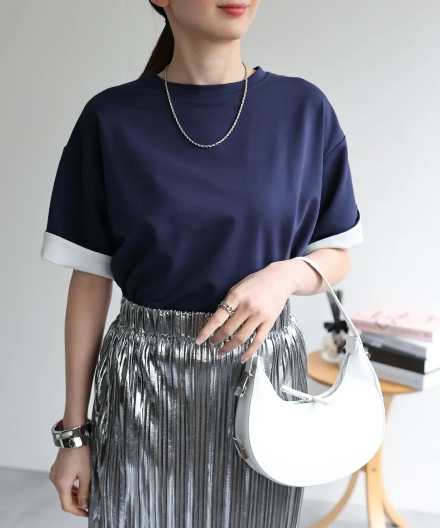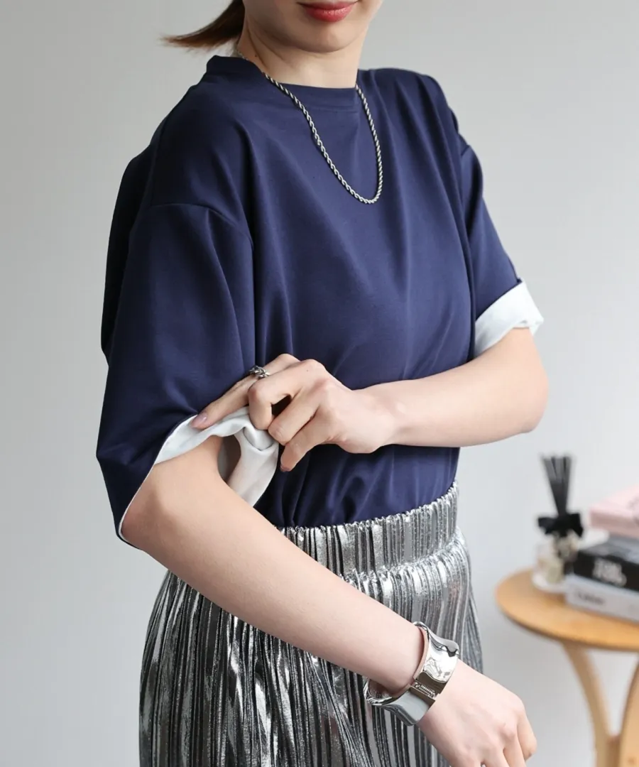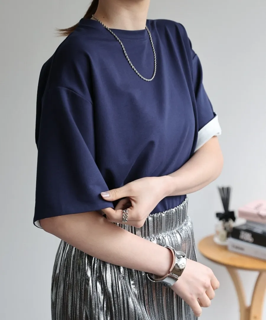 特!袖子反褶配色棉T