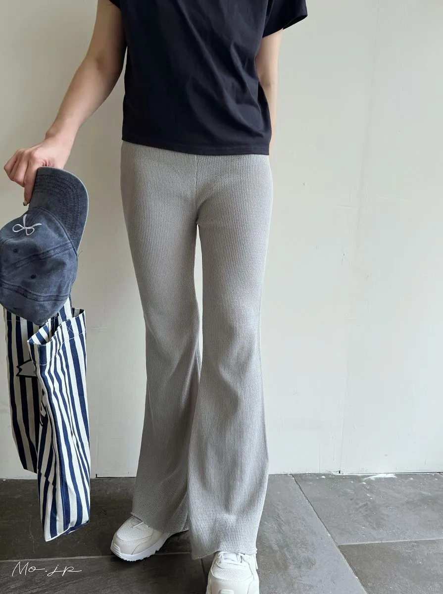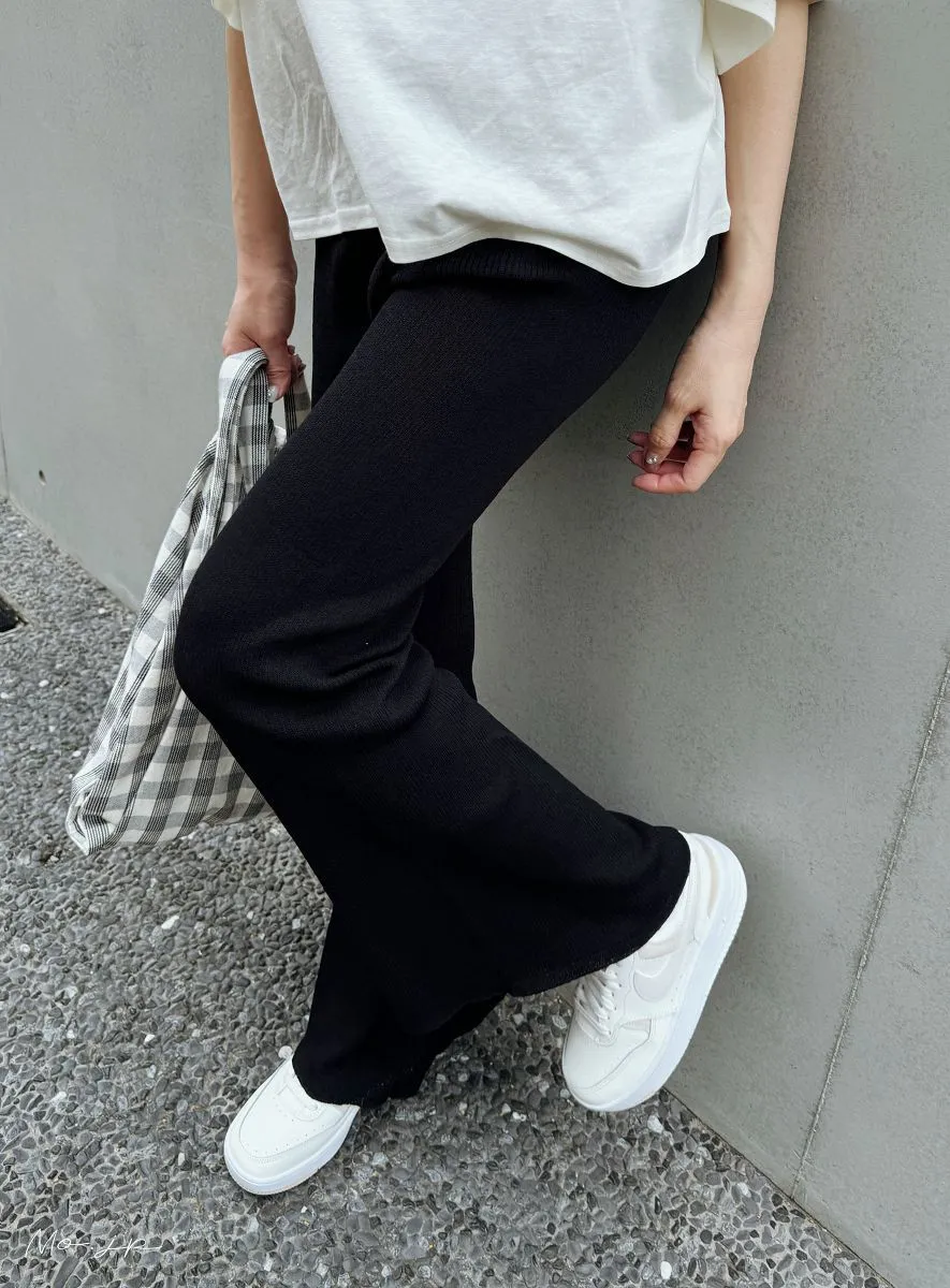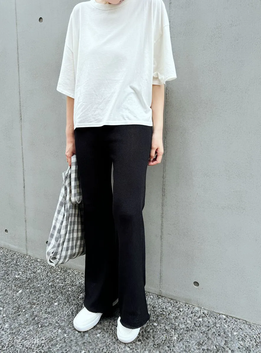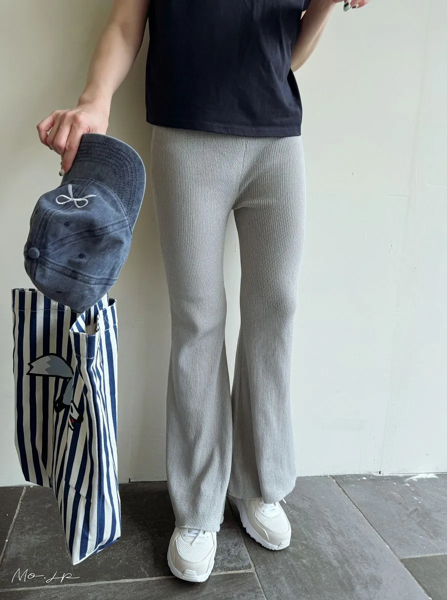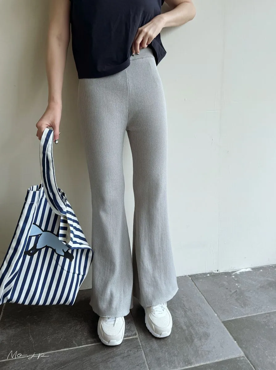 請試試看~夏天完全OK喔~是麻手感的新款喇搭針織褲!!