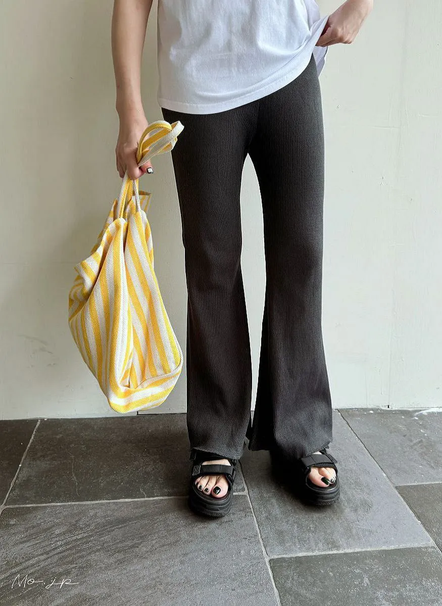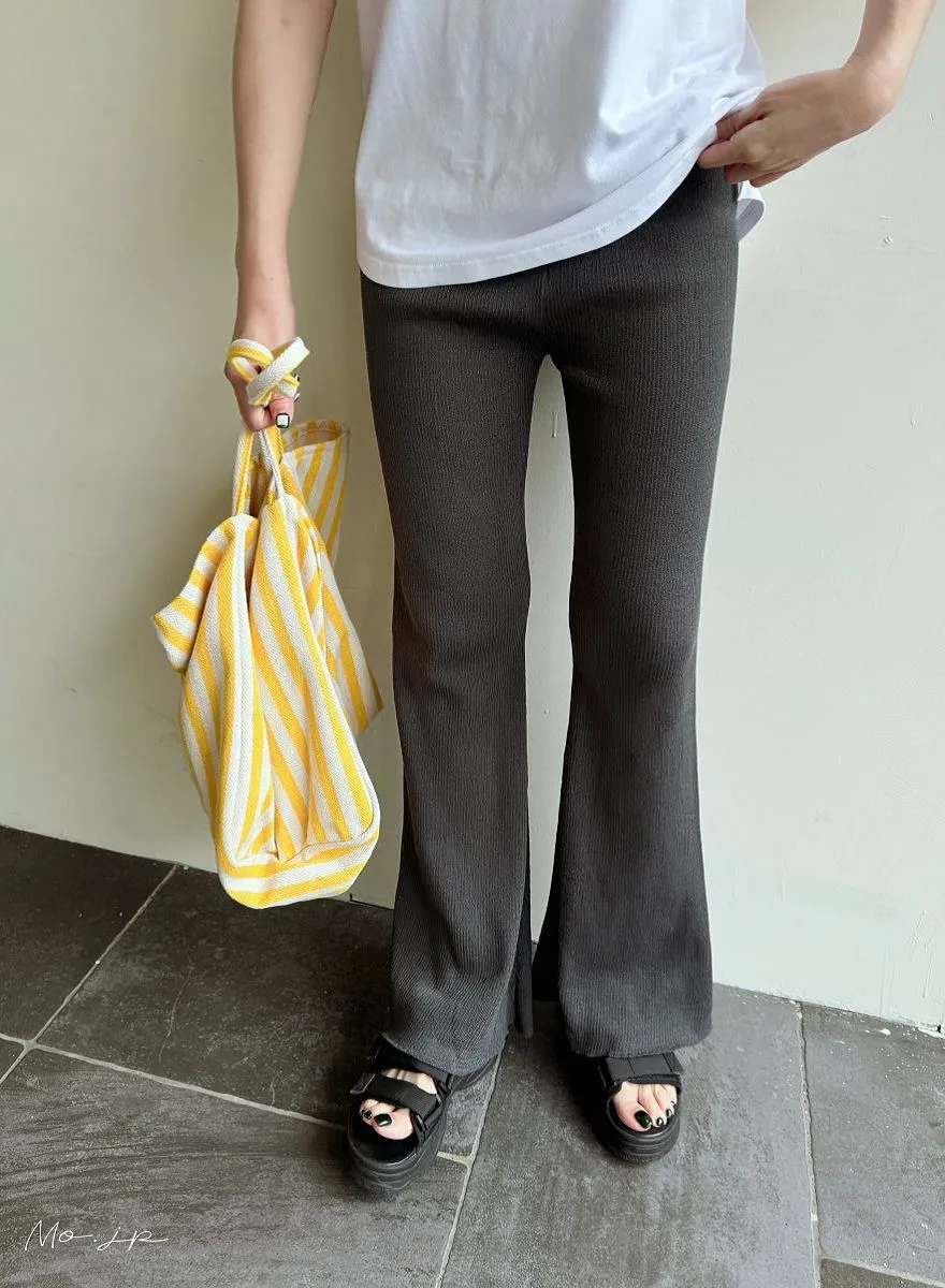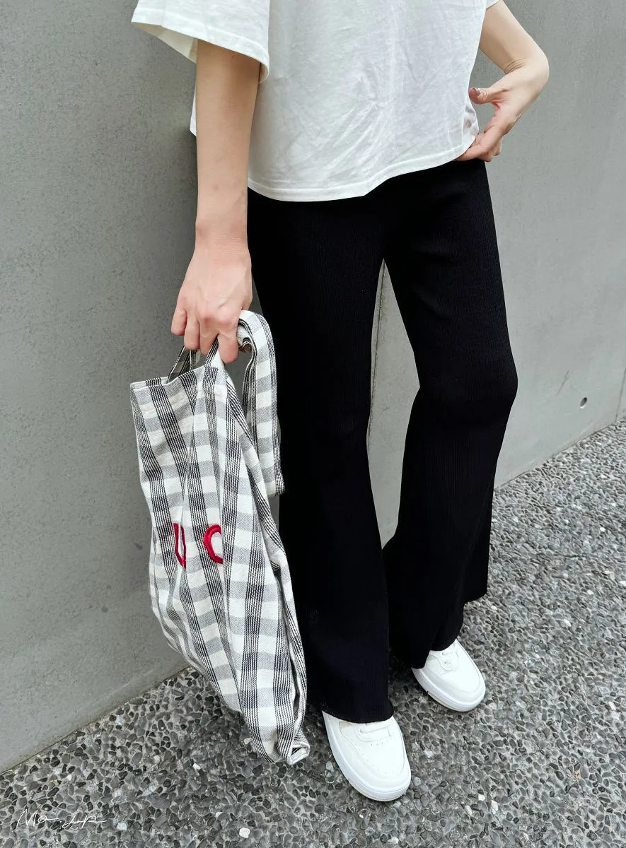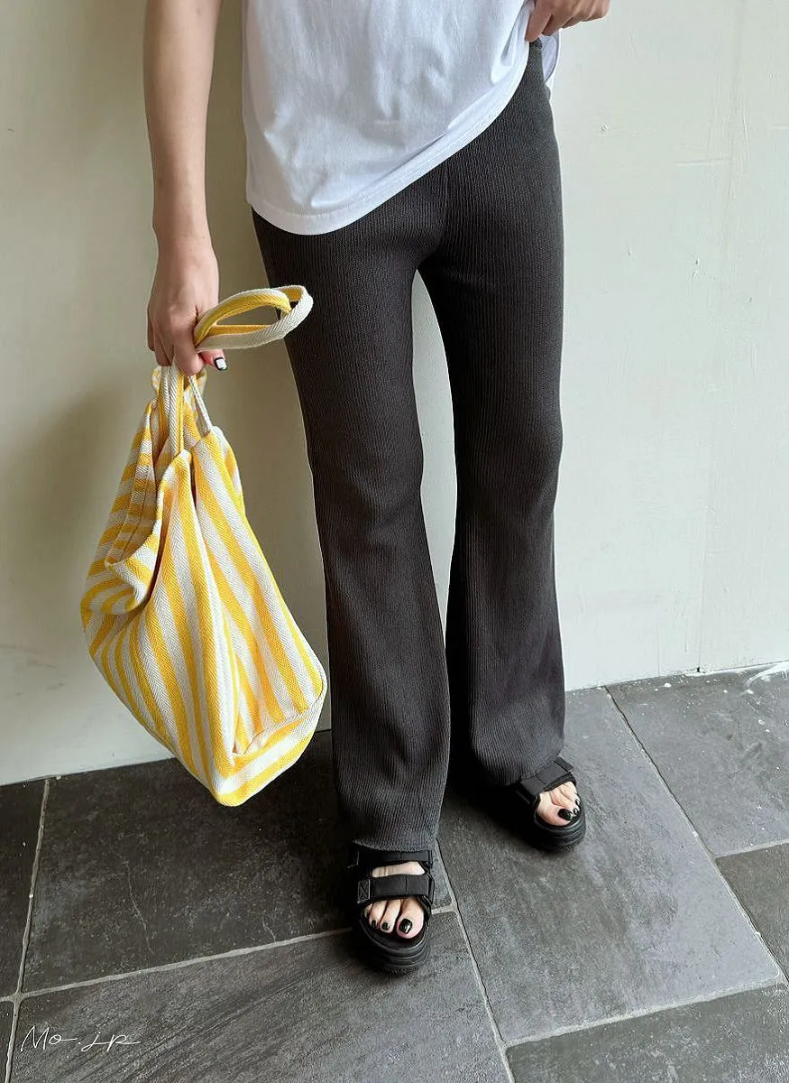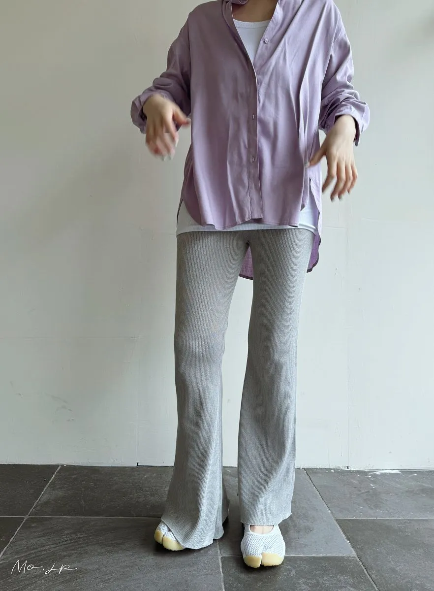請試試看~夏天完全OK喔~是麻手感的新款喇搭針織褲!!