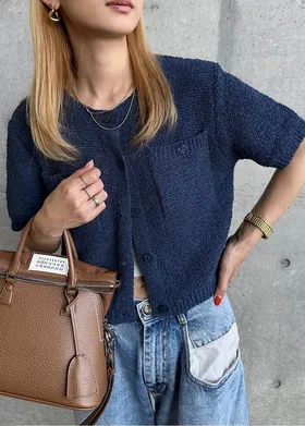 適合成人的復古又可愛的東西。夏日口袋針織開襟衫