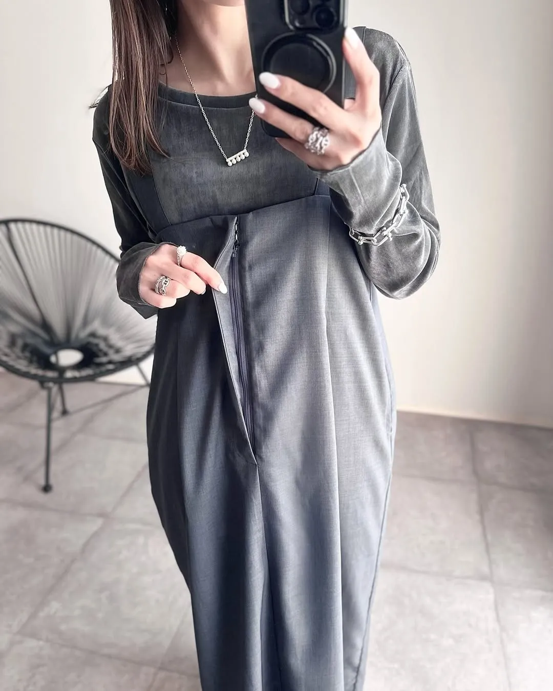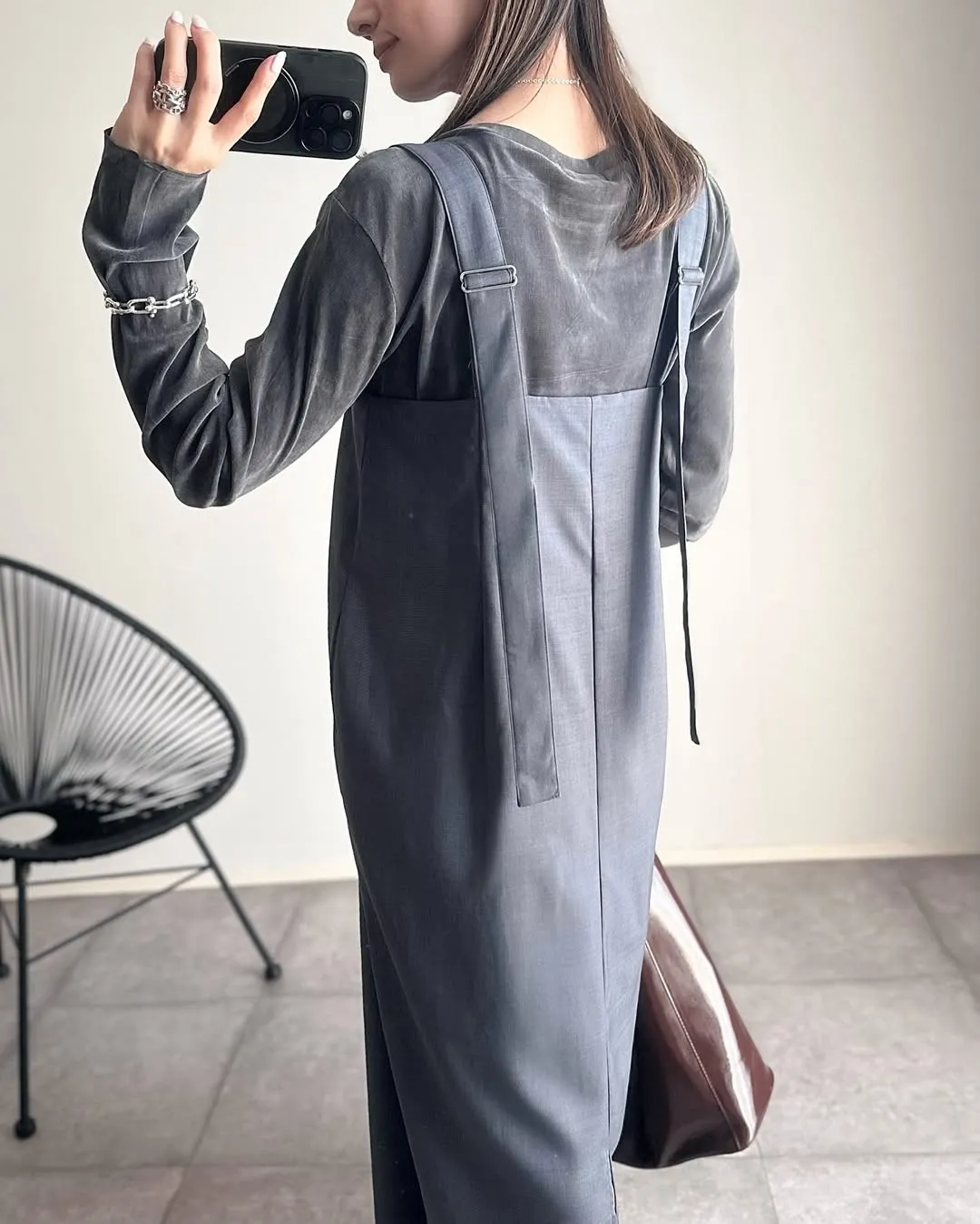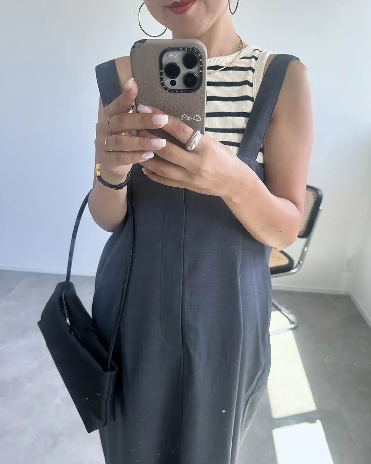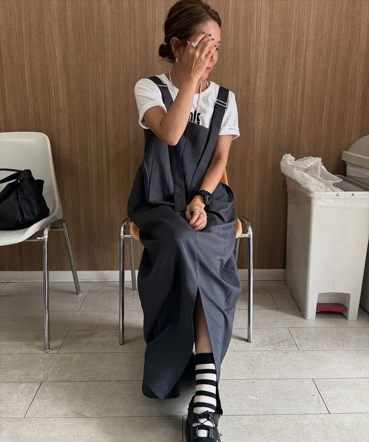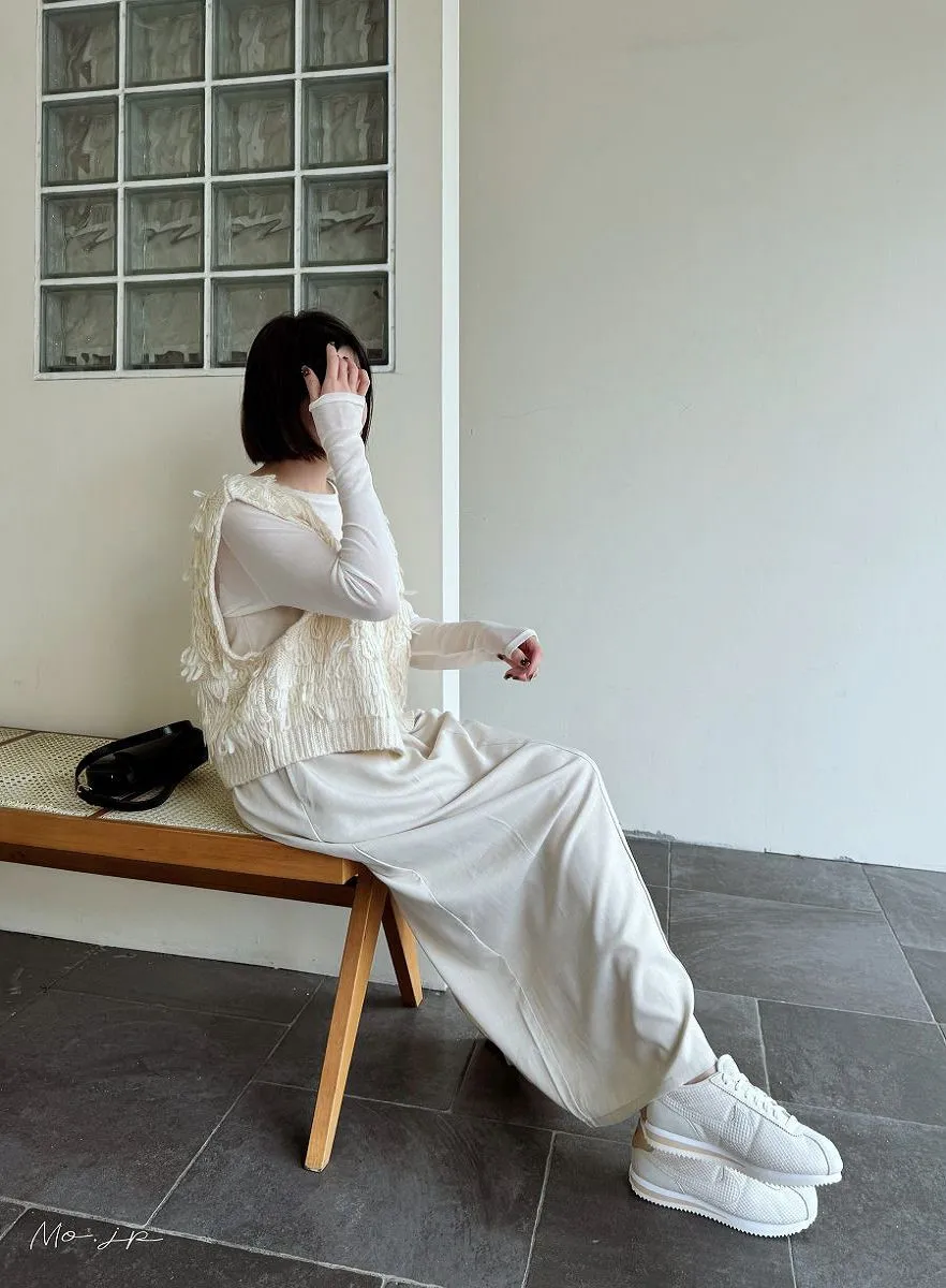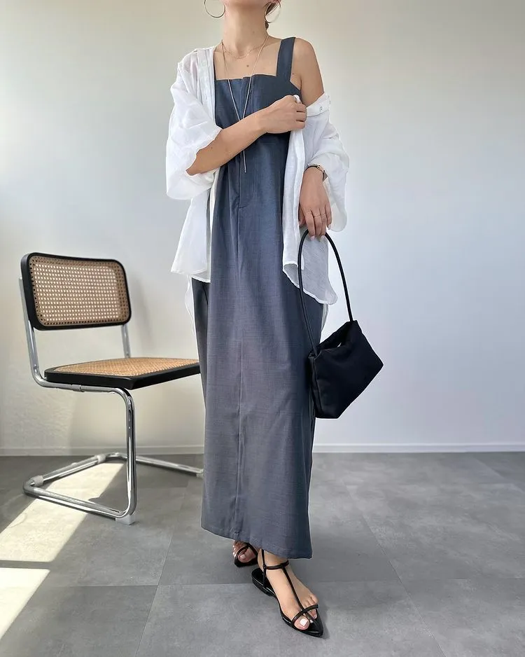 版型是很修身的直版~搭配薄薄的透感單品也很OK