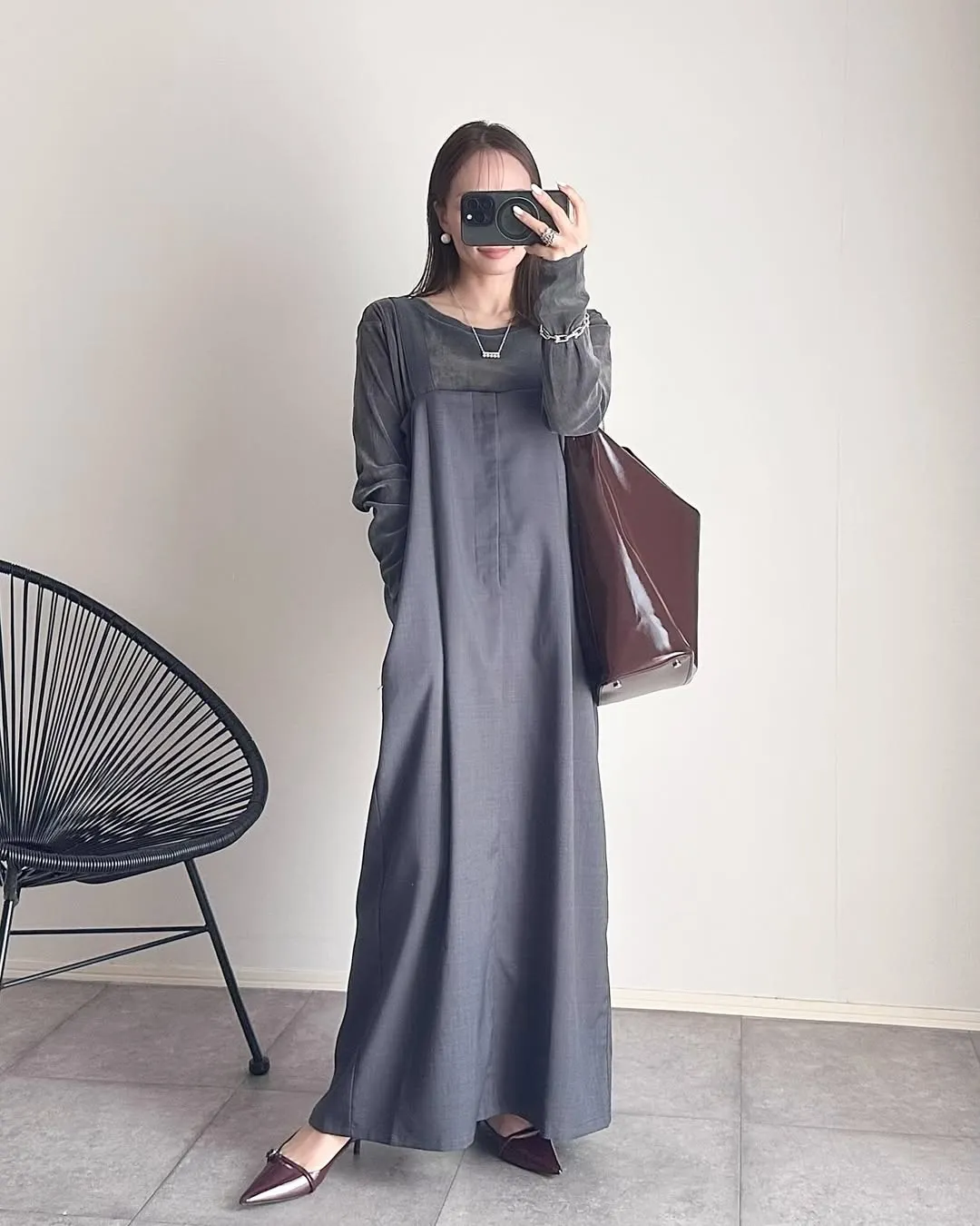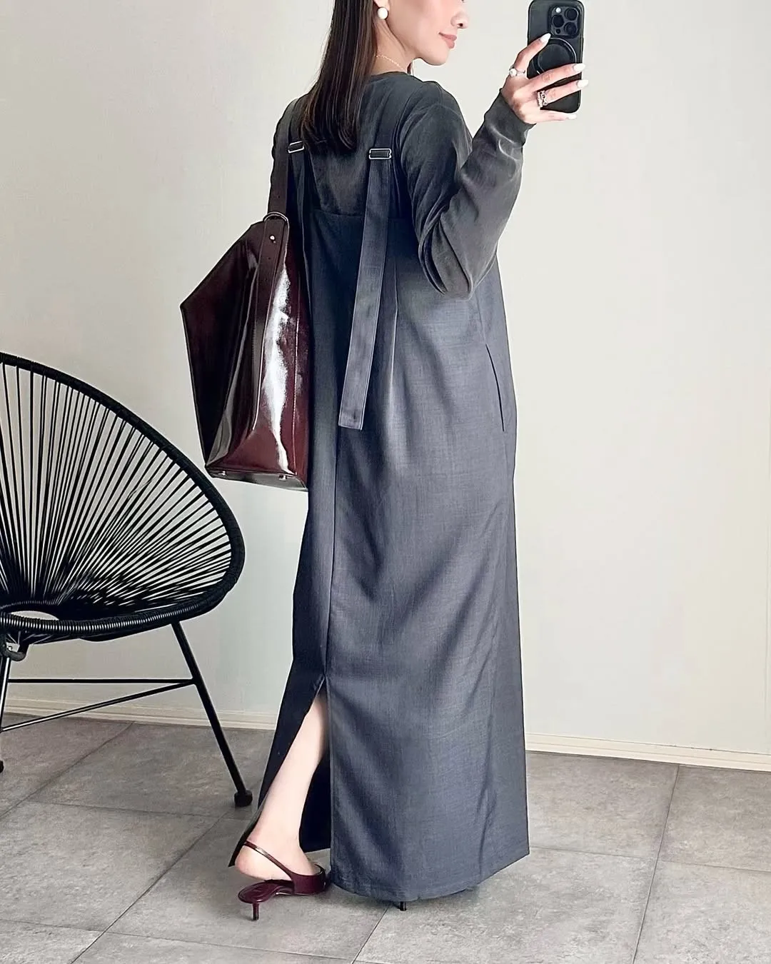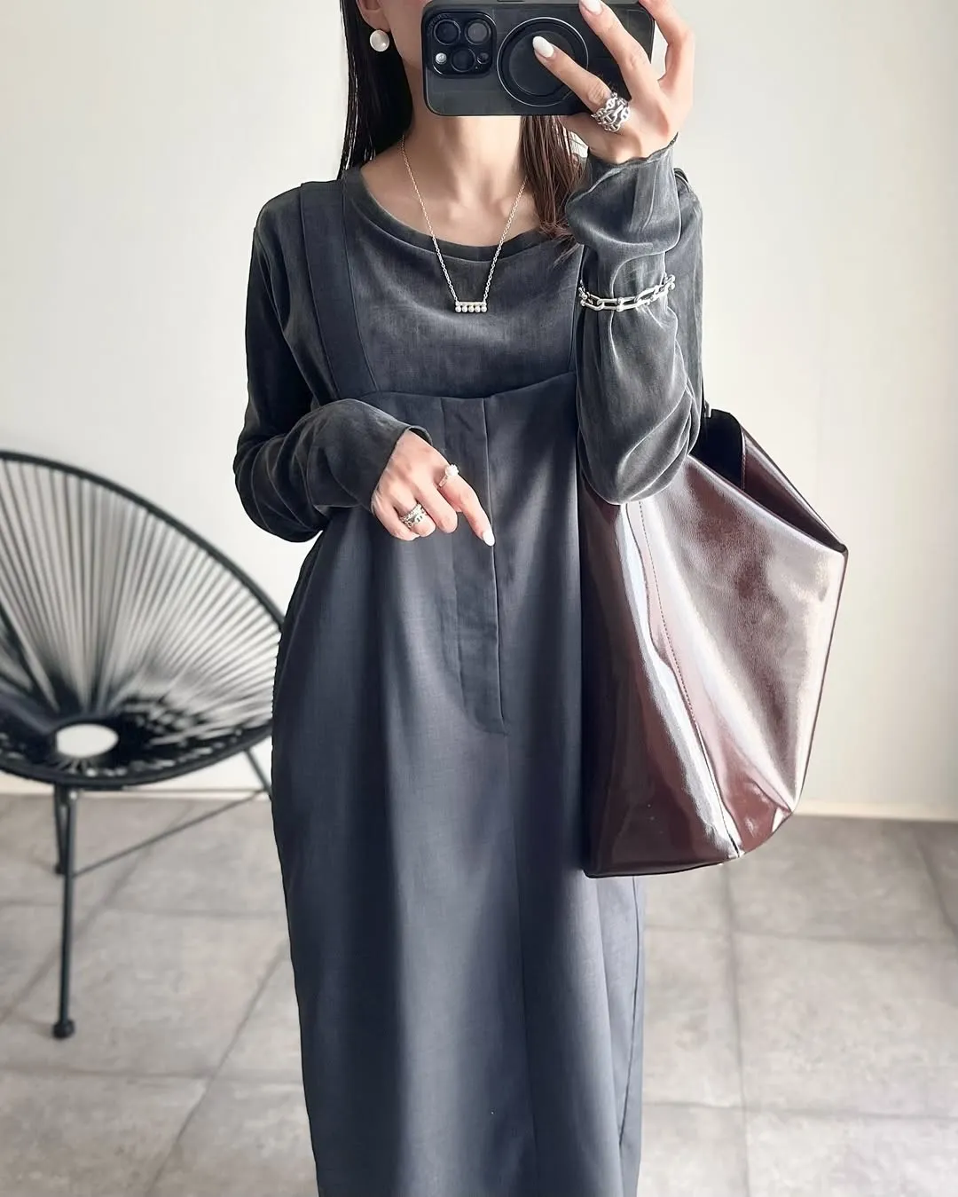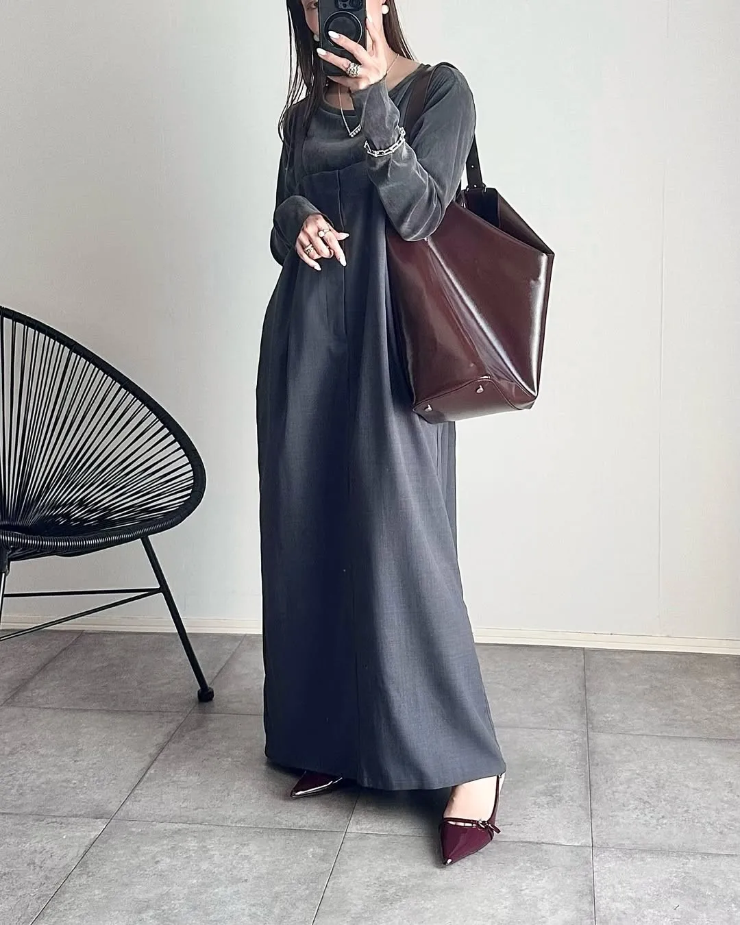 版型是很修身的直版~搭配薄薄的透感單品也很OK