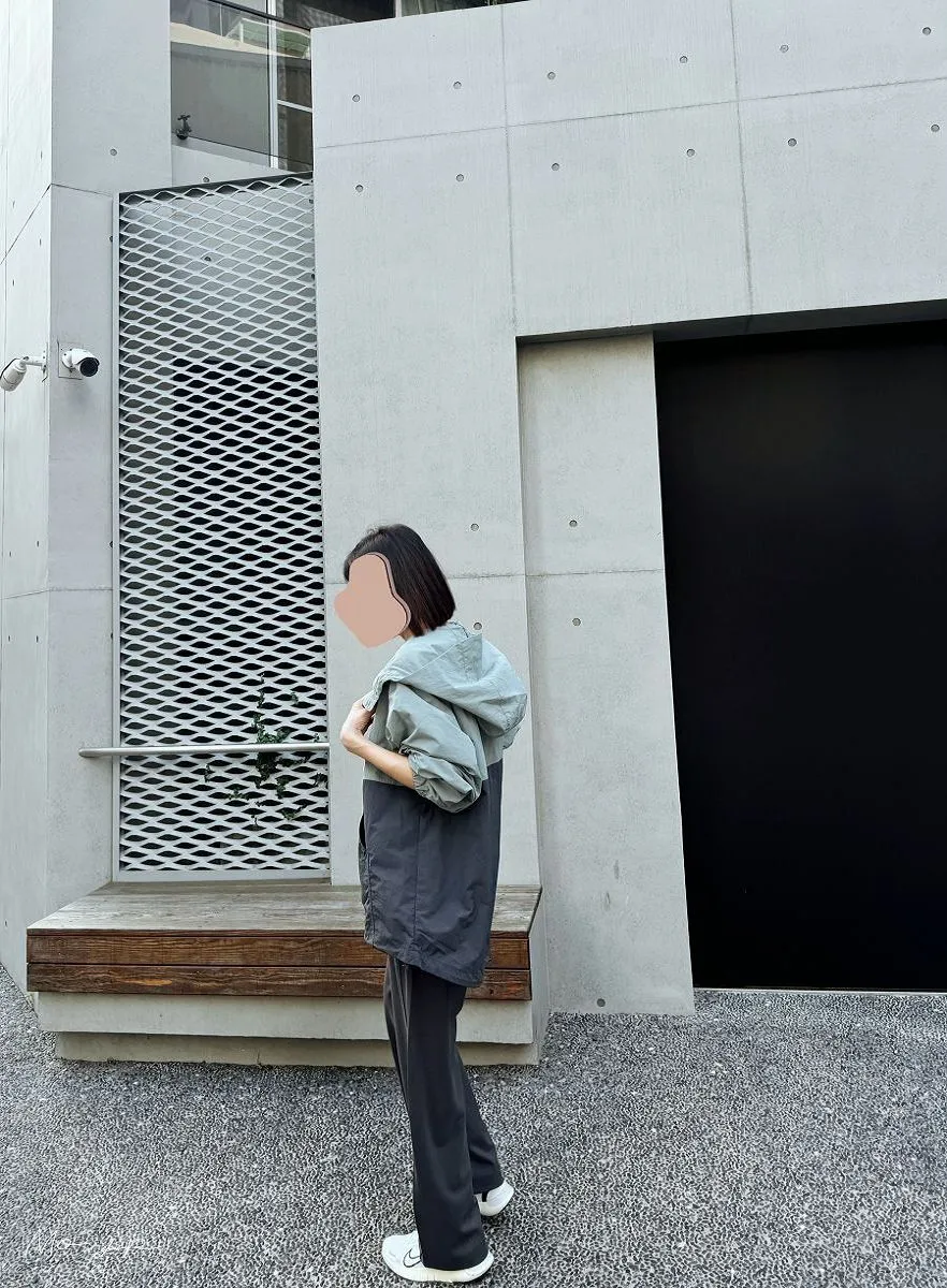 整件是那種QQ的厚實面料~版型自然的挺度很美!!因為剪裁的關係~微微看起來有丸型設計~<真的一點點~>