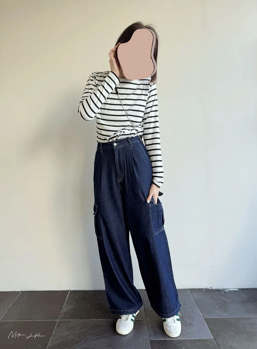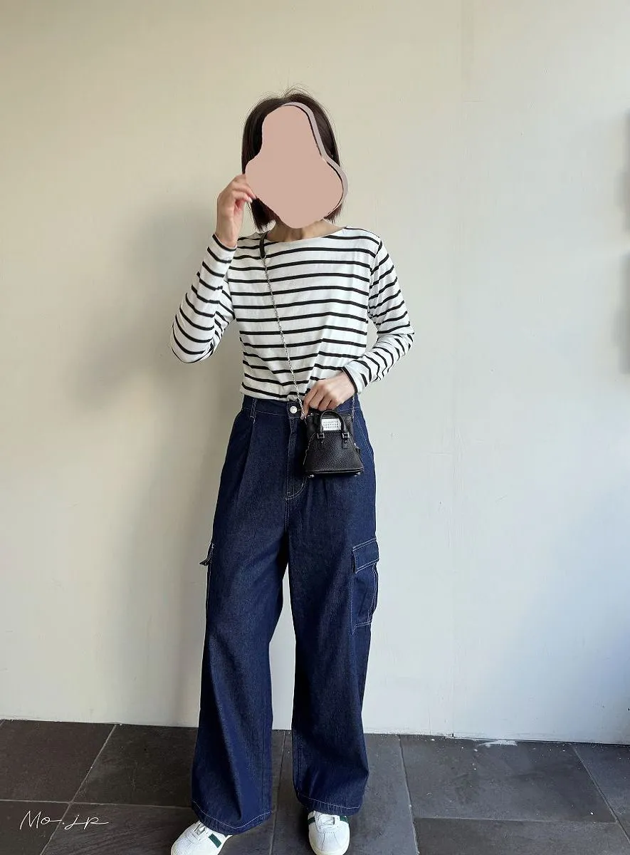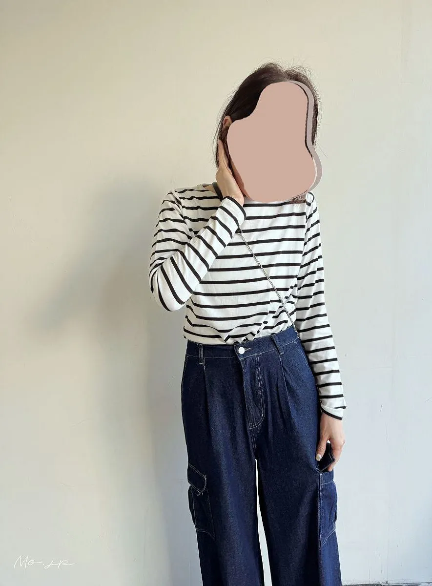 ★<貼心SIZE> 薄款純棉條文長袖TEE★