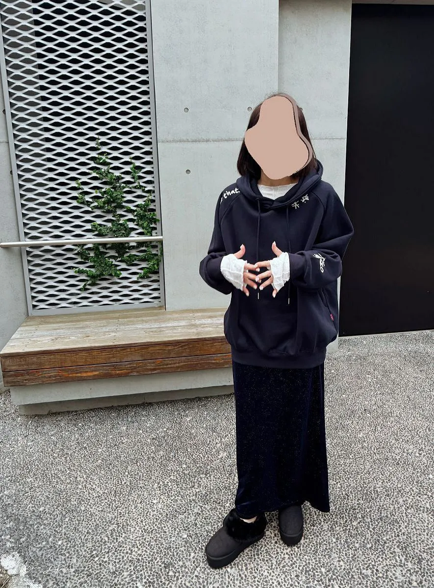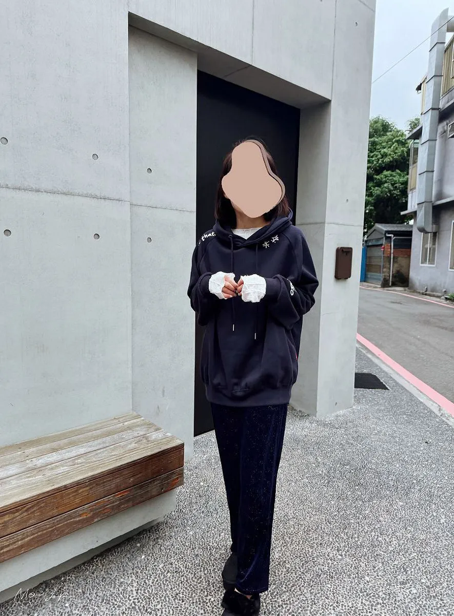 小幫藍色著用M號~寬鬆~長度完全可以蓋住臀部喔~