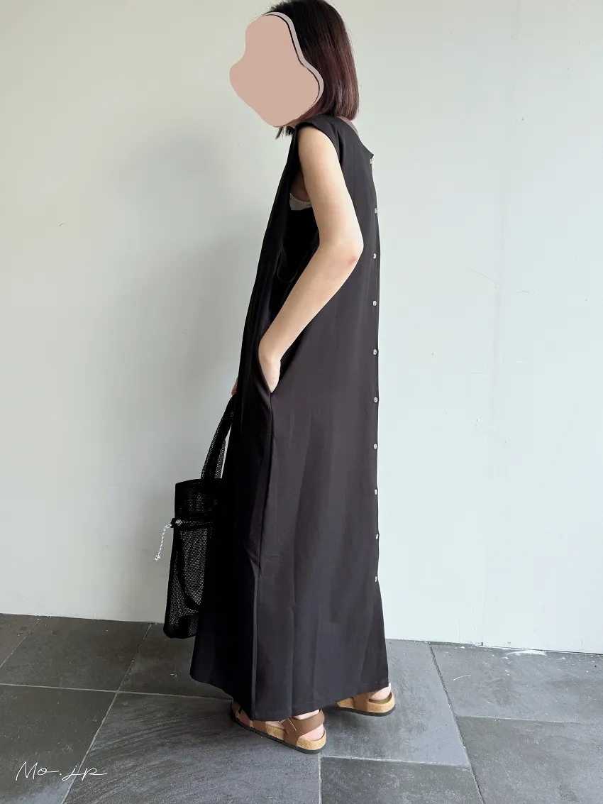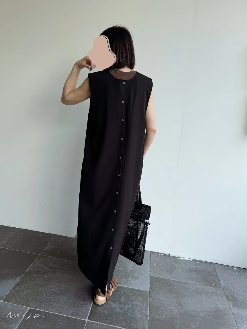 分SIZE~俏皮寬鬆後排釦落地西裝背心洋裝