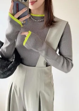 袖口領口配色滾邊點綴