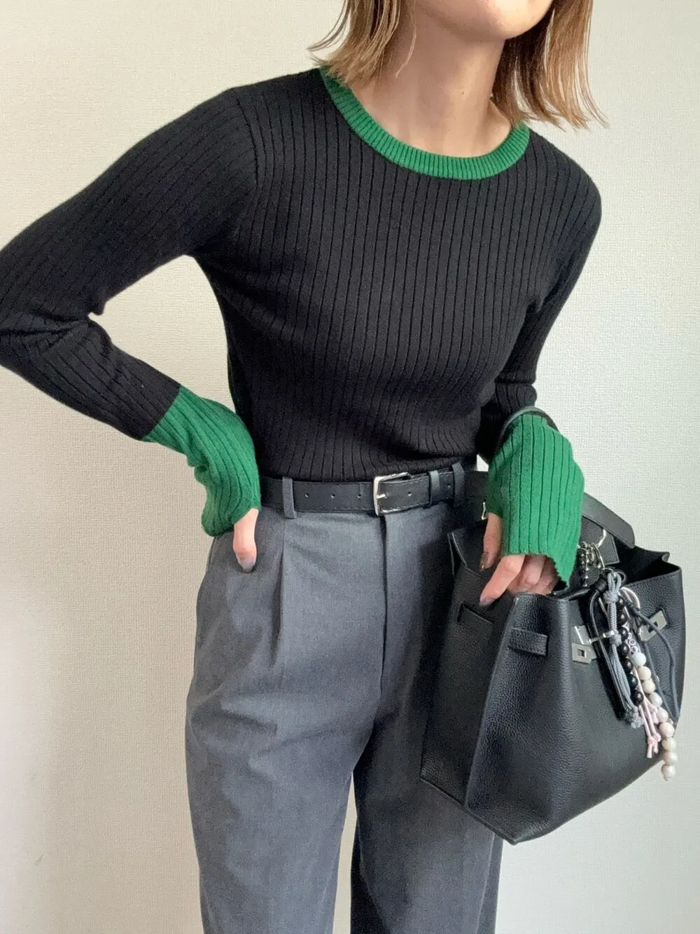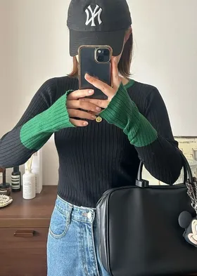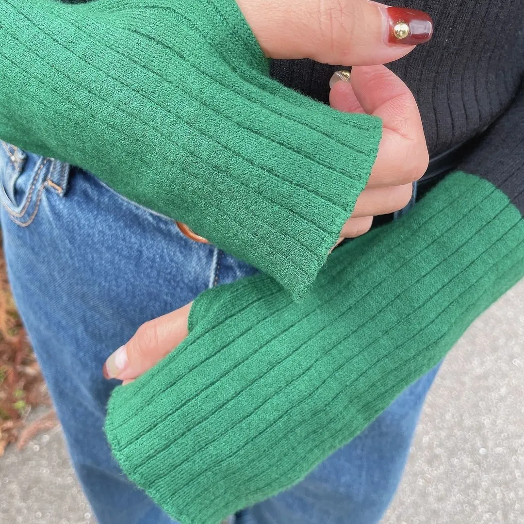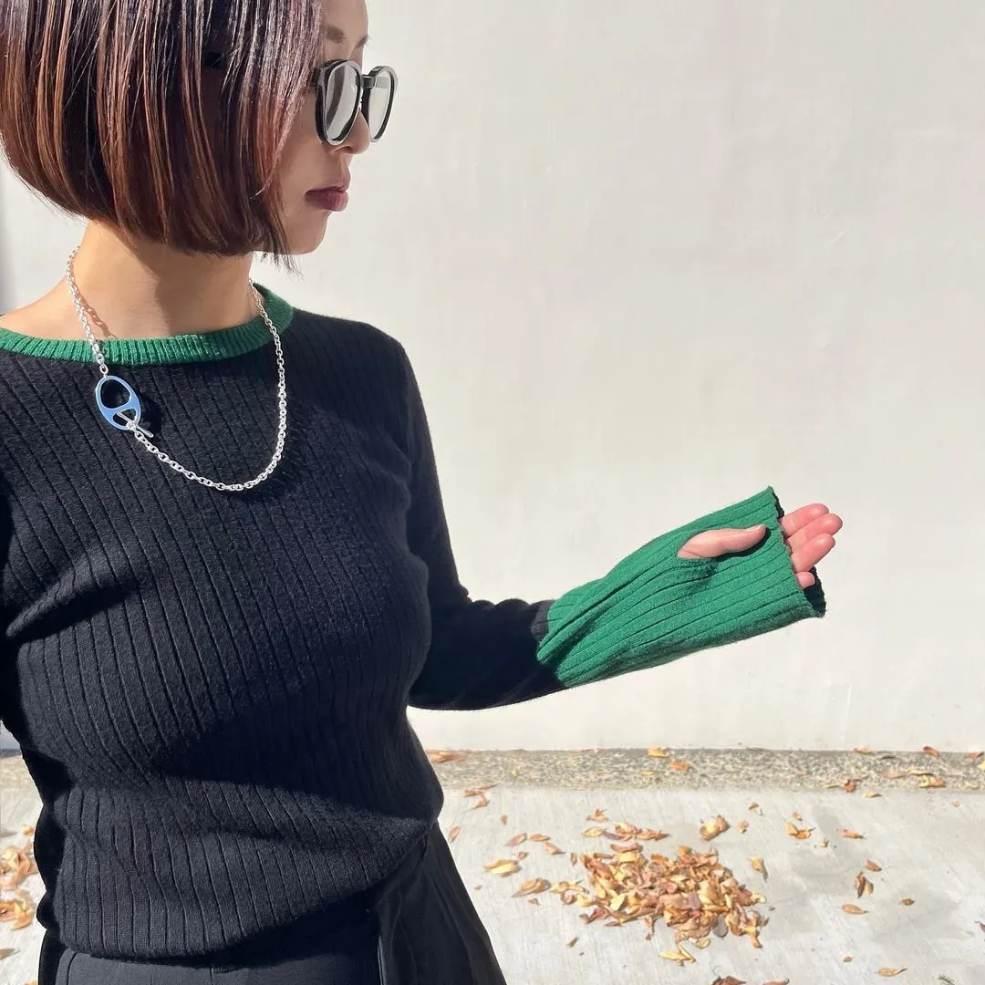 專櫃新款~價格很可愛耶!!可以入手2件冬天搭配這款是手袖款~<小幫自己冬天很喜歡這種款式~保暖又有造型>同面料還有另外一個款式喔<賣場有上架~是滾邊款>觸感超級好超好搭舒服的凹凸彈性羅文針織衫彈性無敵好~舒適肌觸感這一款有一點小變化袖口領口配色滾邊點綴領子是一體成形瓶口小包領袖子加長延伸指穴袖套 ▲IVORY▲LIGHT-GRAY▲BLACK▲NAVY