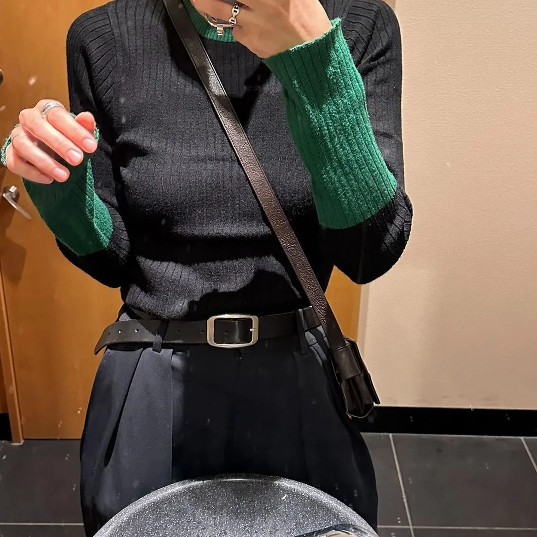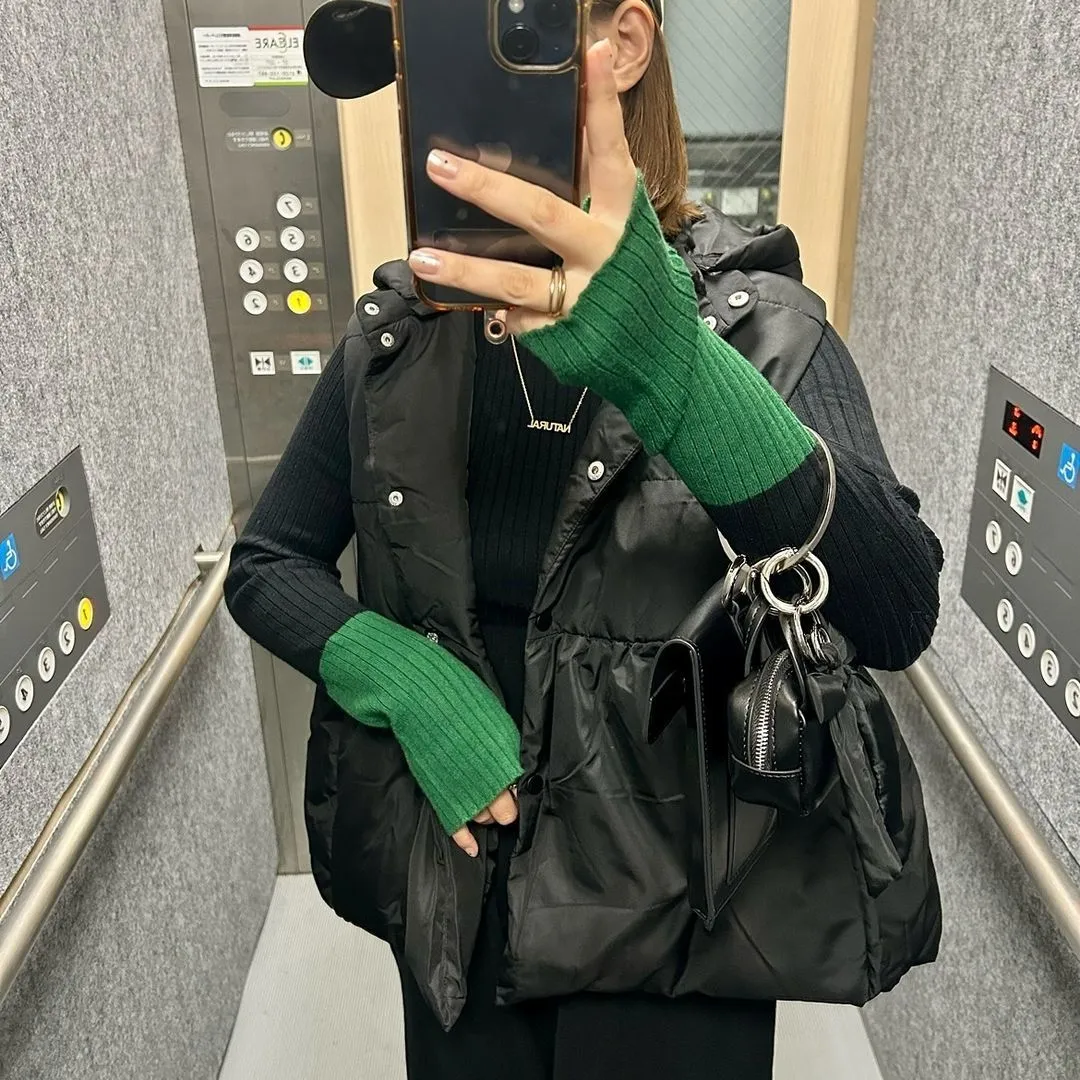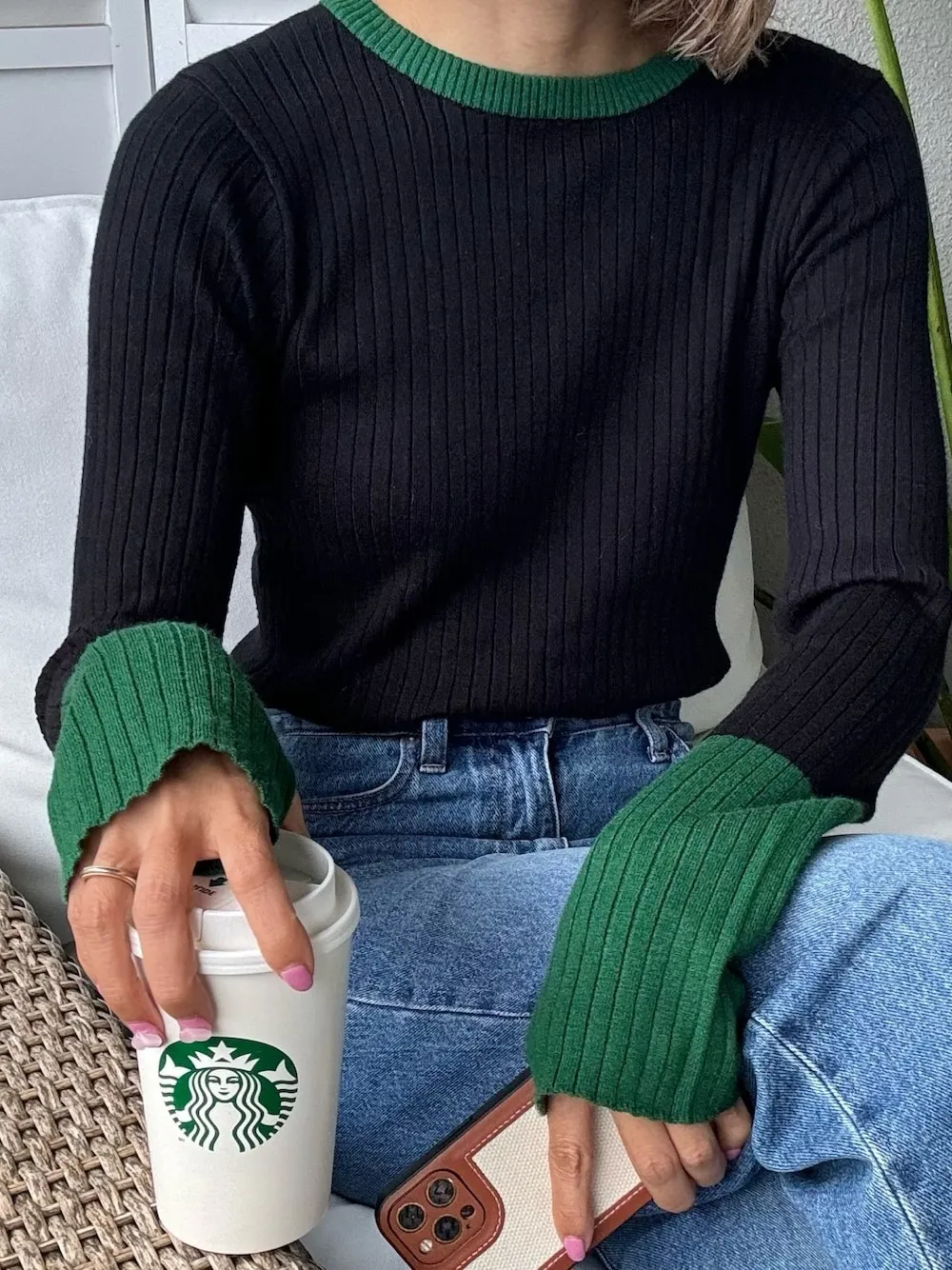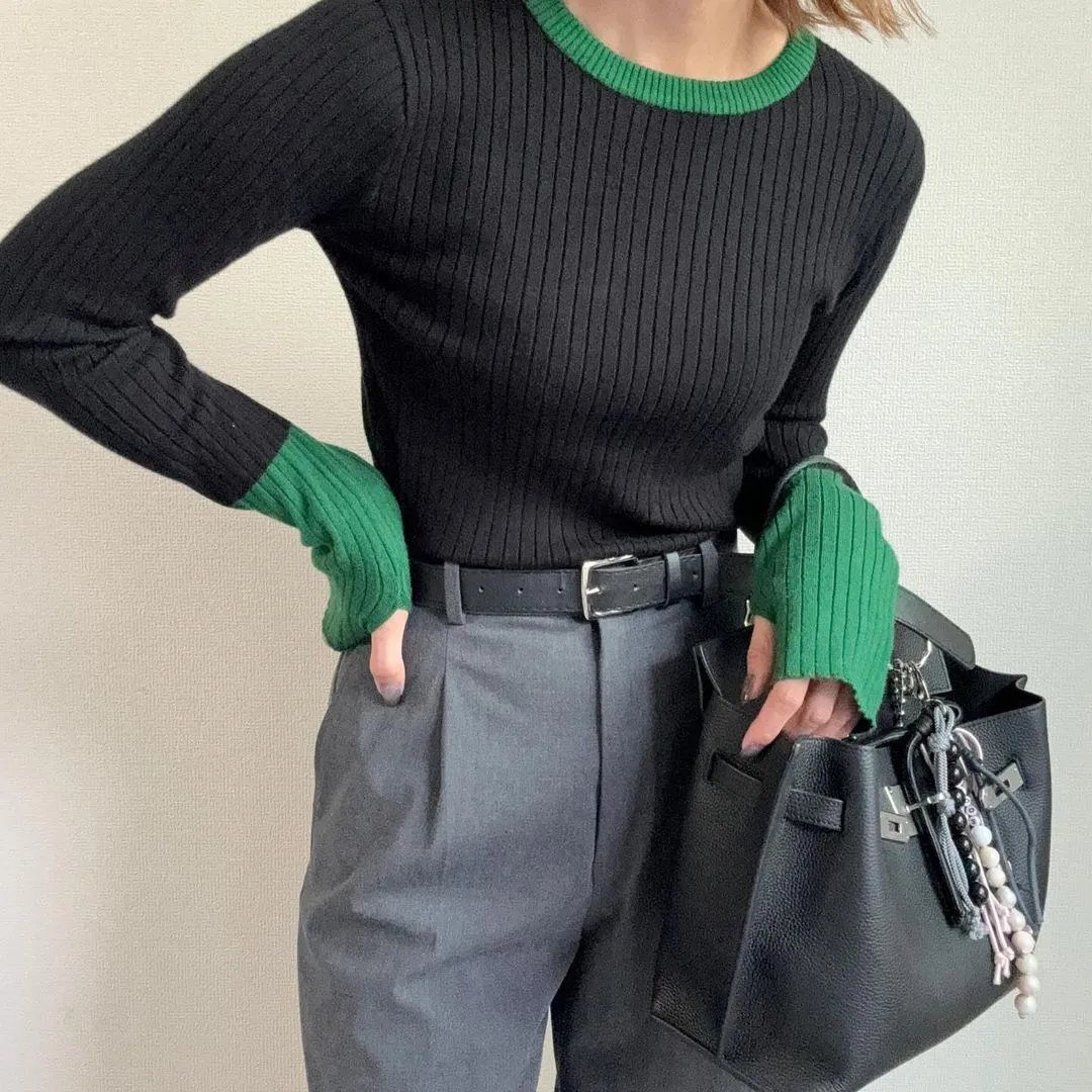 專櫃新款~價格很可愛耶!!可以入手2件冬天搭配這款是手袖款~<小幫自己冬天很喜歡這種款式~保暖又有造型>同面料還有另外一個款式喔<賣場有上架~是滾邊款>觸感超級好超好搭舒服的凹凸彈性羅文針織衫彈性無敵好~舒適肌觸感這一款有一點小變化袖口領口配色滾邊點綴領子是一體成形瓶口小包領袖子加長延伸指穴袖套 ▲IVORY▲LIGHT-GRAY▲BLACK▲NAVY