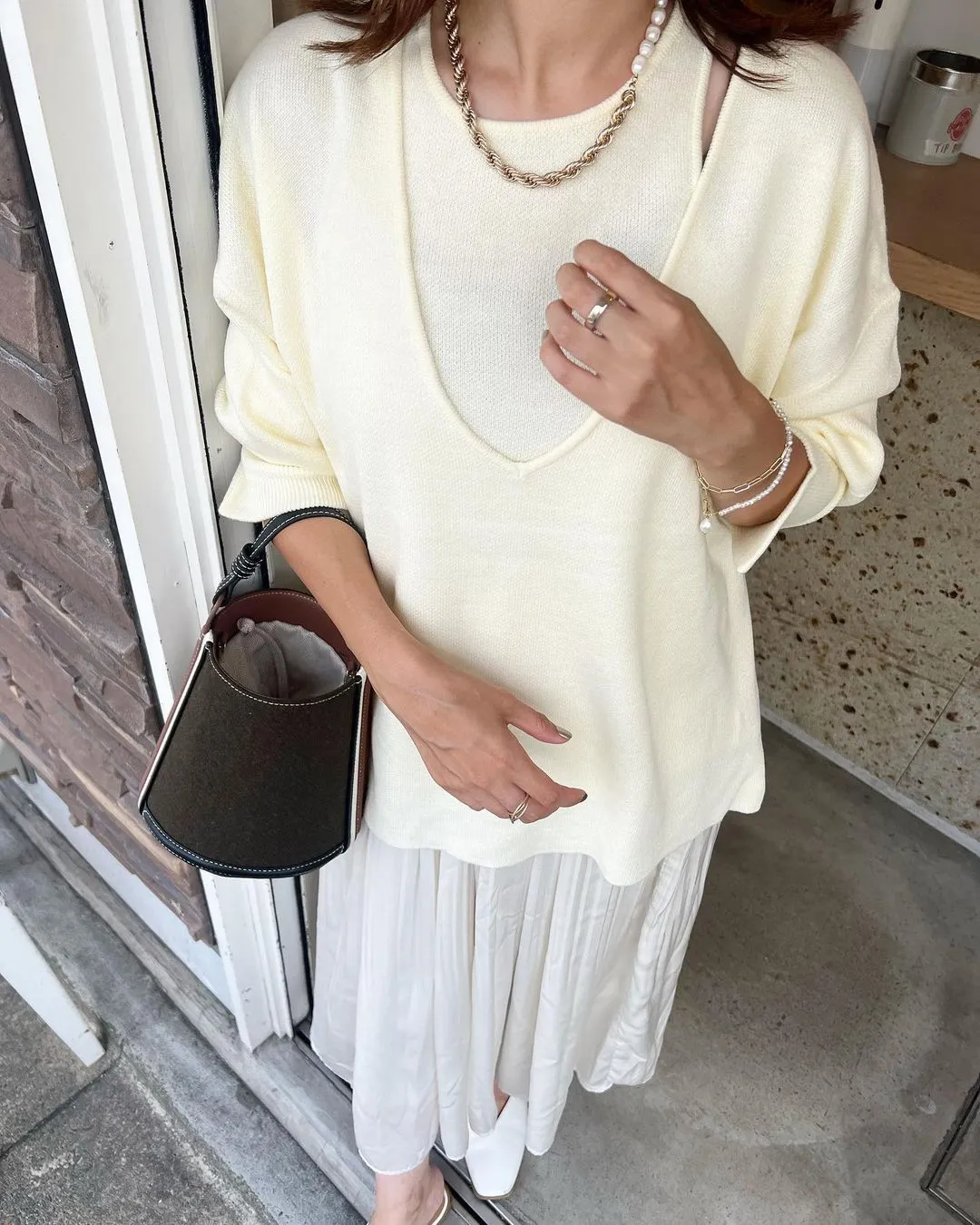 這是一款百搭單品,可以分層穿著,也可以單獨搭配。