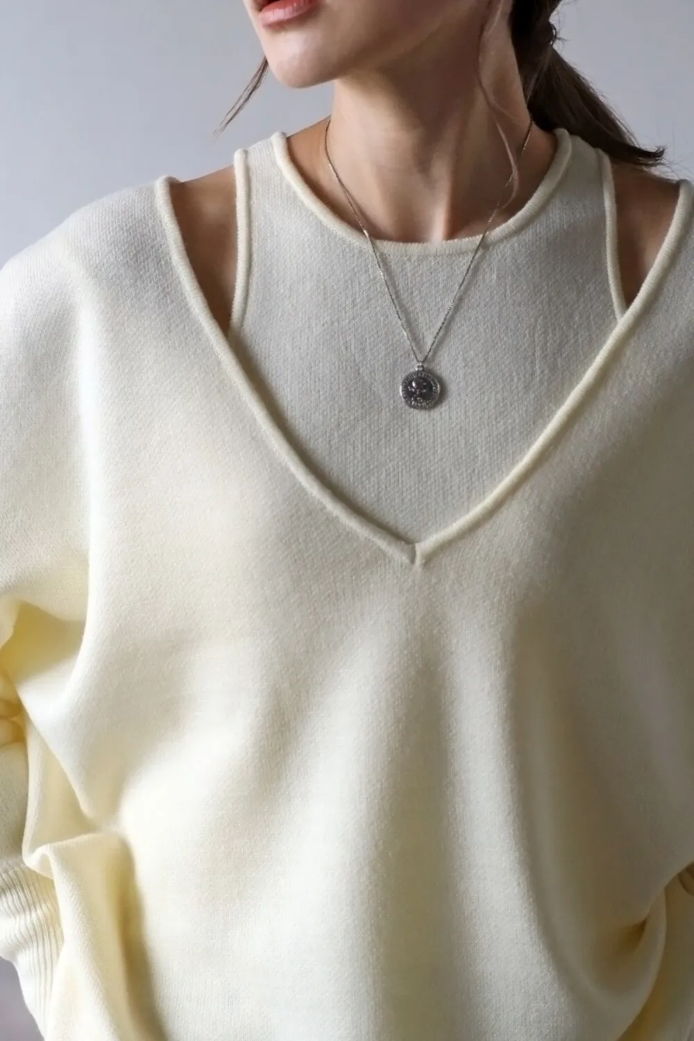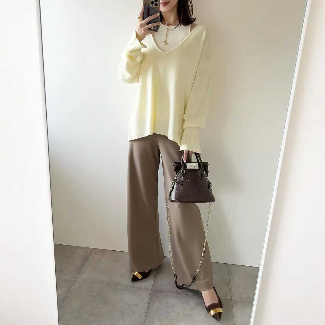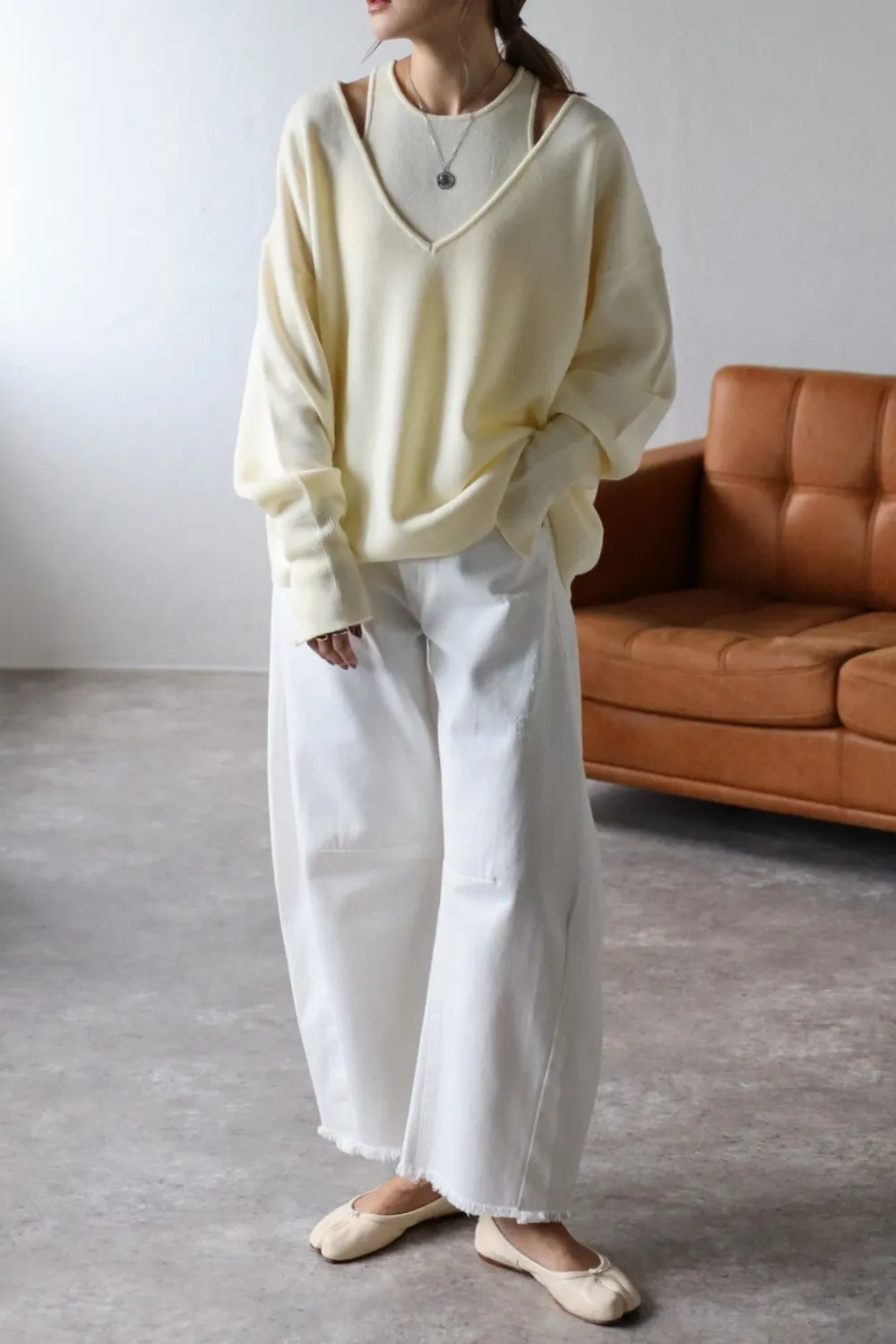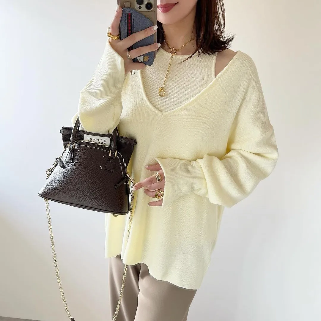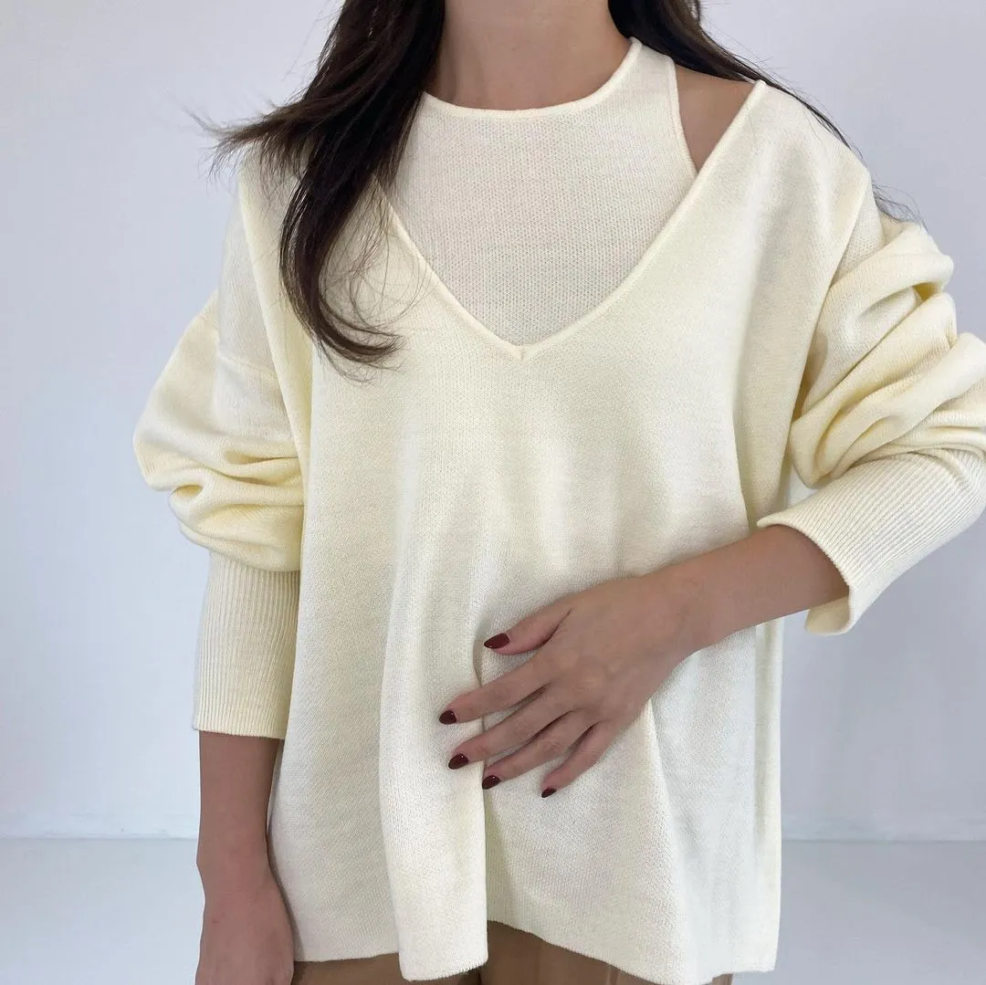 SET,包括寬鬆成人針織背心 + V 領套頭衫