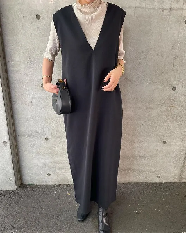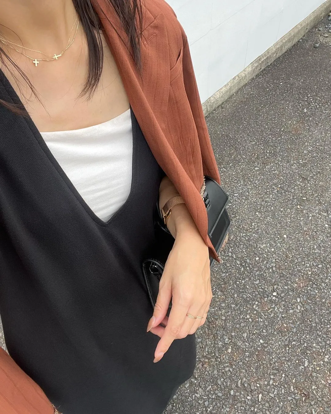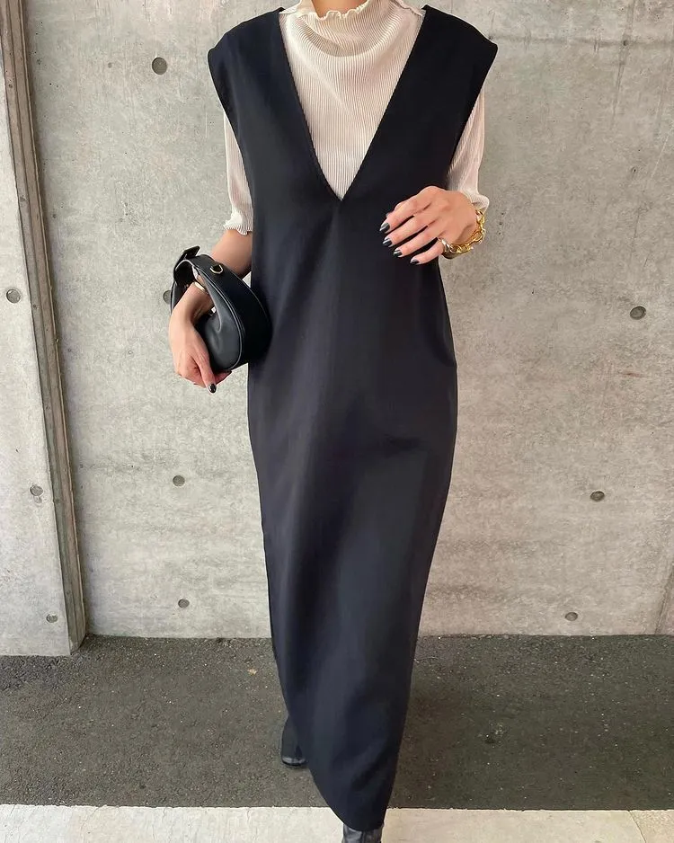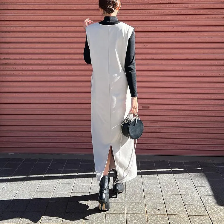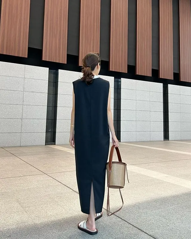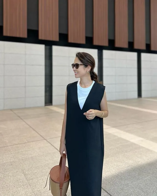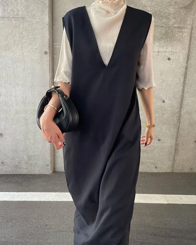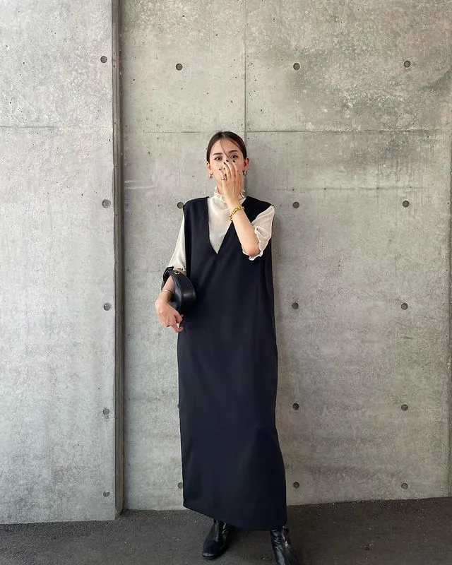 不太挑身形俐落的大V領剪裁還有後開衩設計