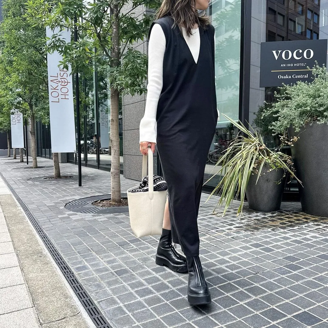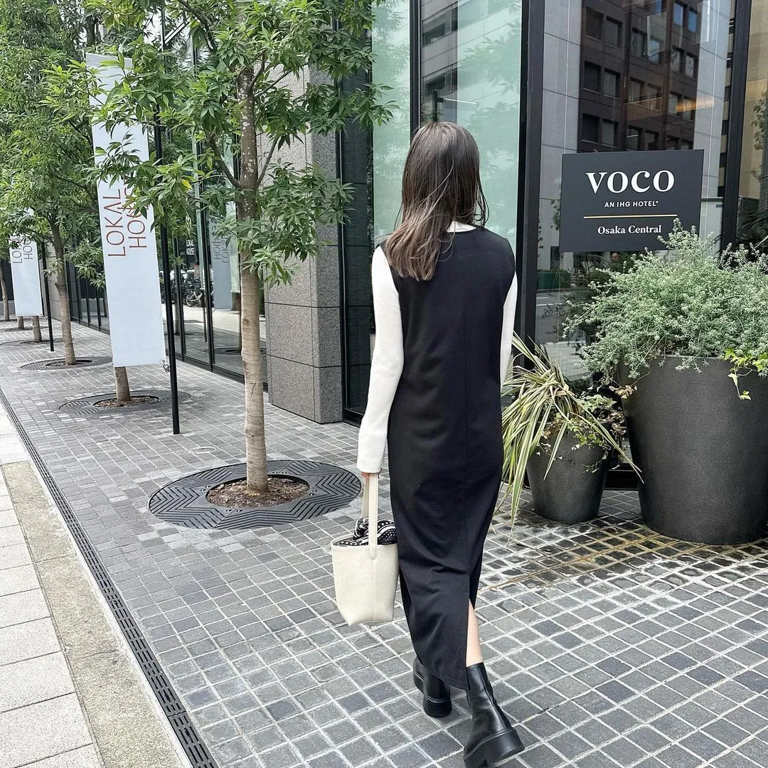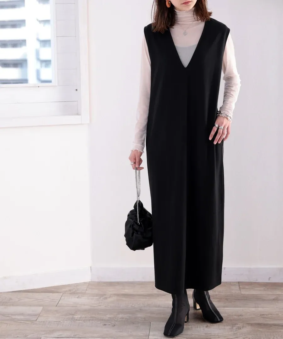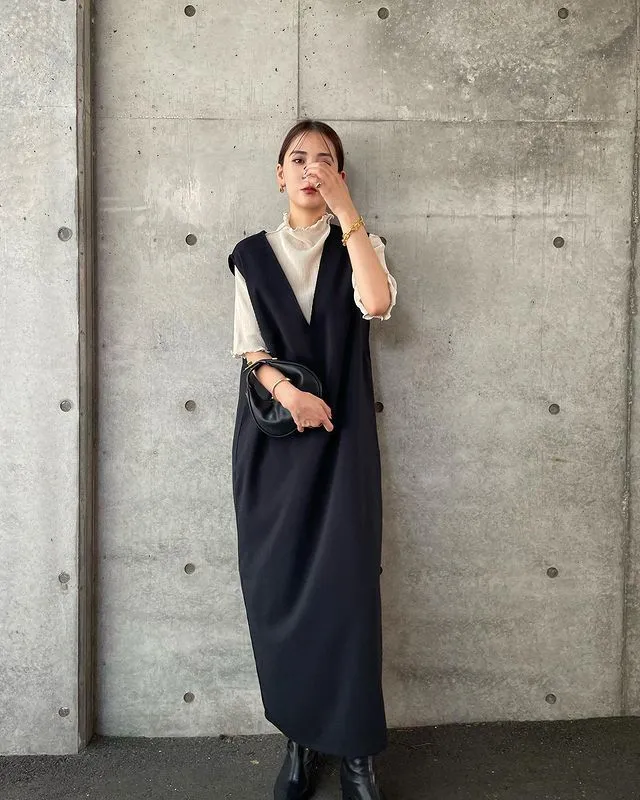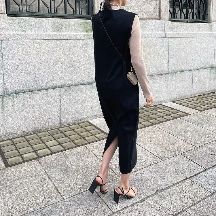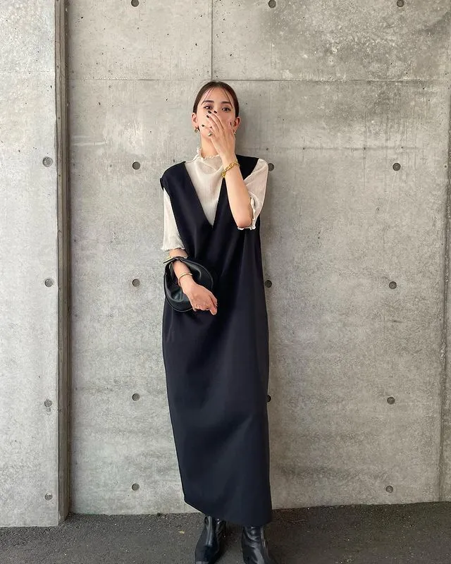 不太挑身形俐落的大V領剪裁還有後開衩設計