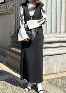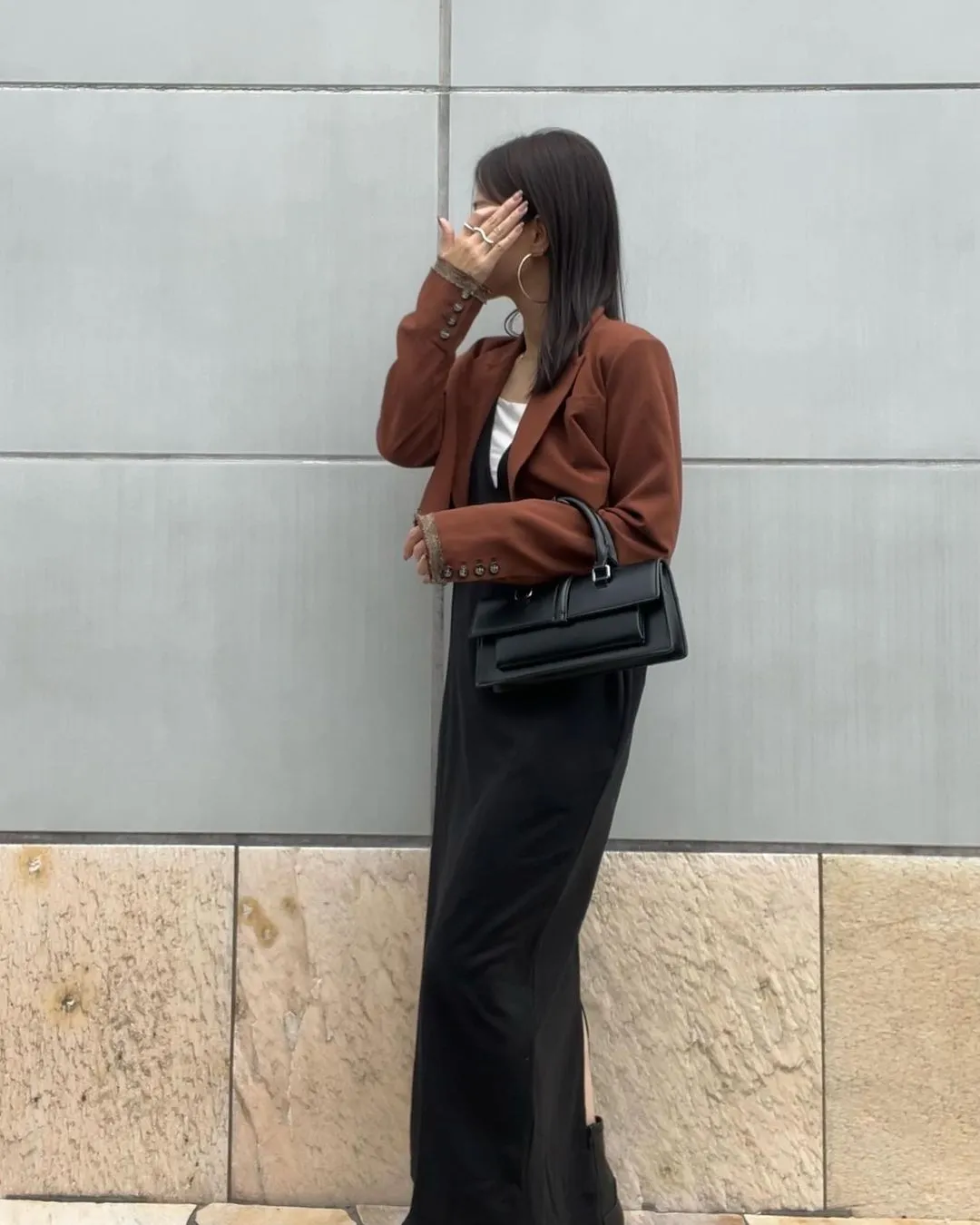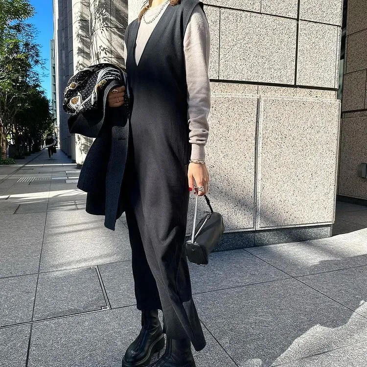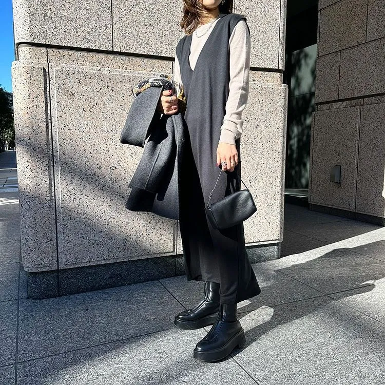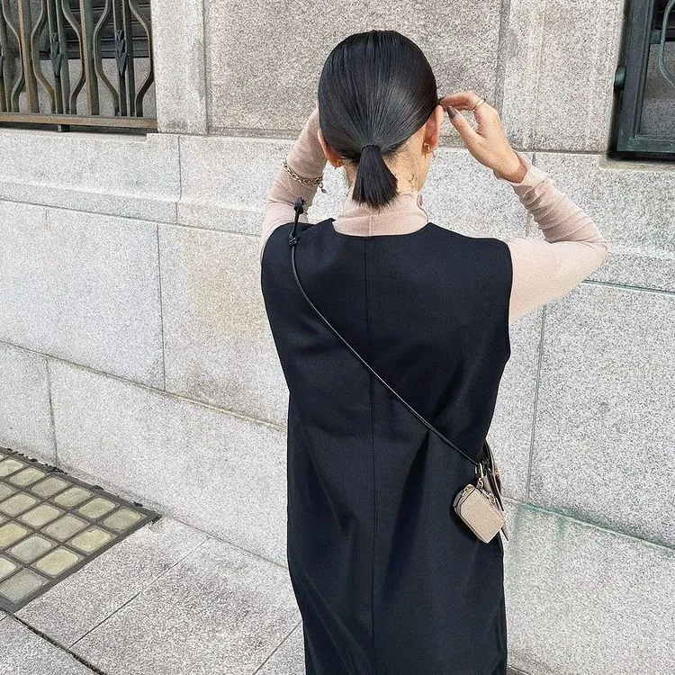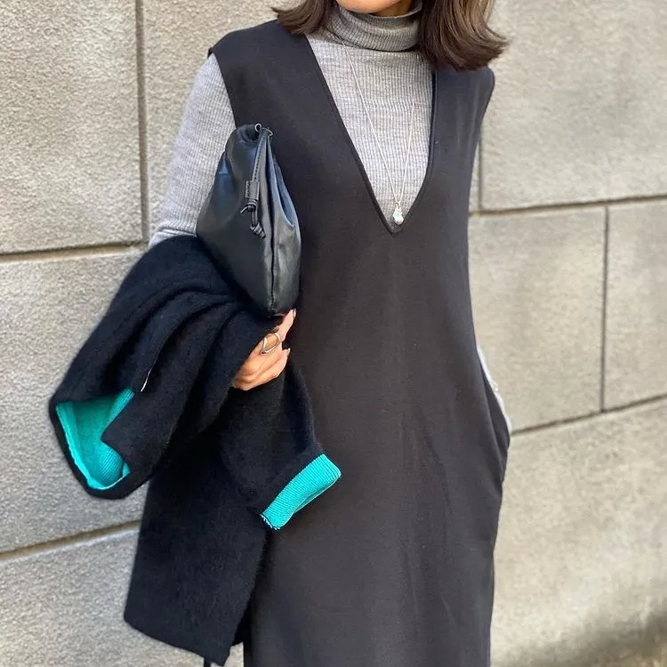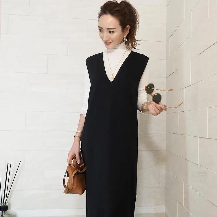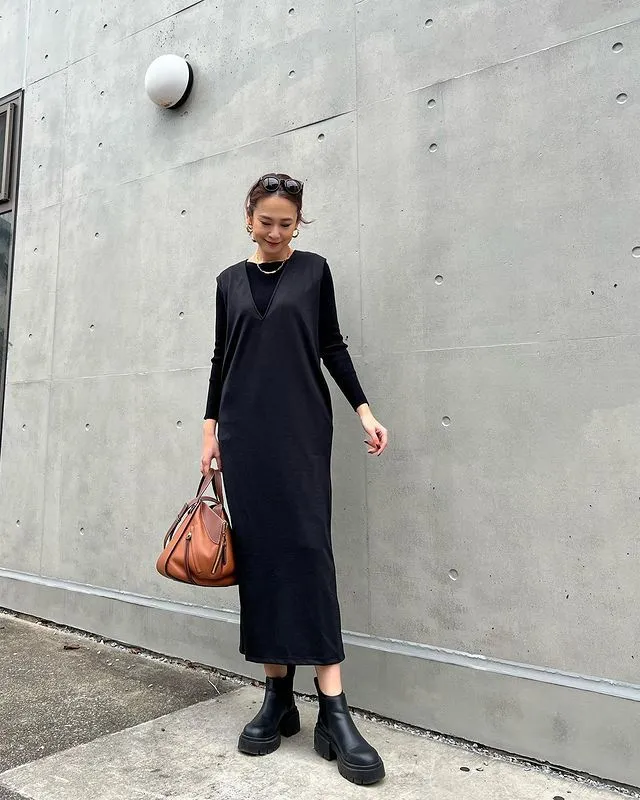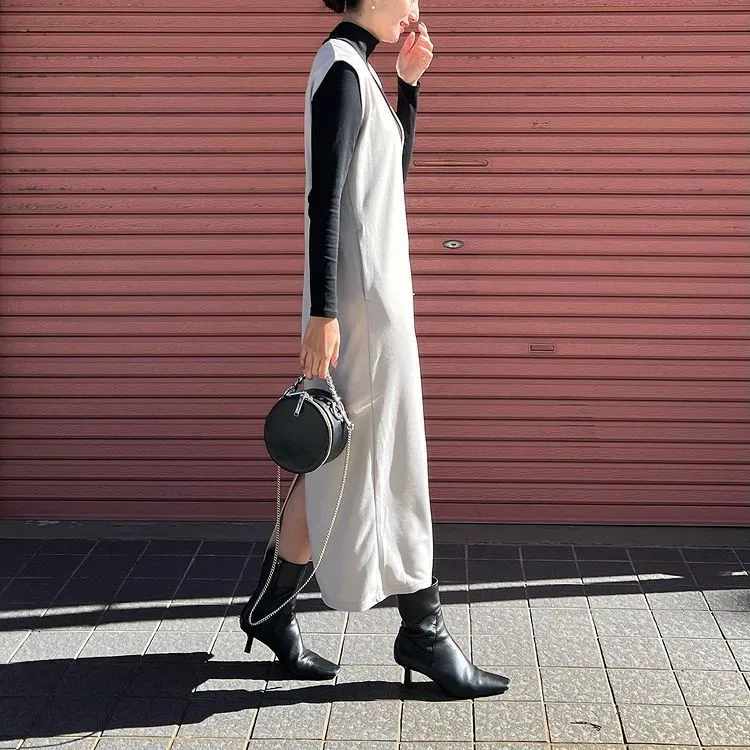 不太挑身形俐落的大V領剪裁還有後開衩設計