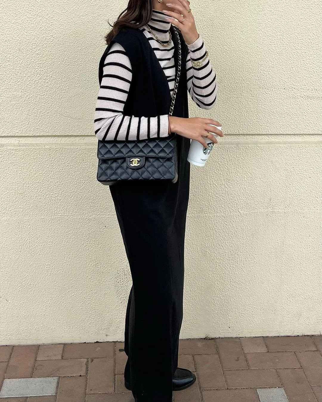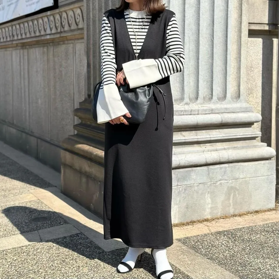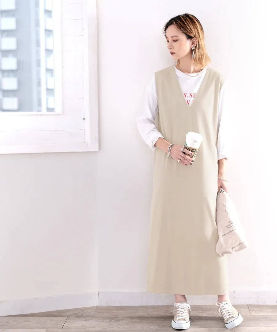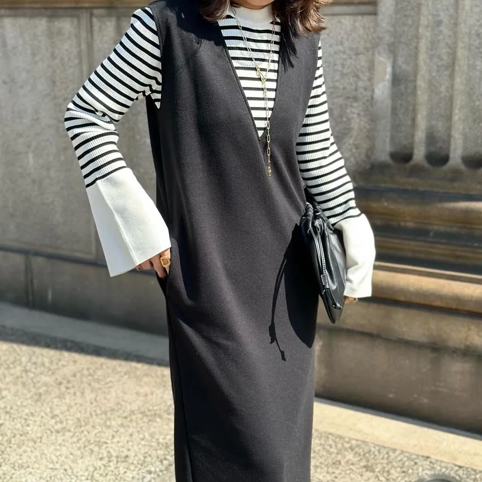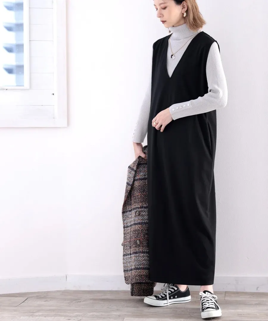 不太挑身形俐落的大V領剪裁還有後開衩設計