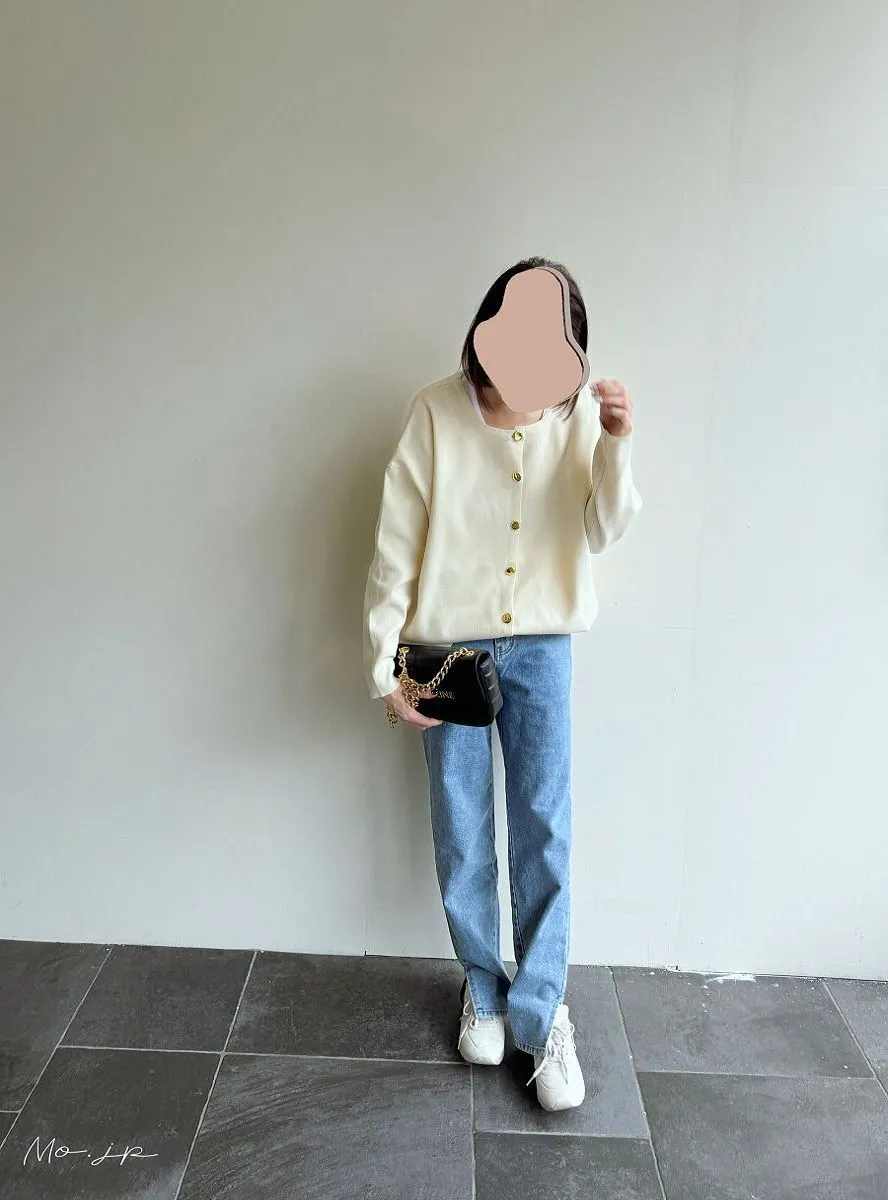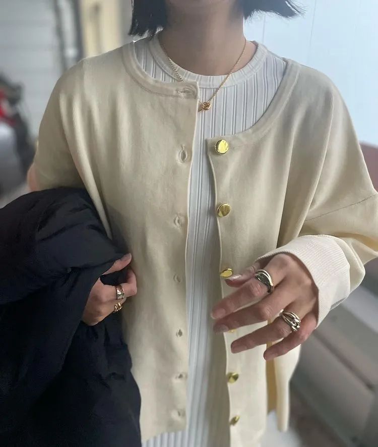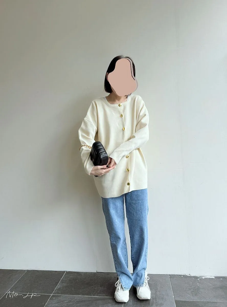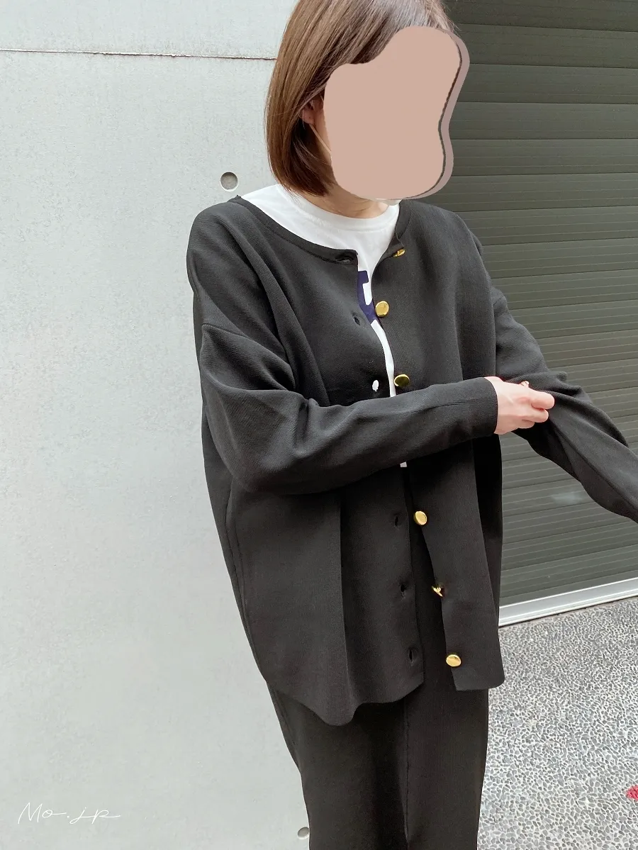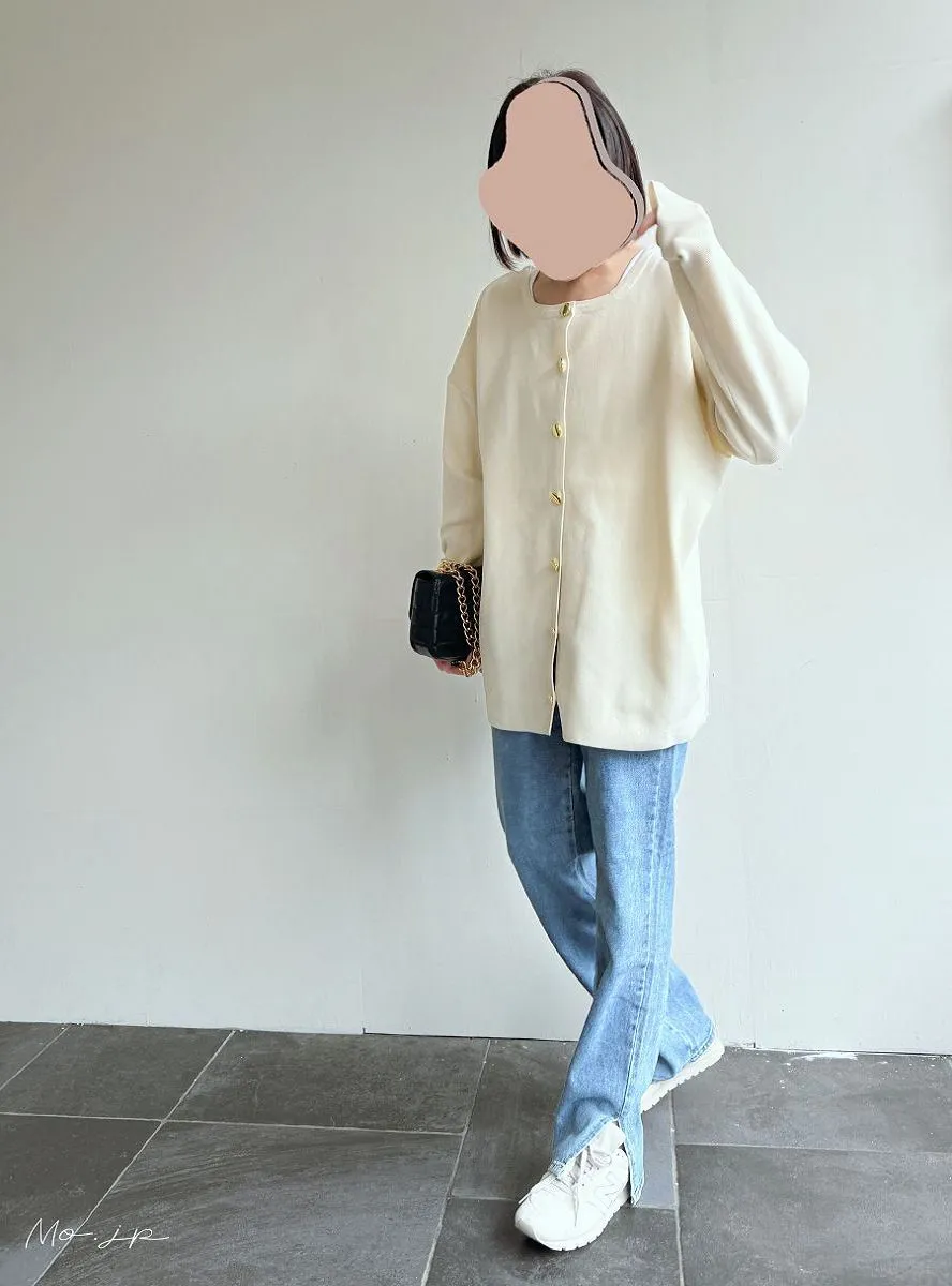 它的釦子真的很精緻~是霧面金色~搭起來質感滿分喔