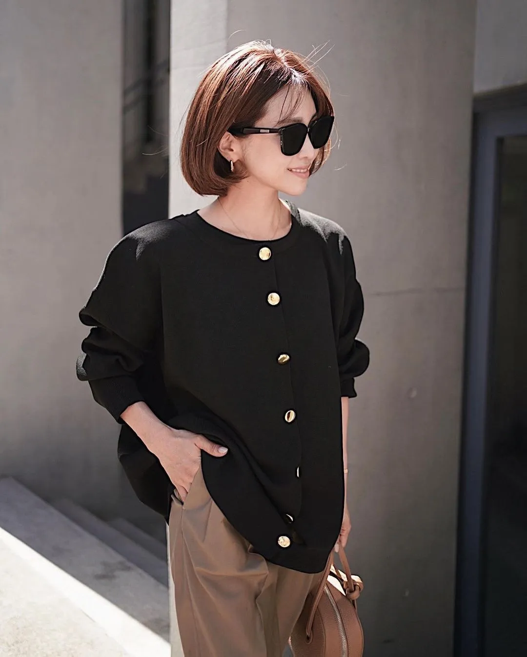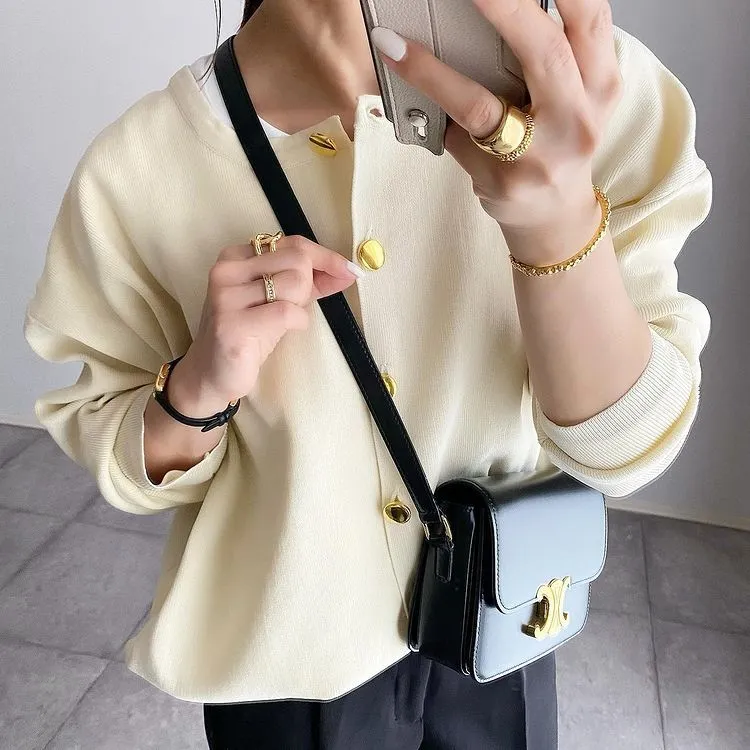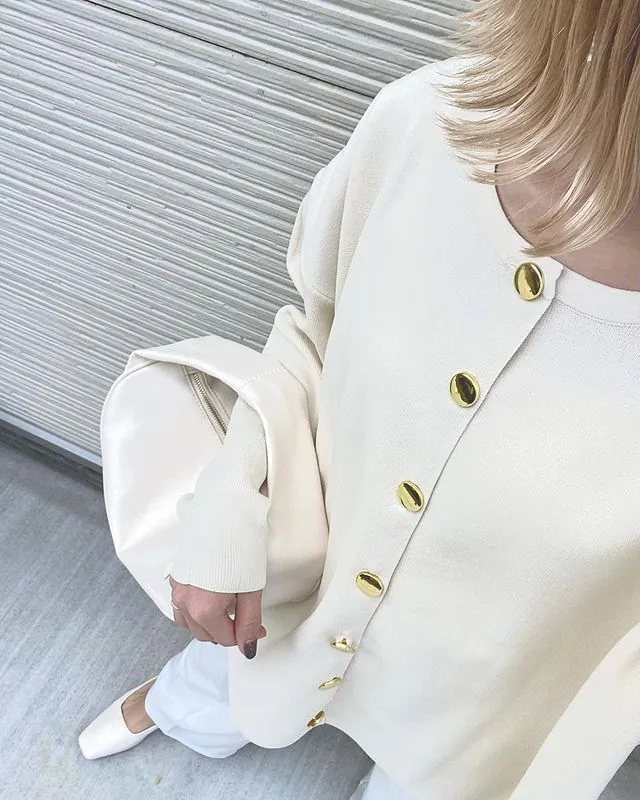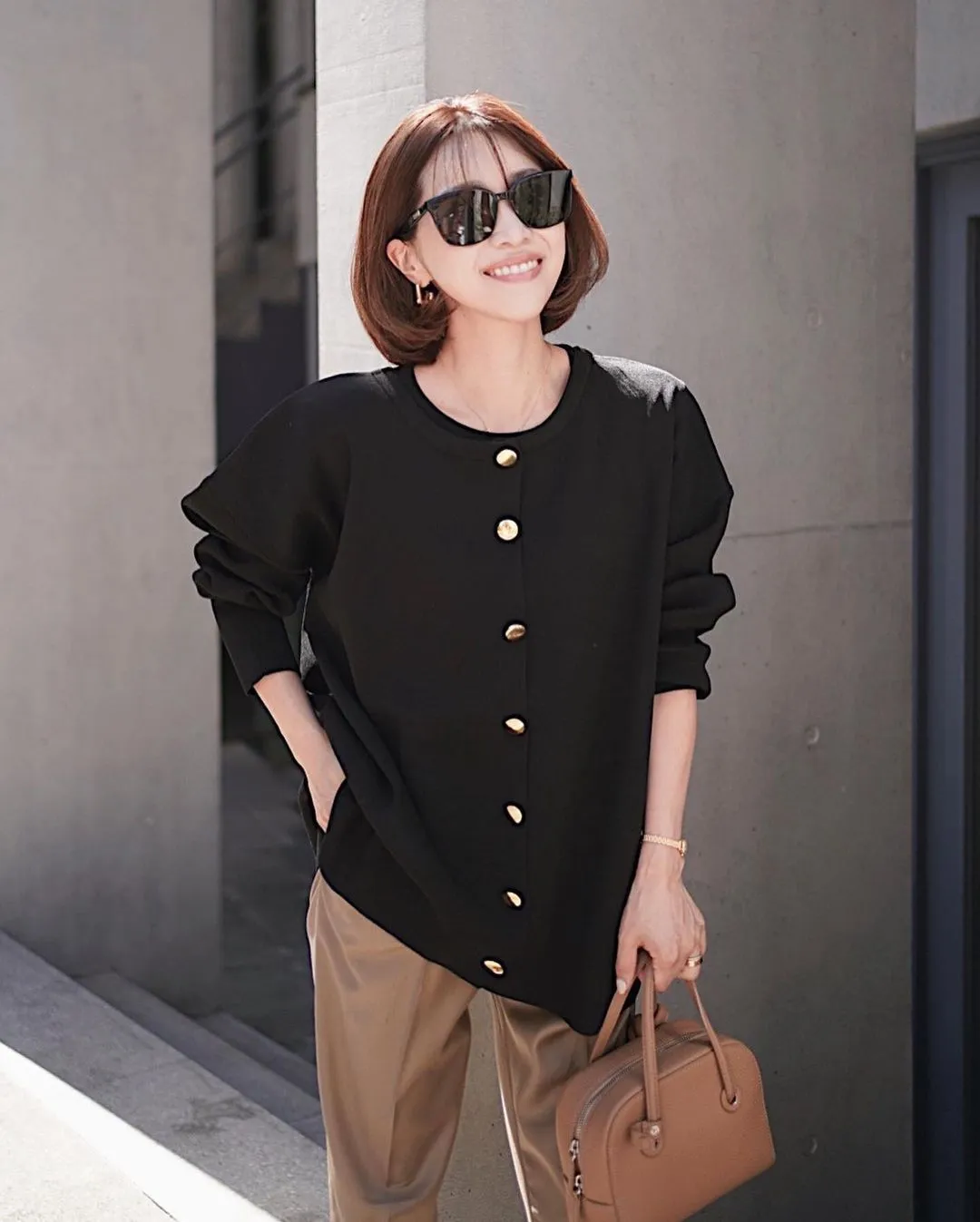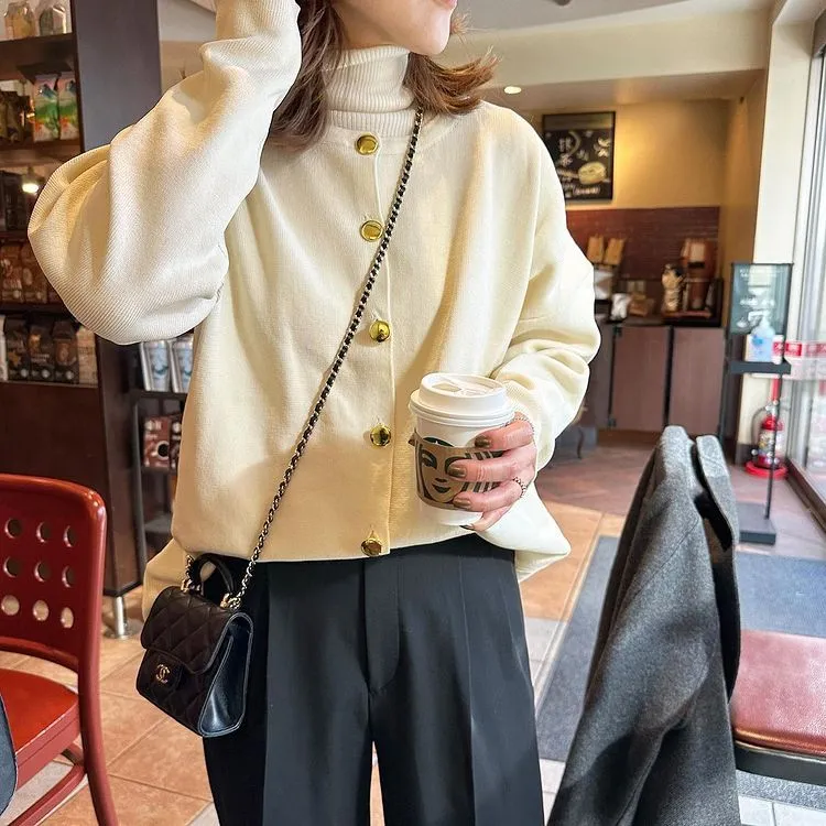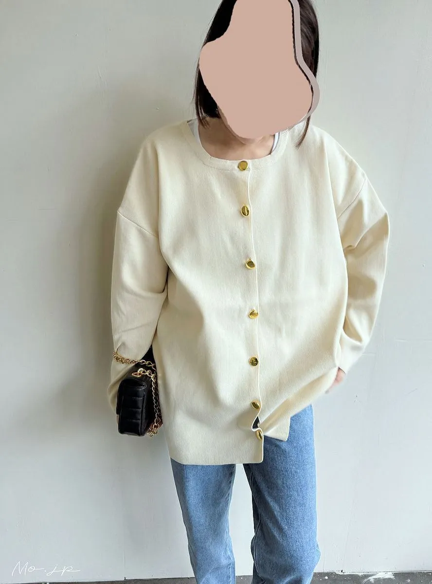 它的釦子真的很精緻~是霧面金色~搭起來質感滿分喔