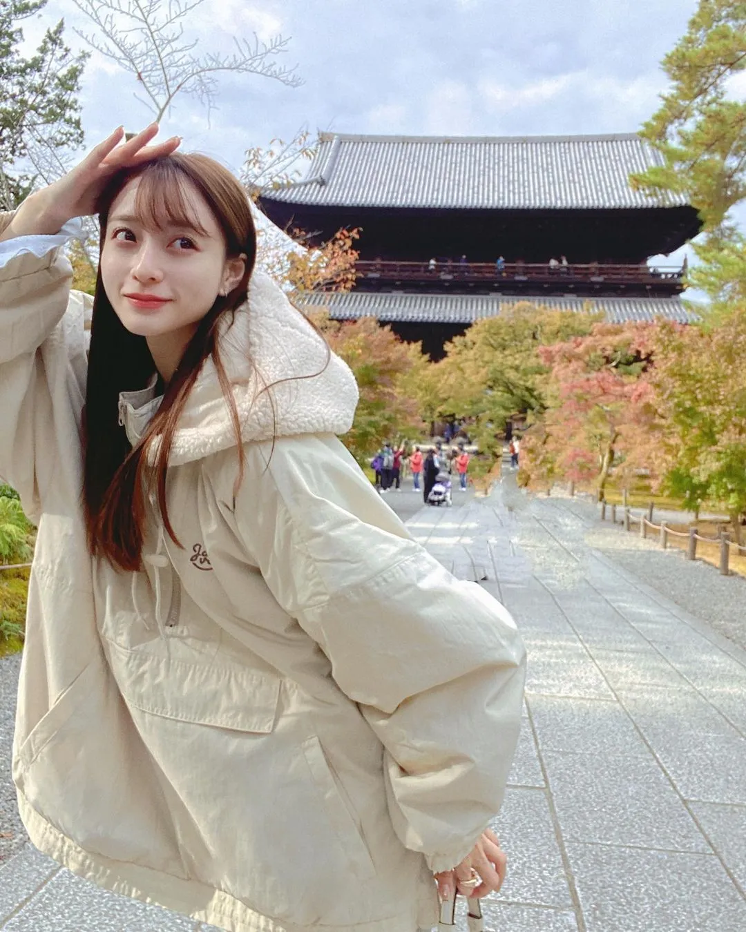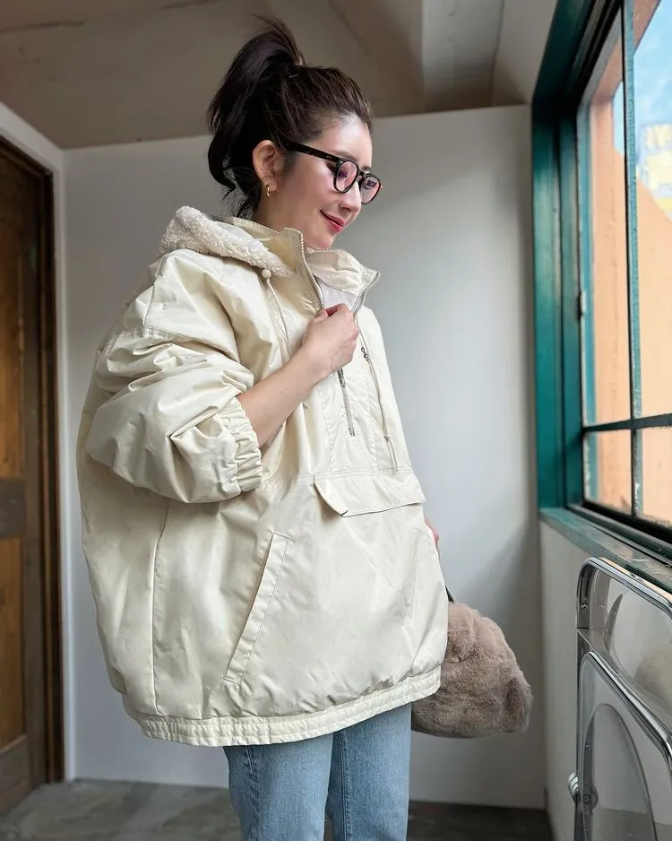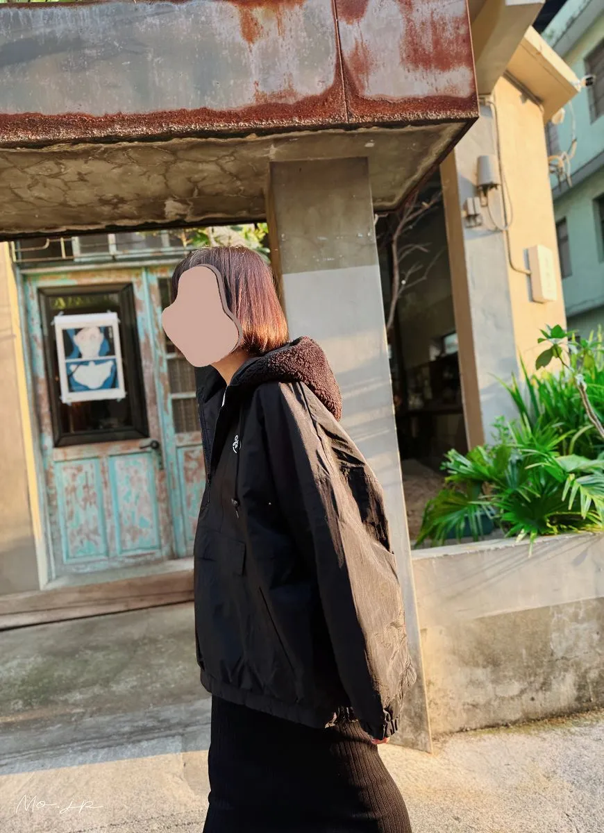 風大可以把領口都釦起來~超級好看