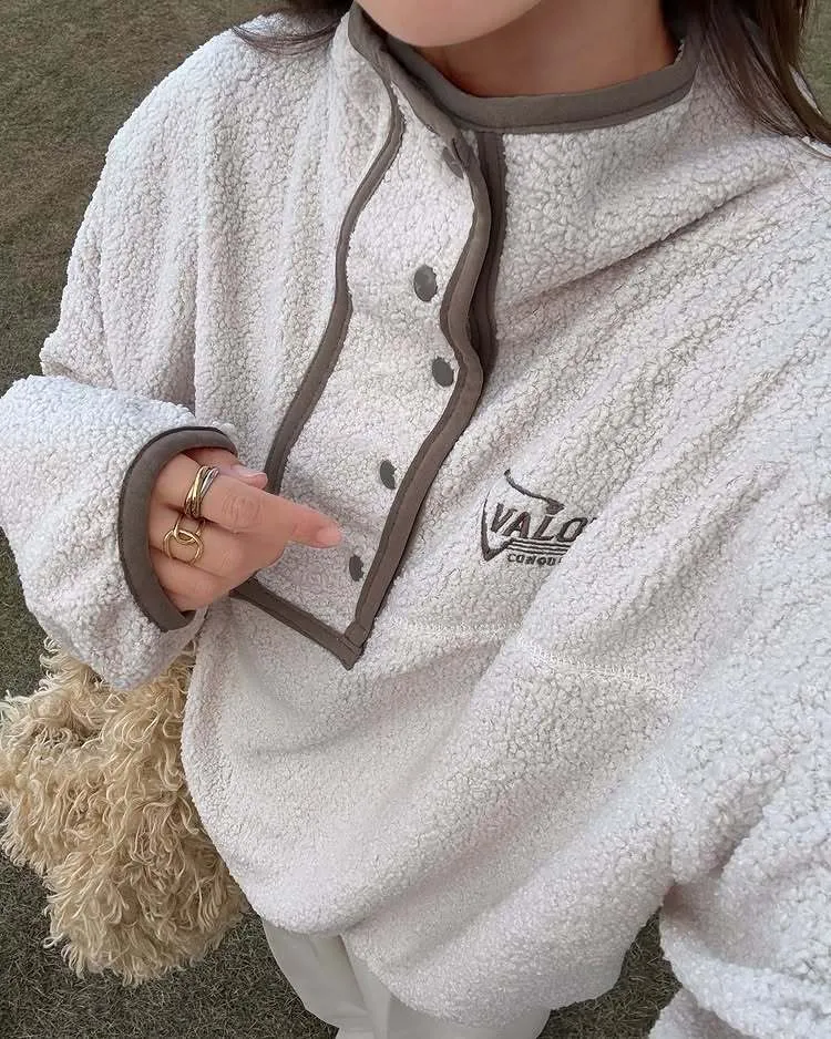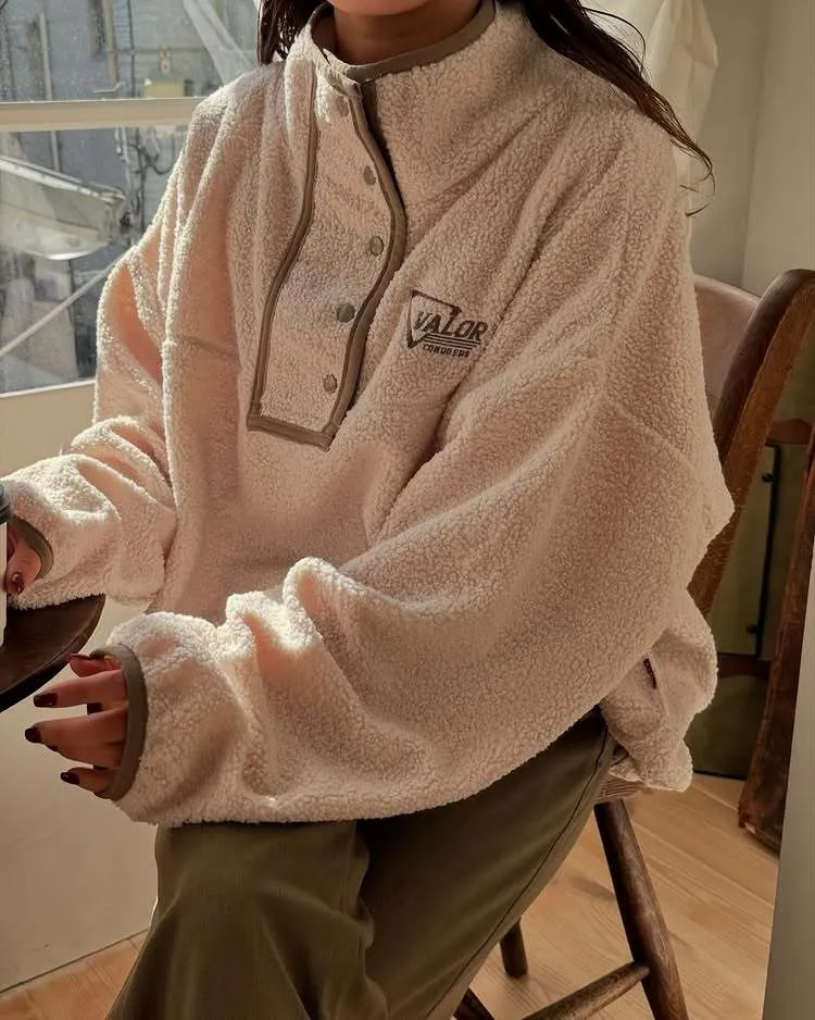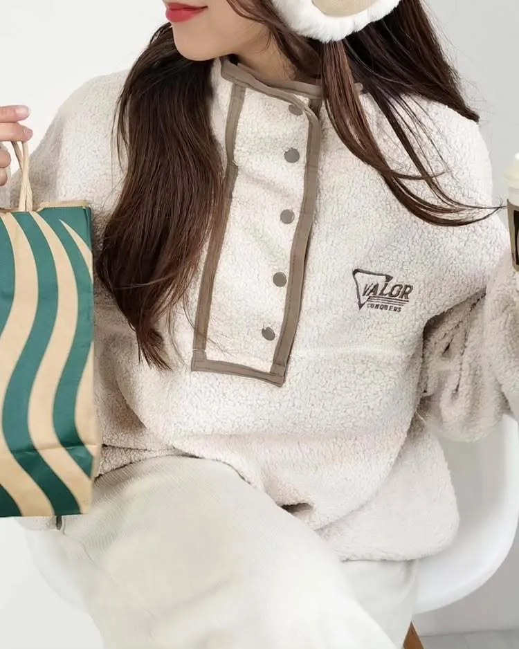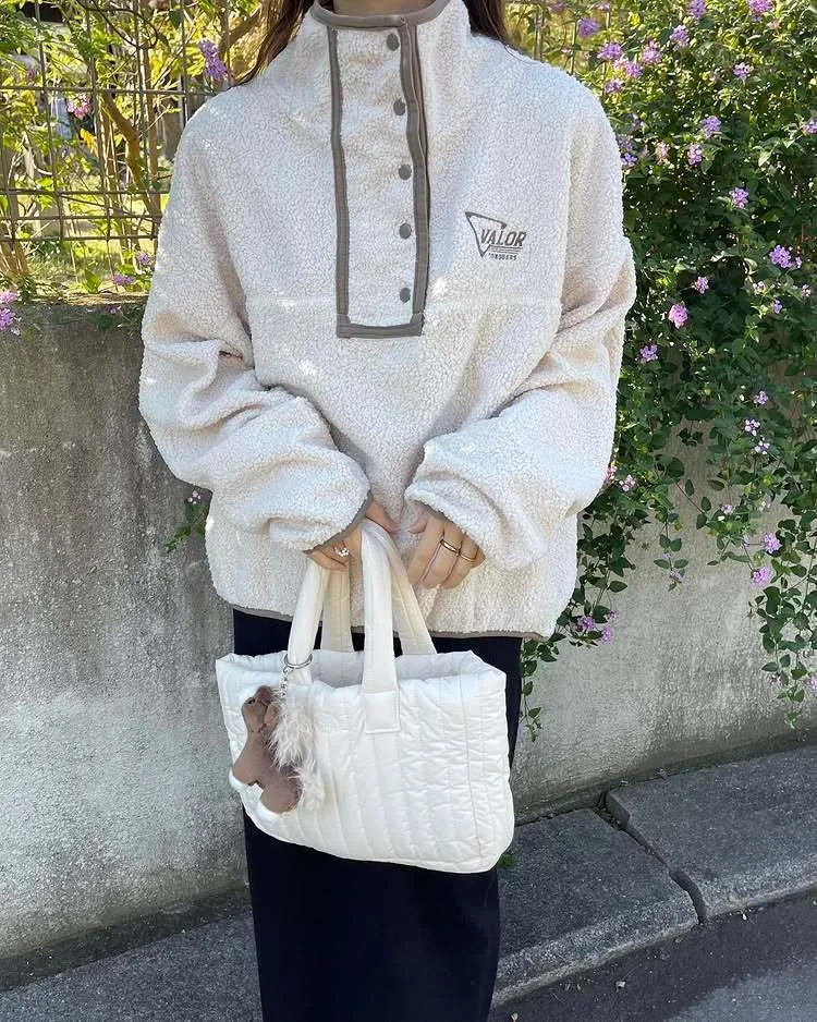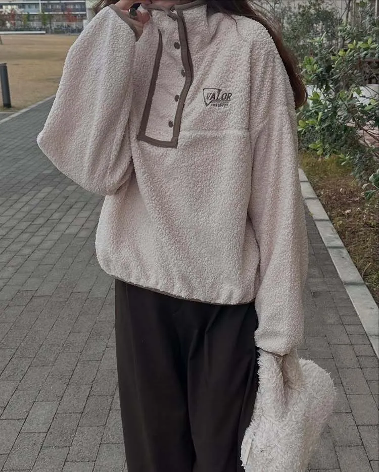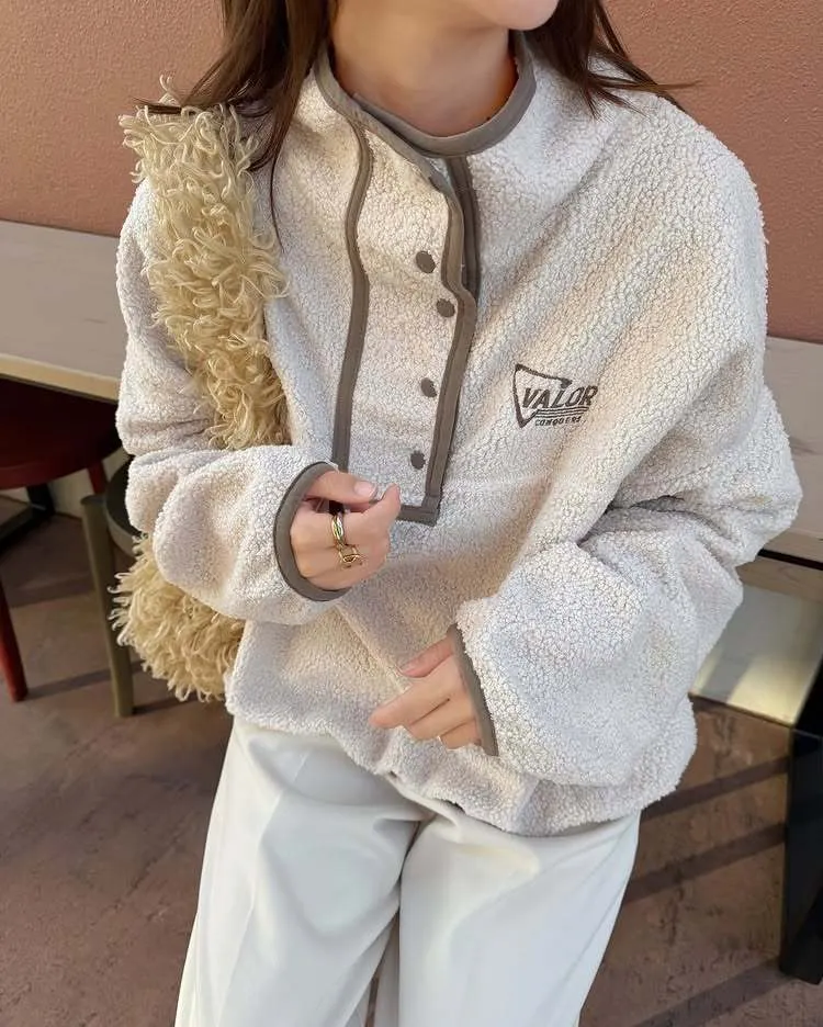 LOGO是可愛的英字.滾邊.整個設計簡單但有小復古~特色滿點延續上一季的運動風~面料是挺版的泰迪熊毛毛一樣是一款滾邊特色的單品單穿或搭白TEE都可以喔小幫自己是喜歡搭配穿~營造它的層次感微微運動風感覺~隨意搭就非常好看喔今年的面料更可愛~顏色都偏復古~很可愛喔看日妞搭配修身裙/短裙/短褲/丹寧也OK<搭紗裙或搭運動褲也很好看>