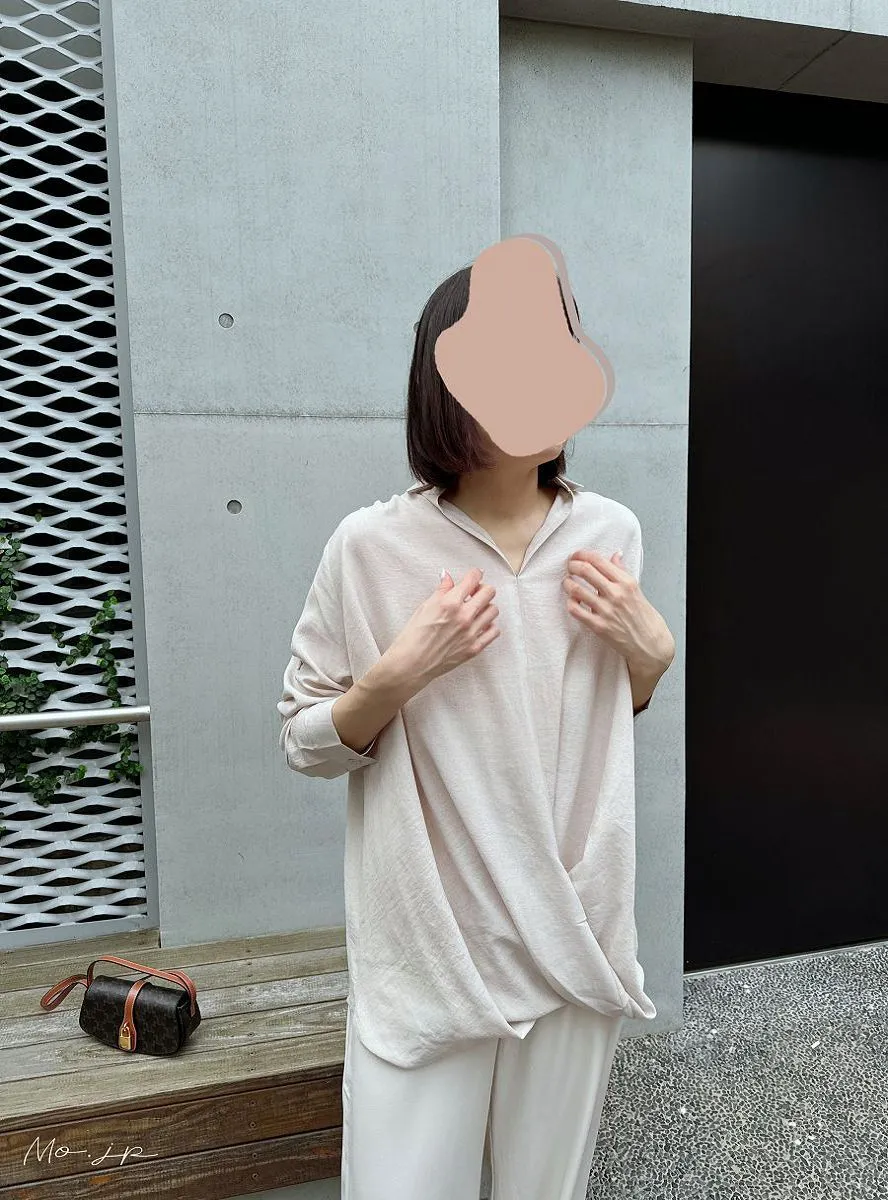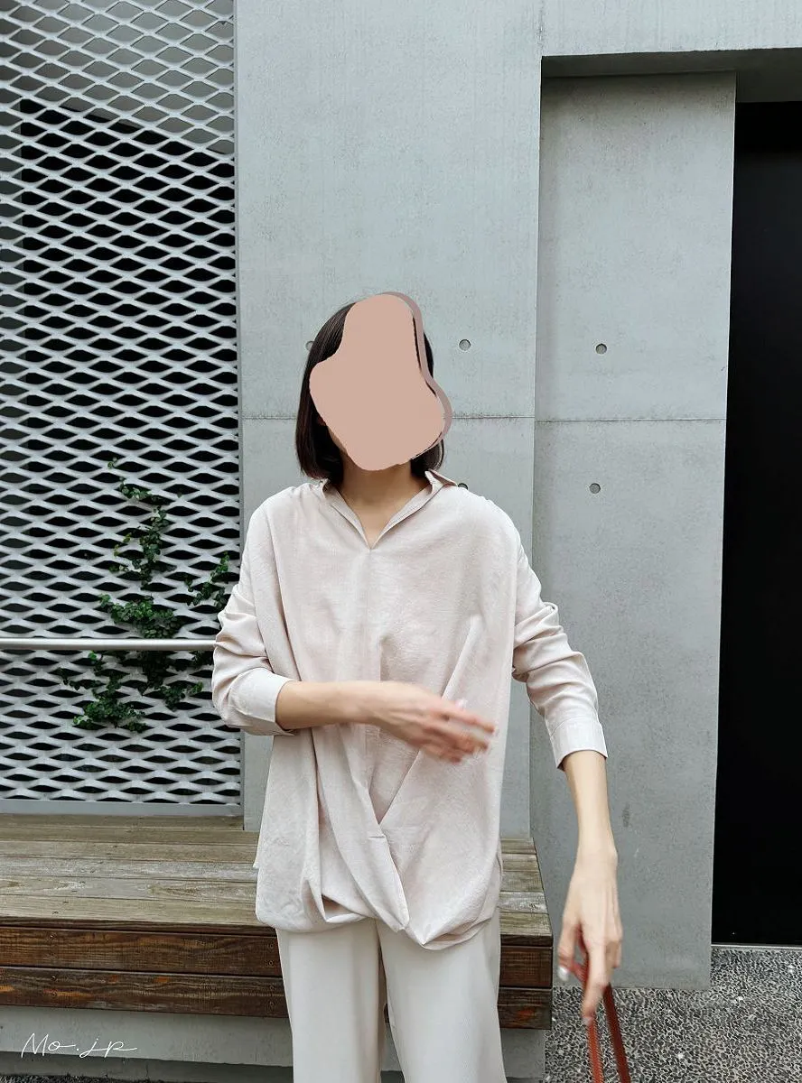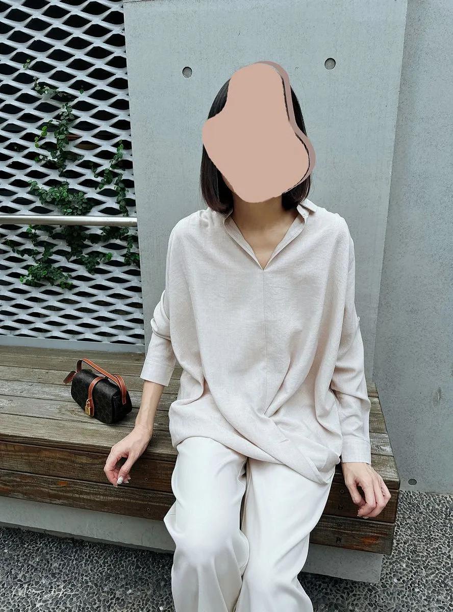 V領美鎖骨領口設計 可以搭配小飾品特別好看