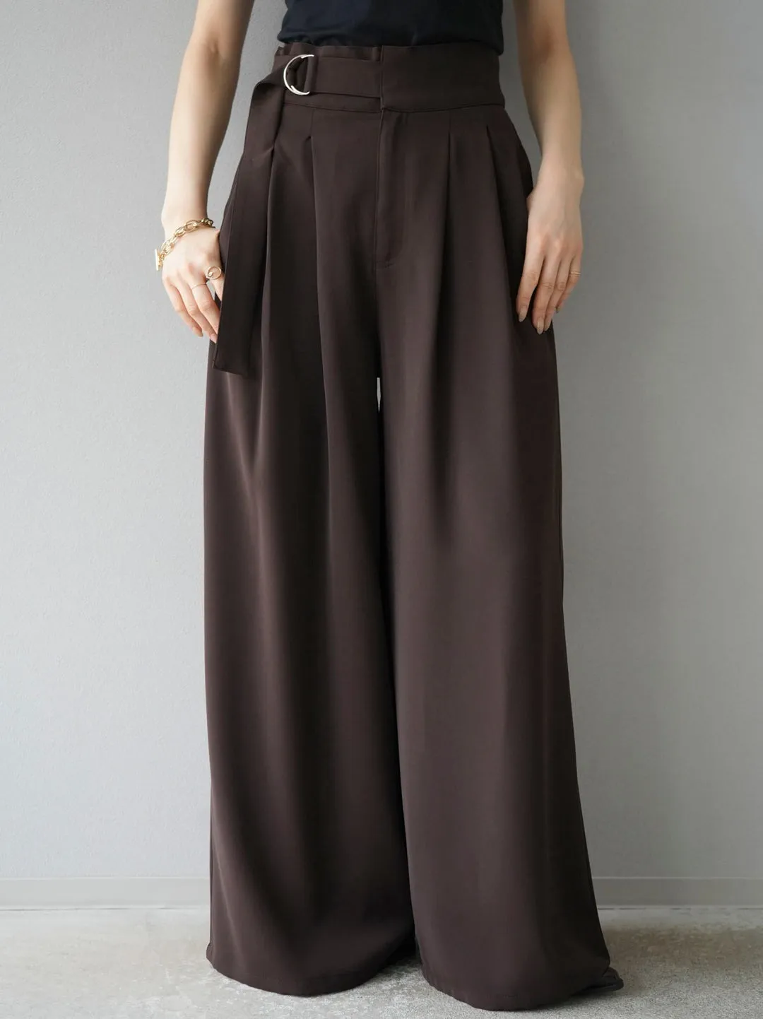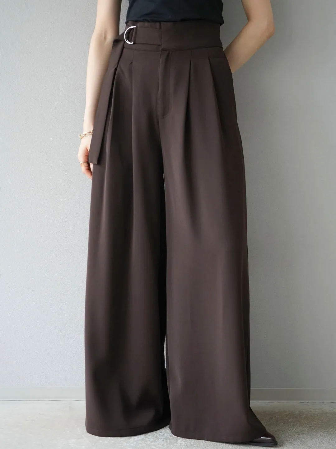 高腰寬版腰封設計西裝寬褲