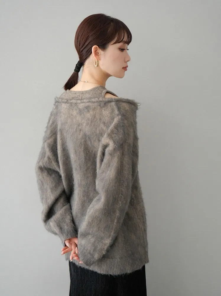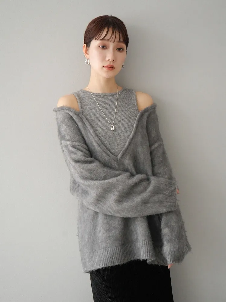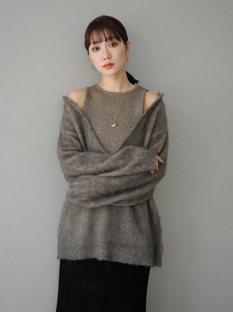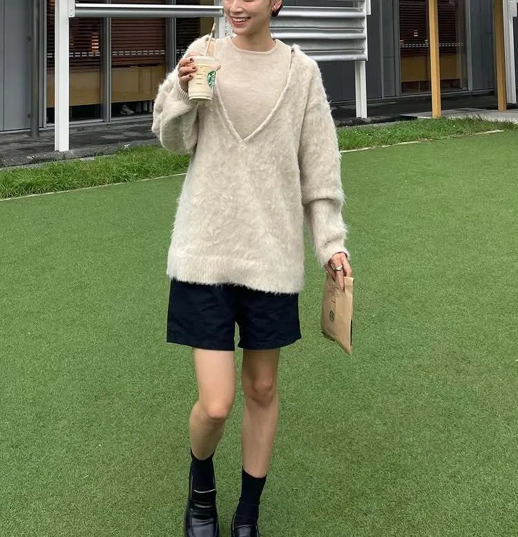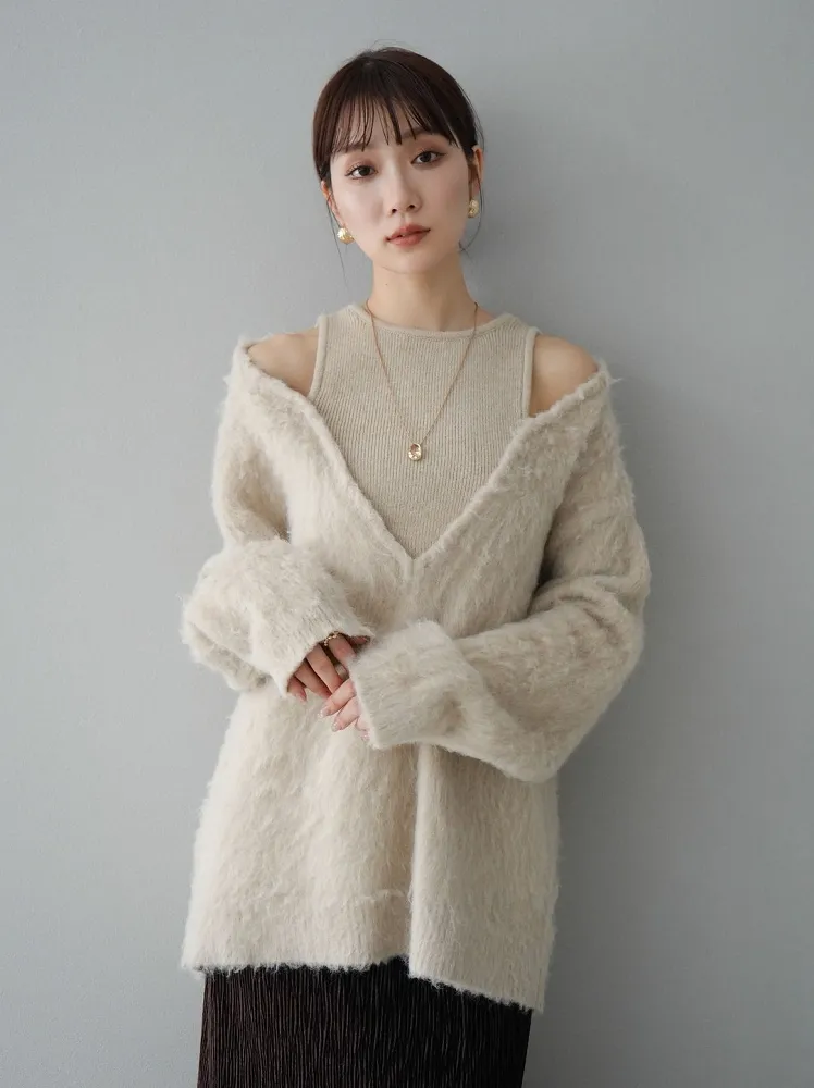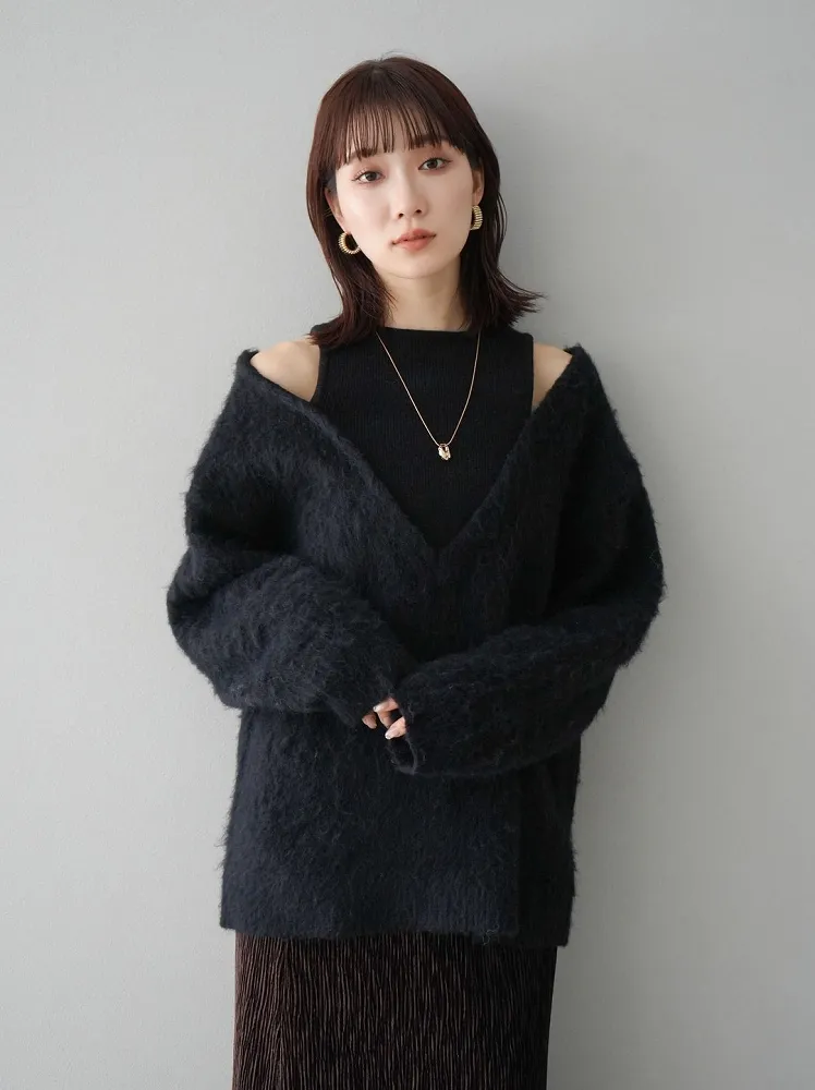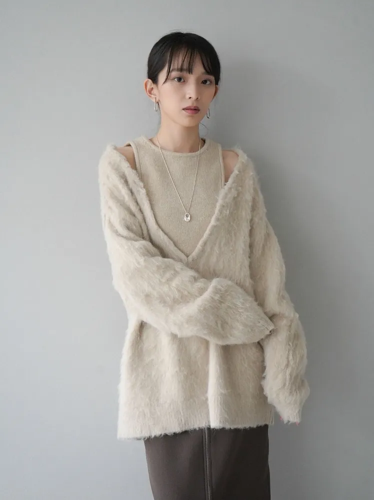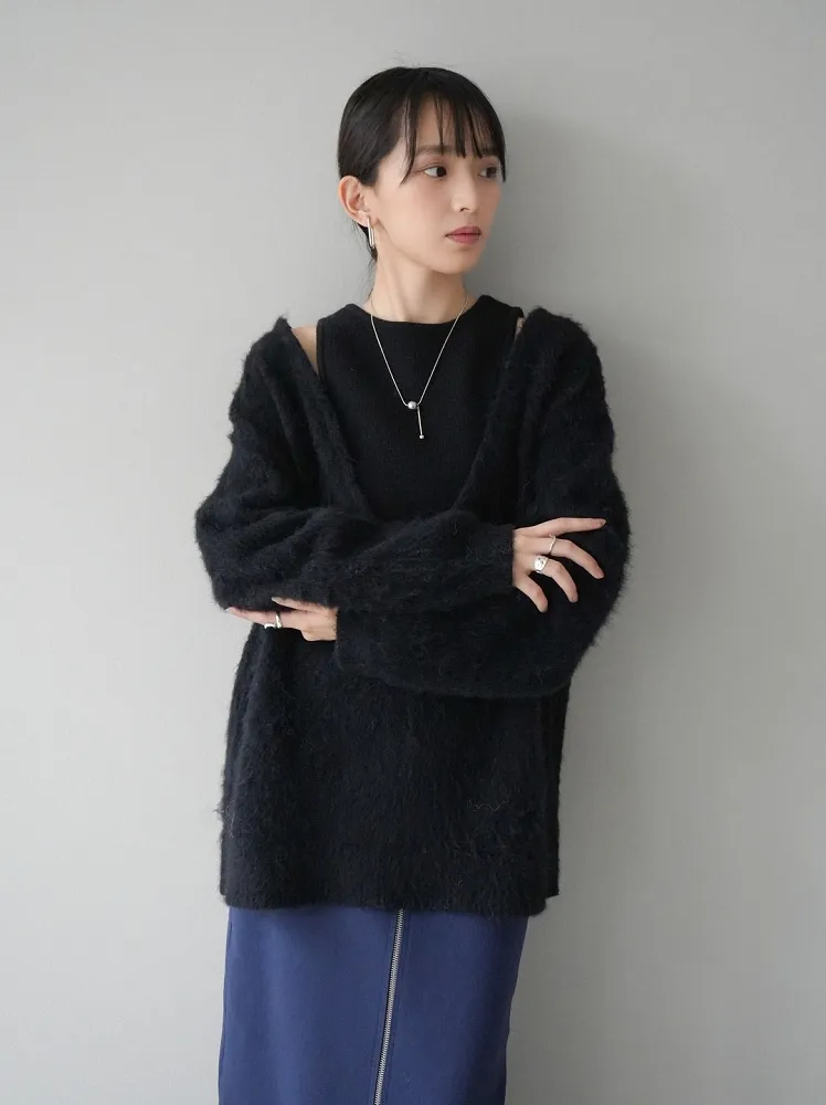 背心處是彈性螺紋針織~外拼接毛海毛衣